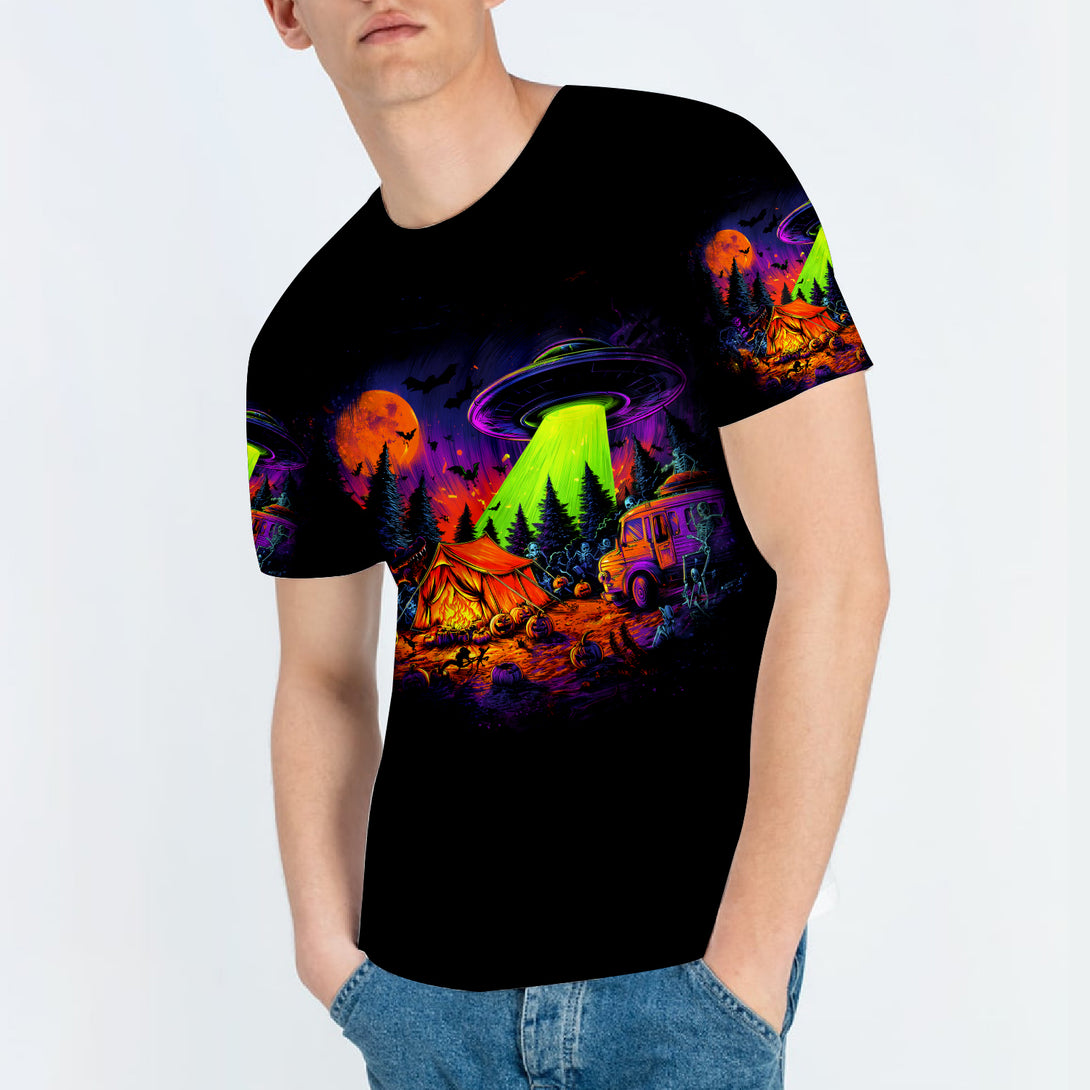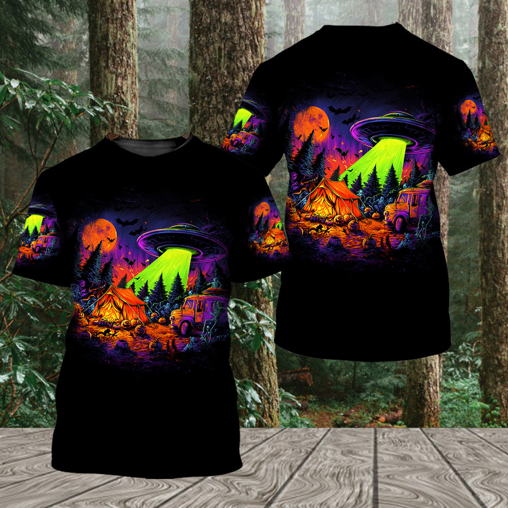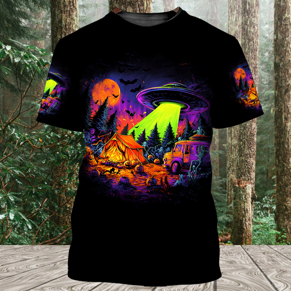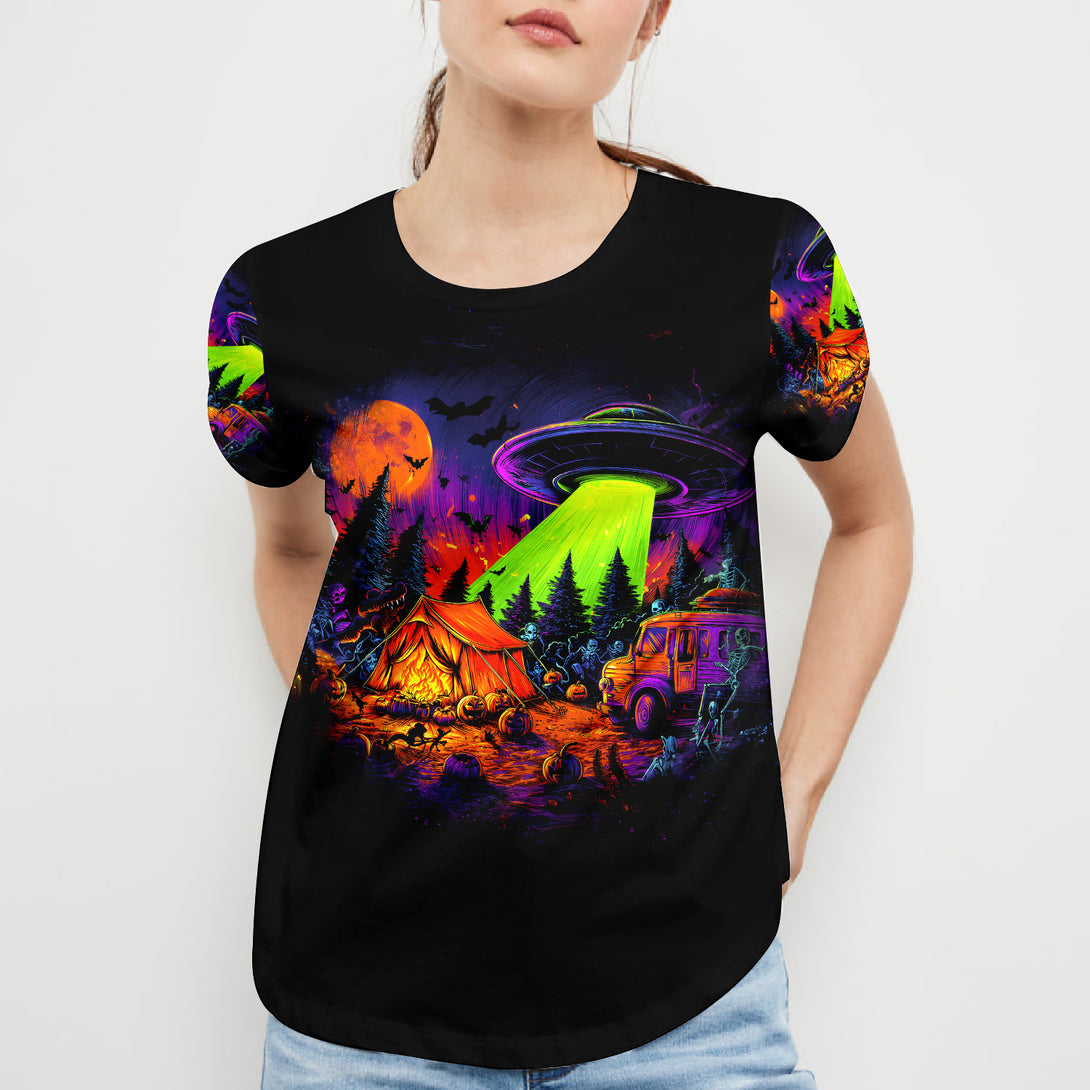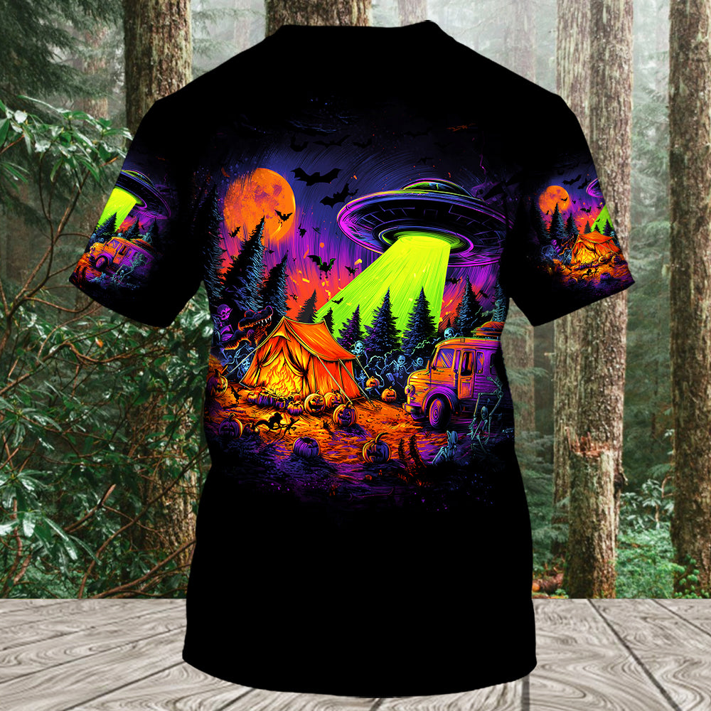 Alien Camp-O-Ween Invasion – UFO Halloween Camping All Over Print Shirt