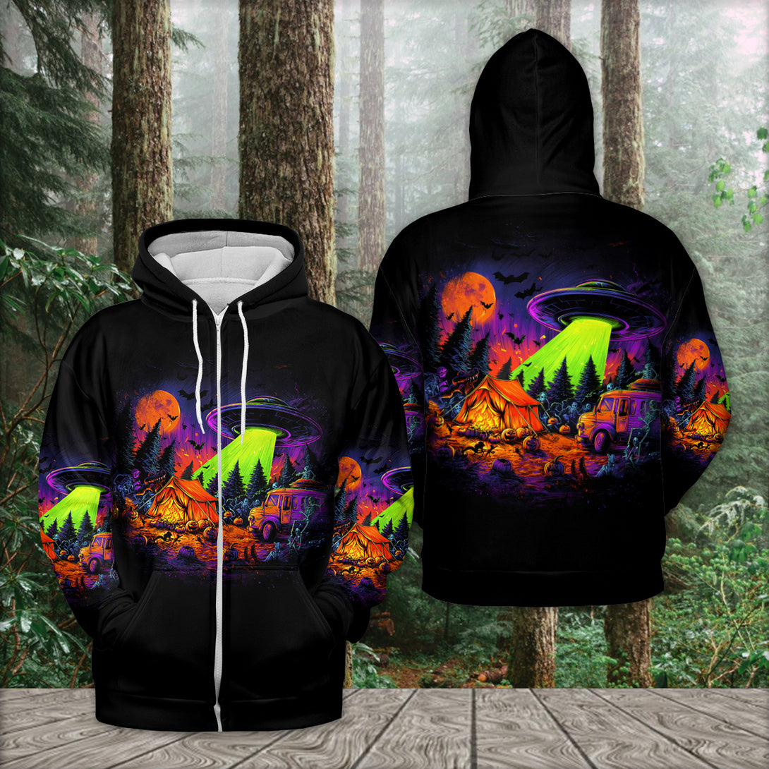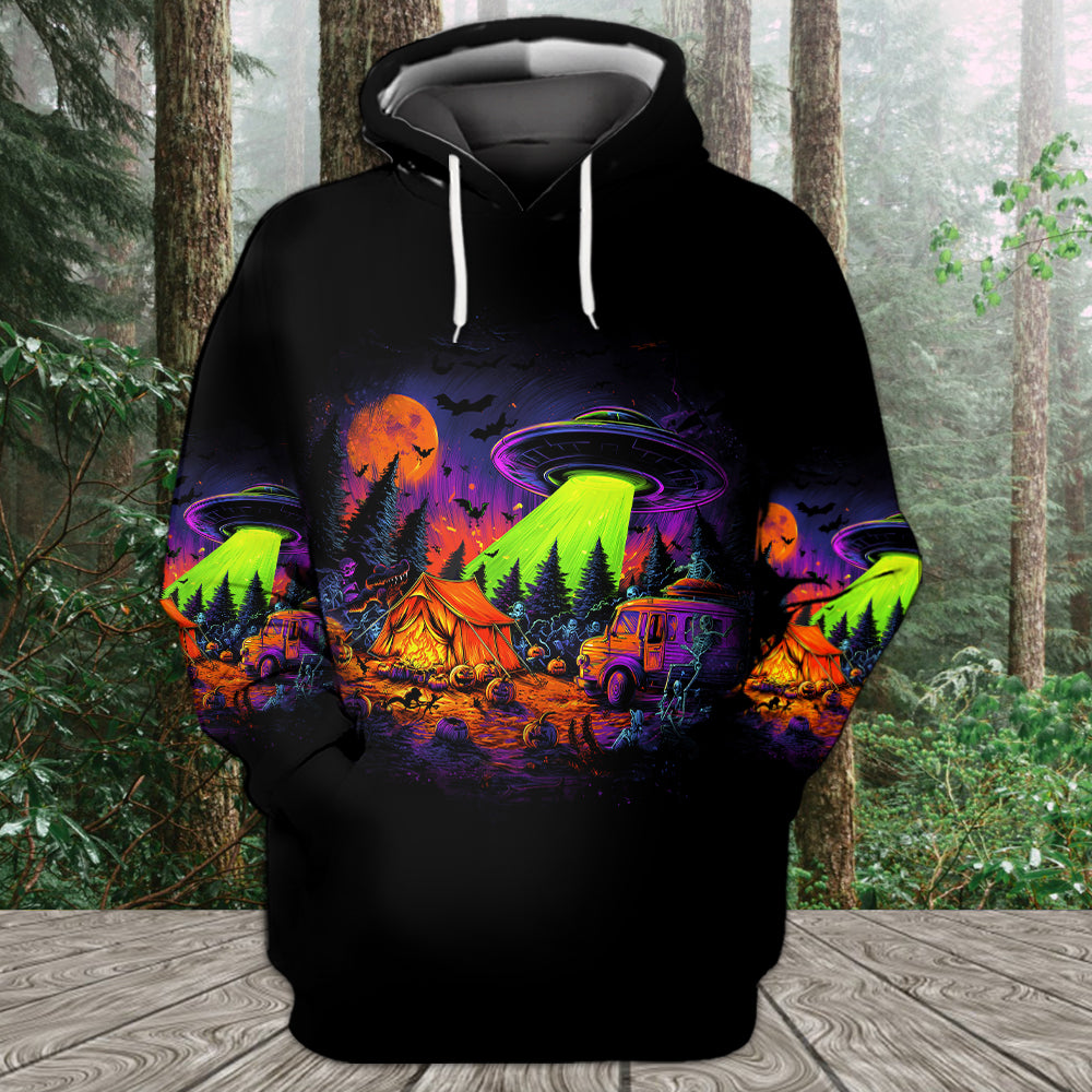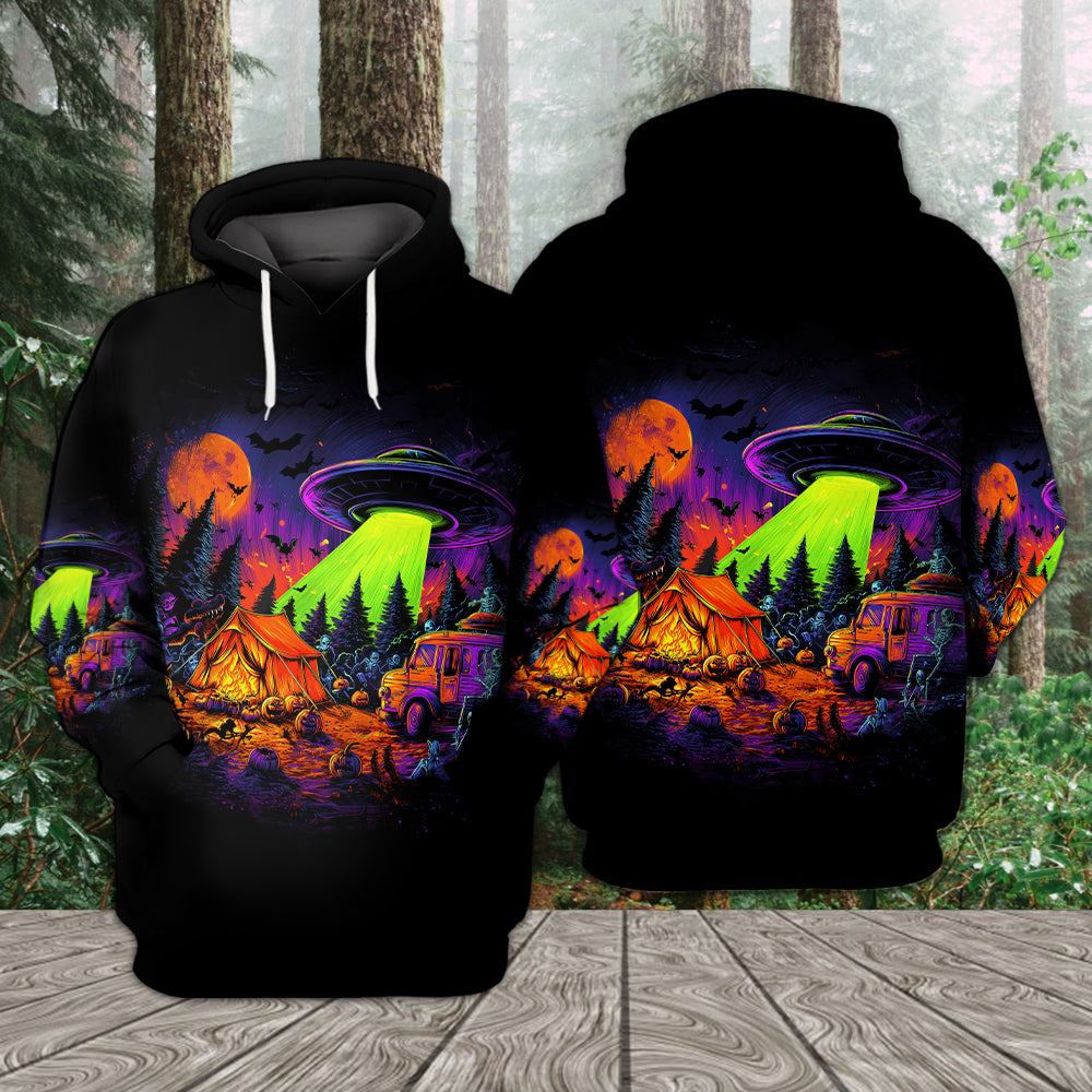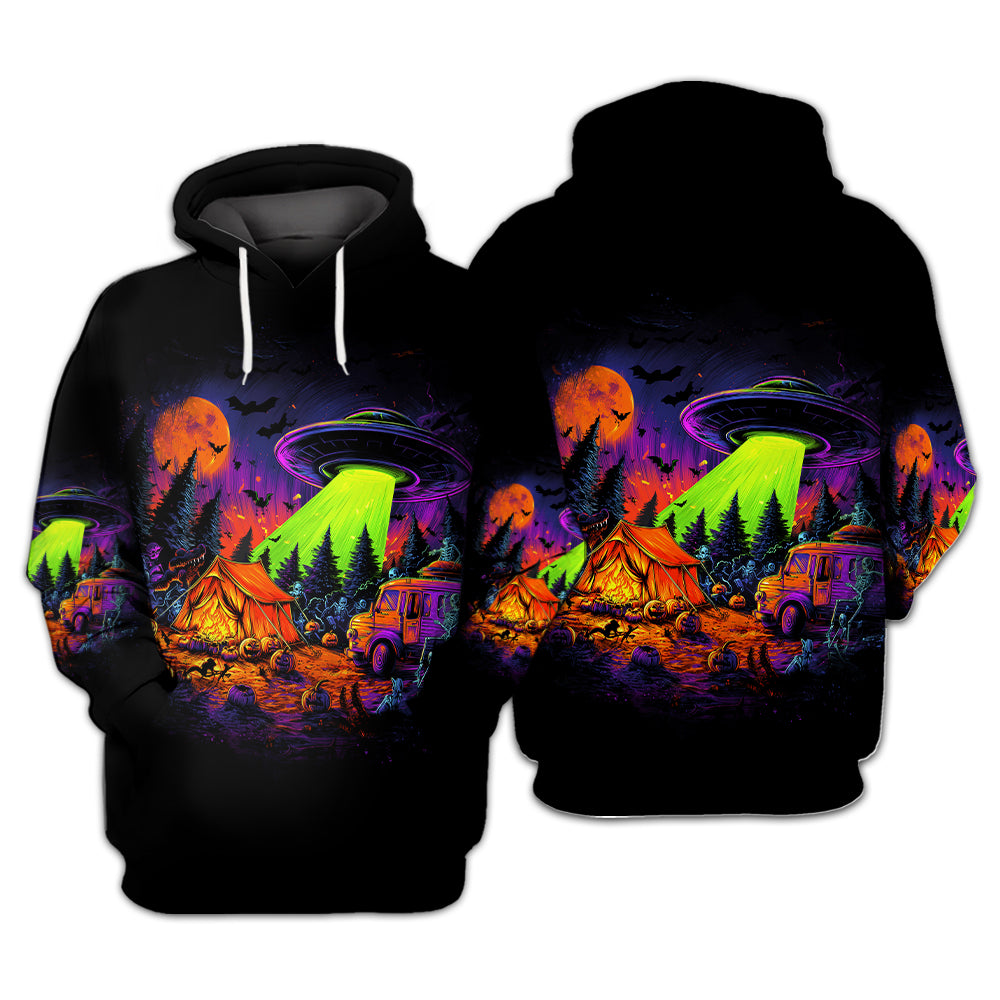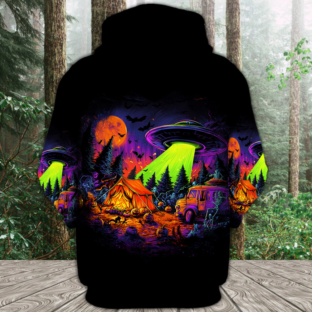 Alien Camp-O-Ween Invasion – UFO Halloween Camping All Over Print Shirt
