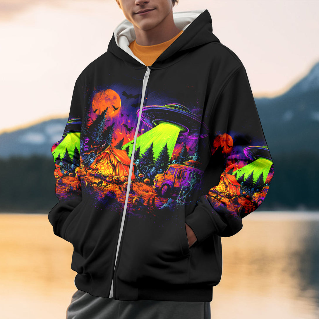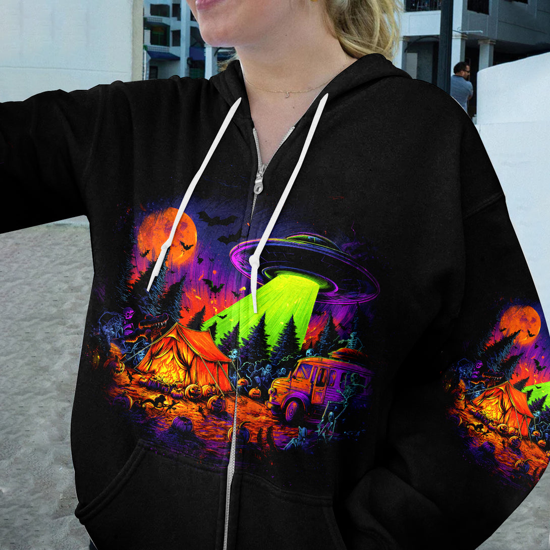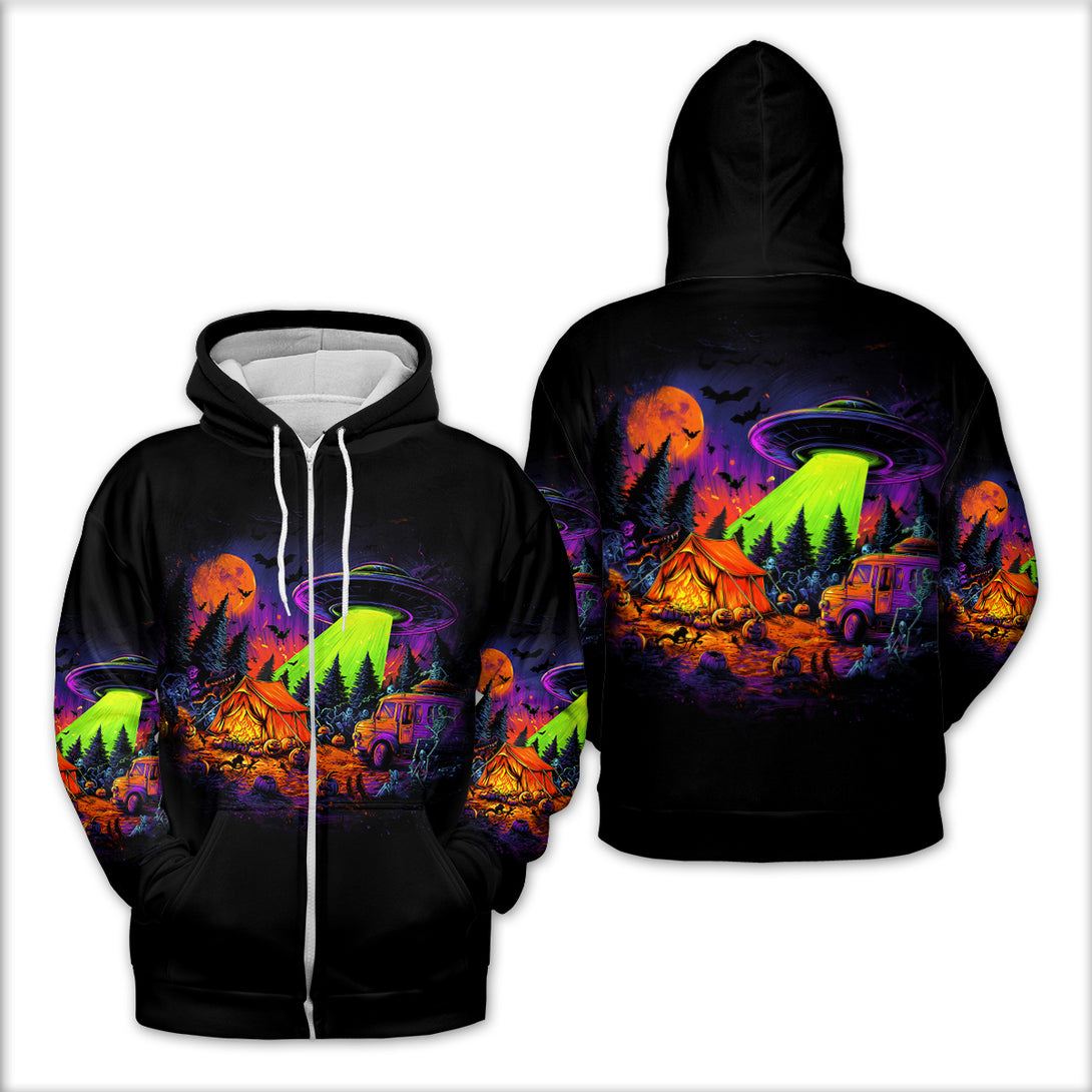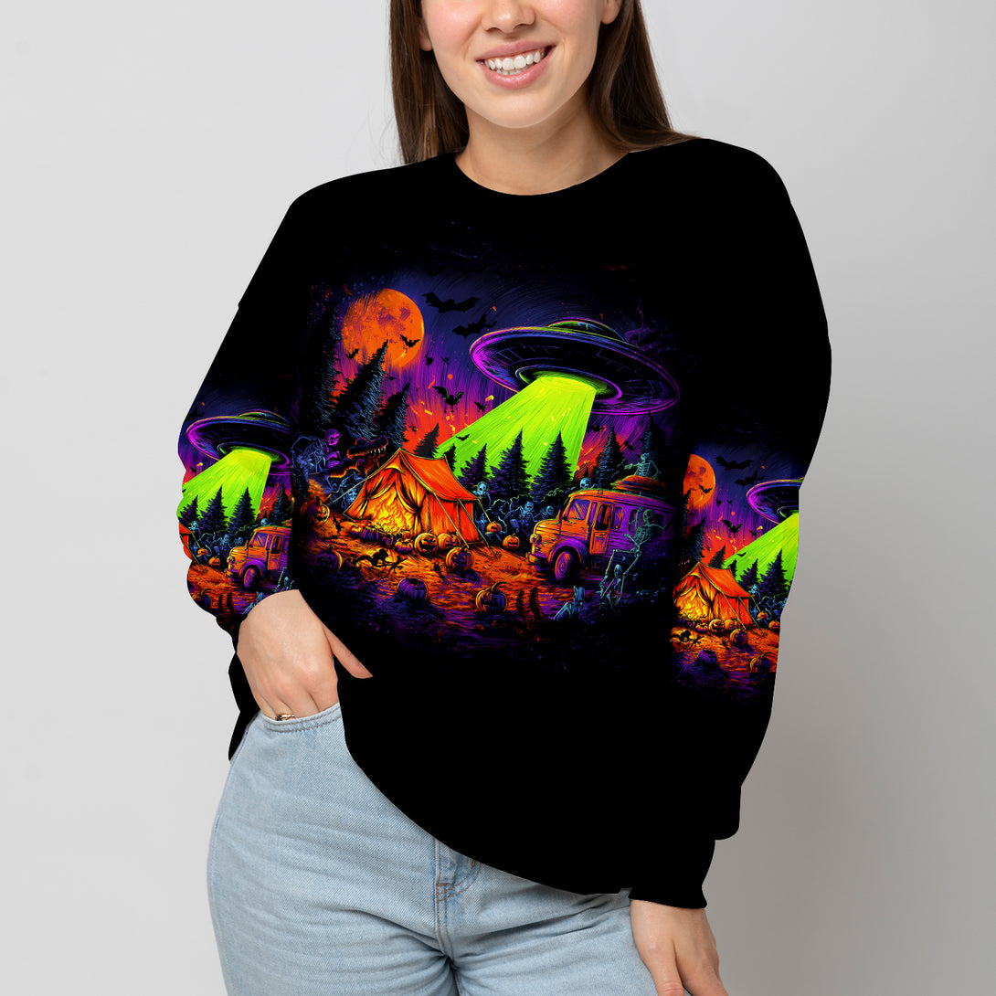 Alien Camp-O-Ween Invasion – UFO Halloween Camping All Over Print Shirt