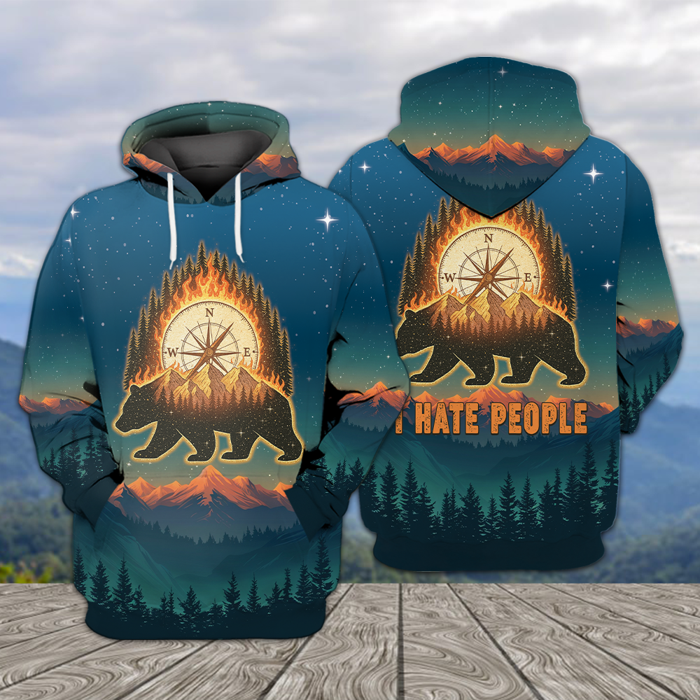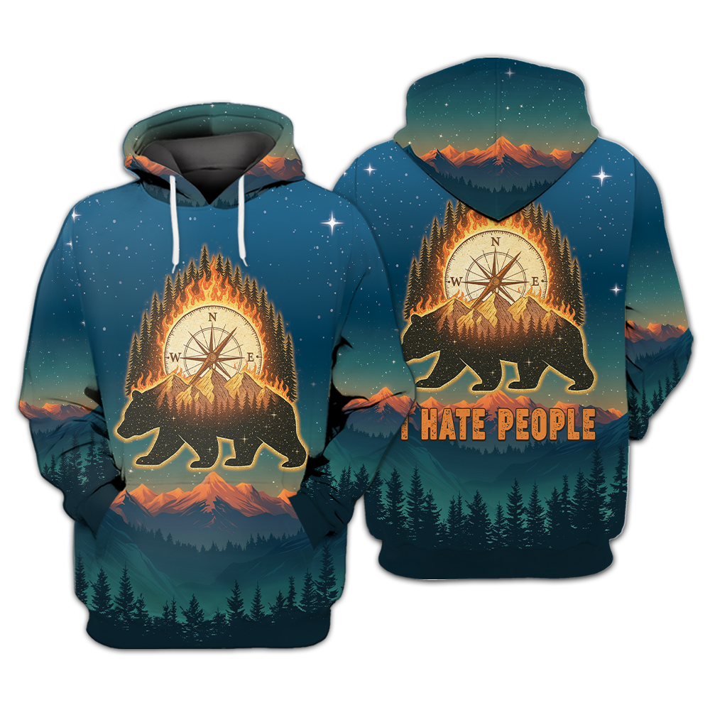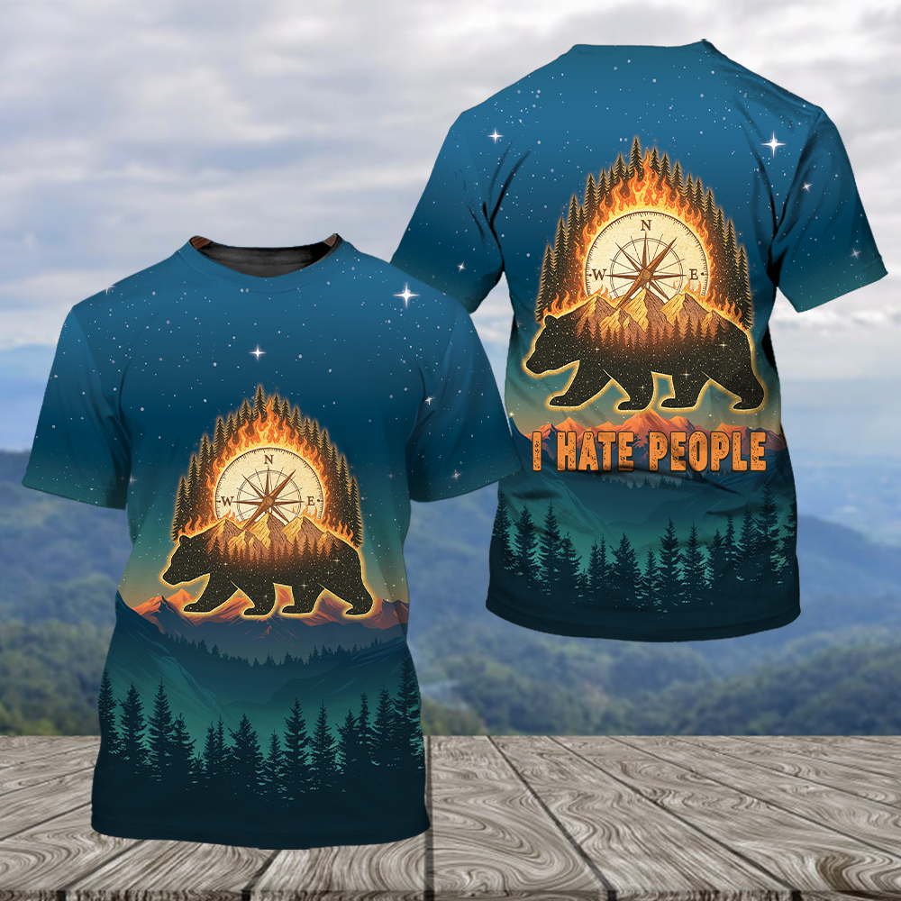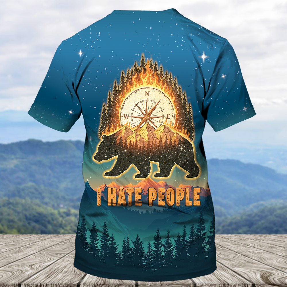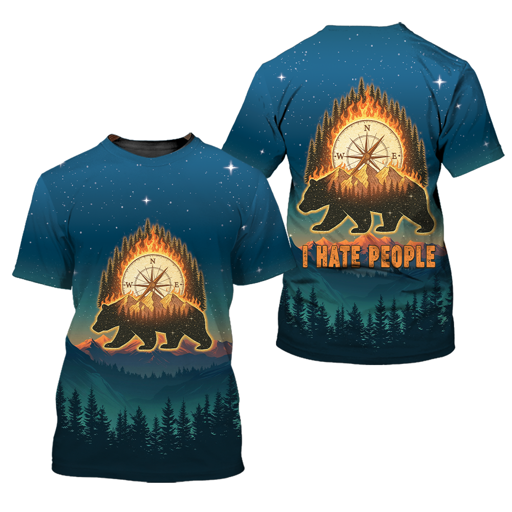 Bear Camp I Hate People Mountain Night Forest All Over Print Shirt