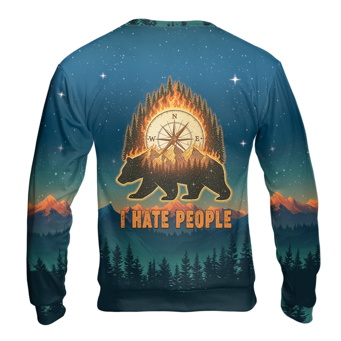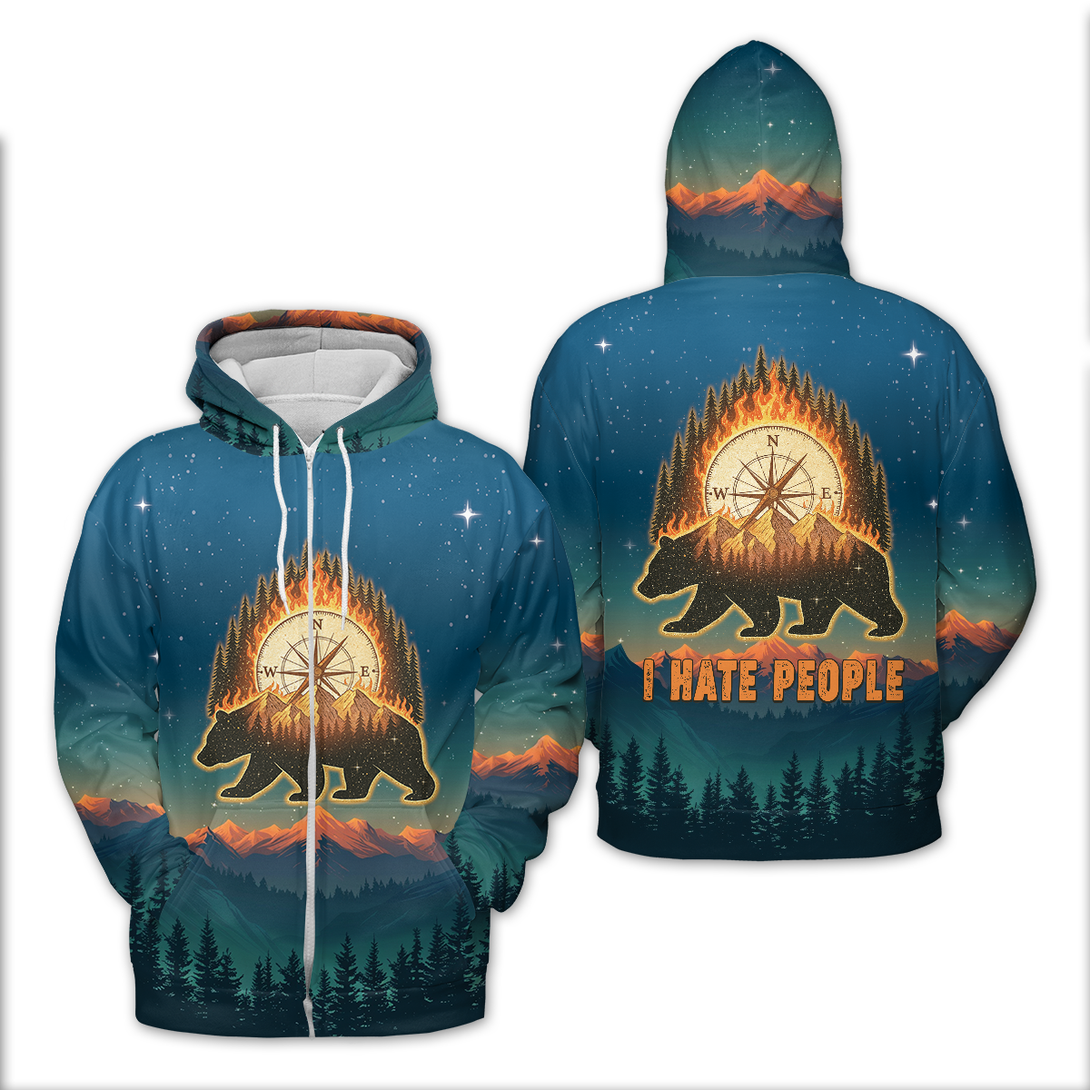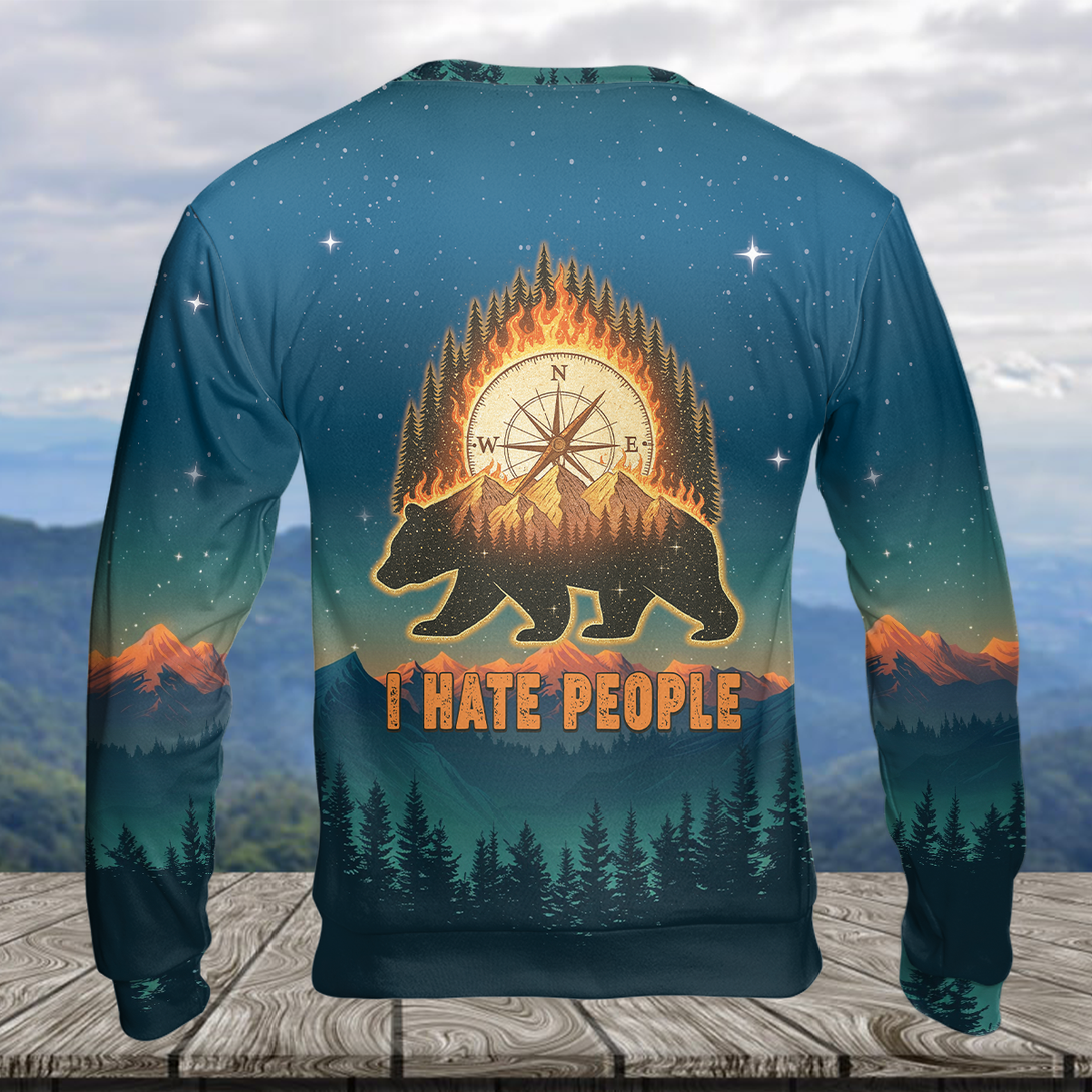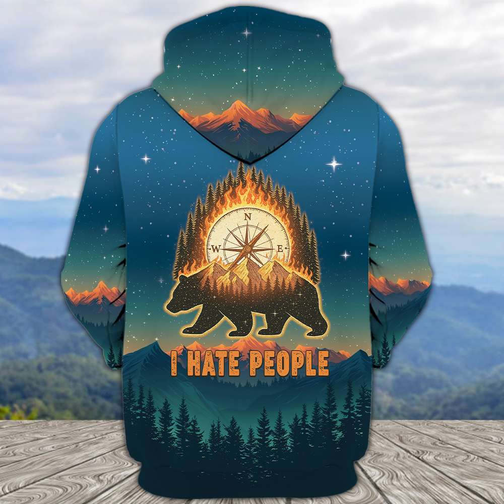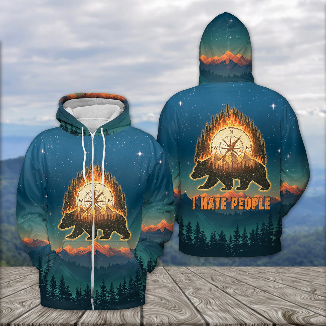 Bear Camp I Hate People Mountain Night Forest All Over Print Shirt