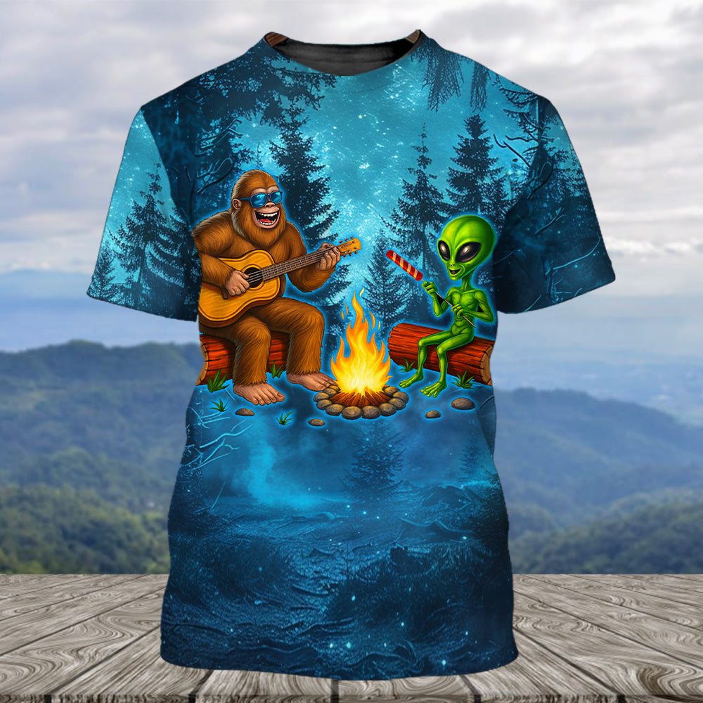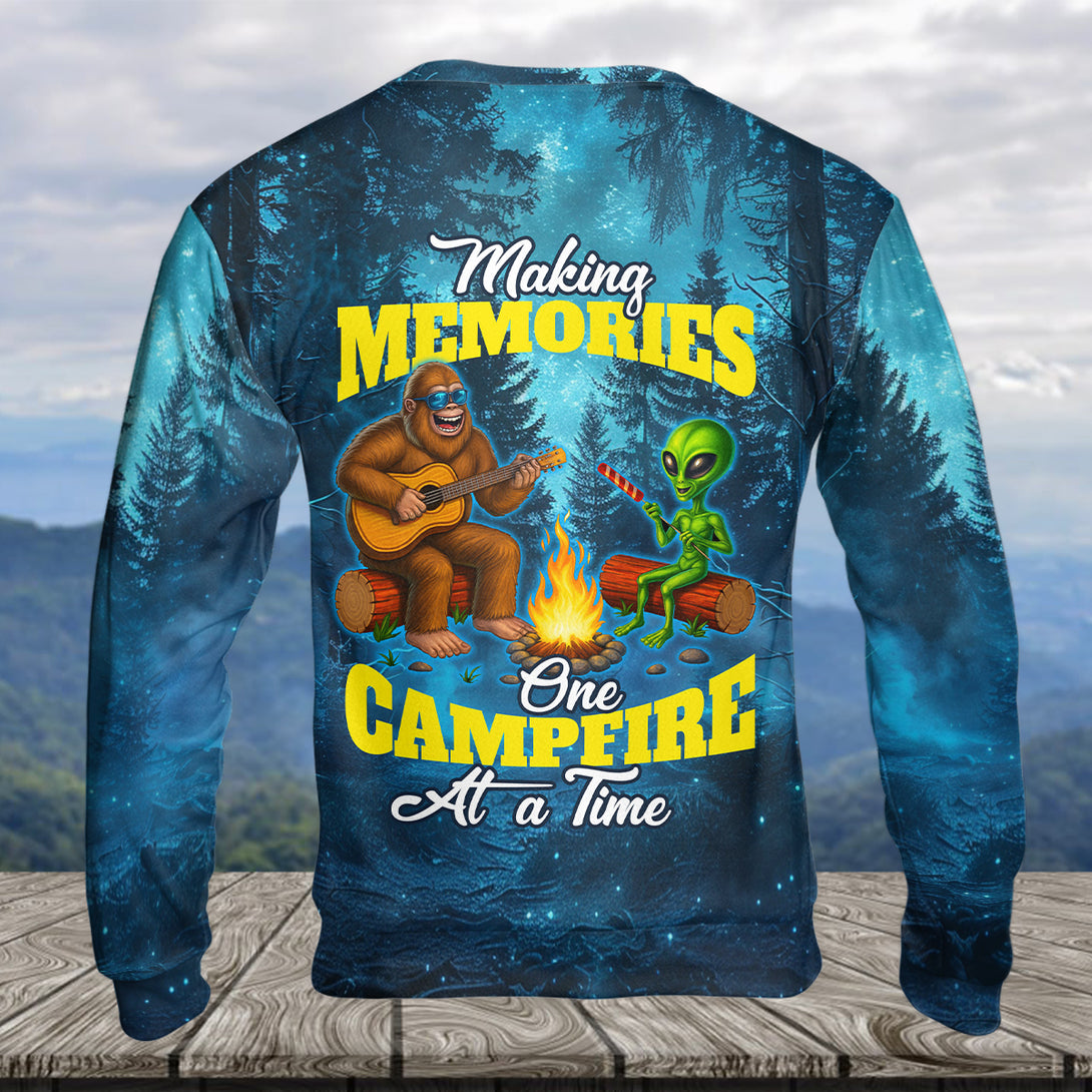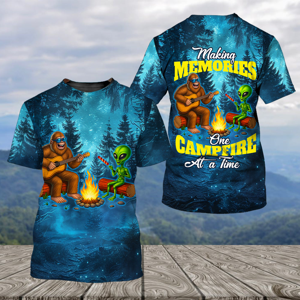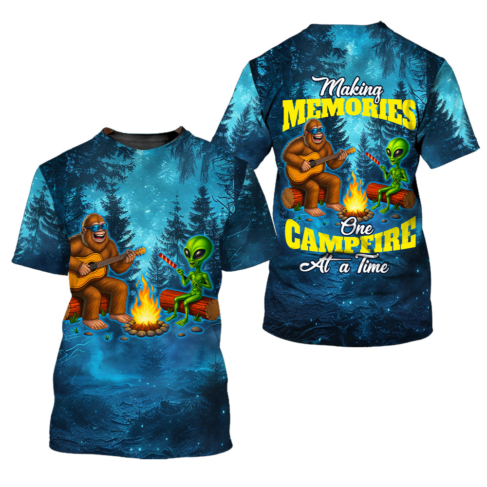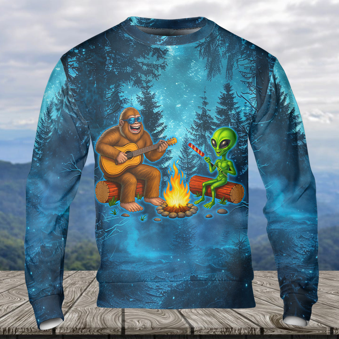 Bigfoot And Alien Making Memories One Campfire At A Time Christmas All Over Print Shirt