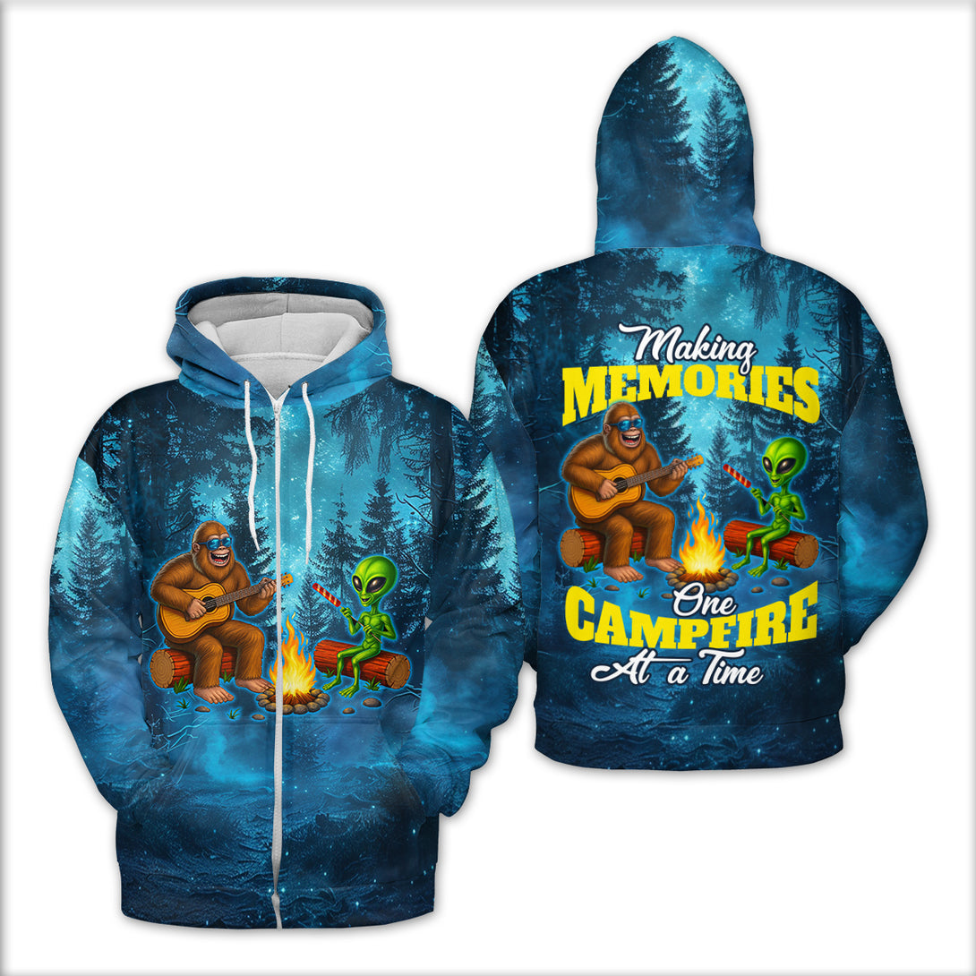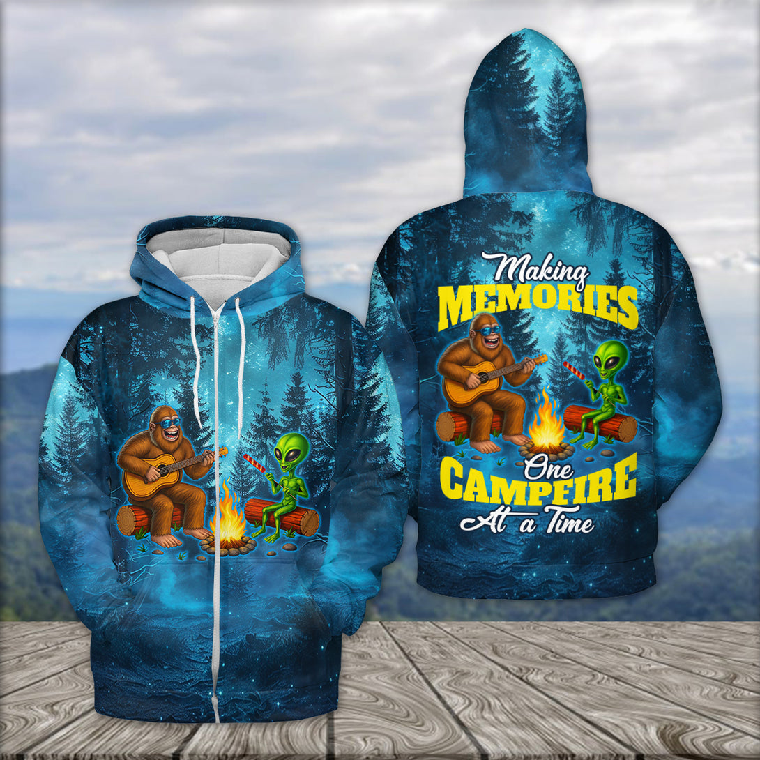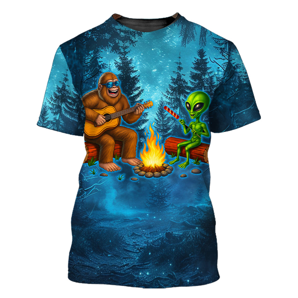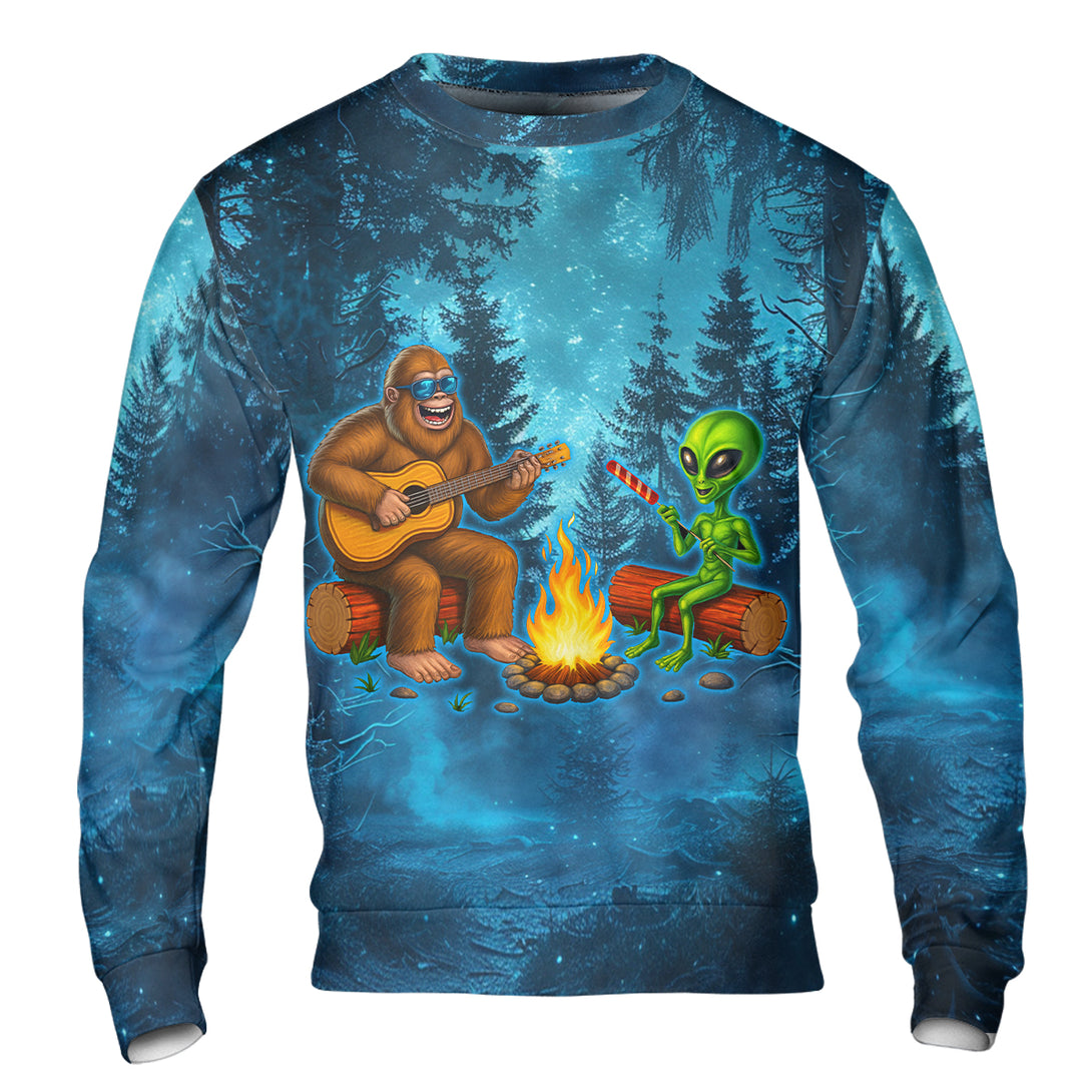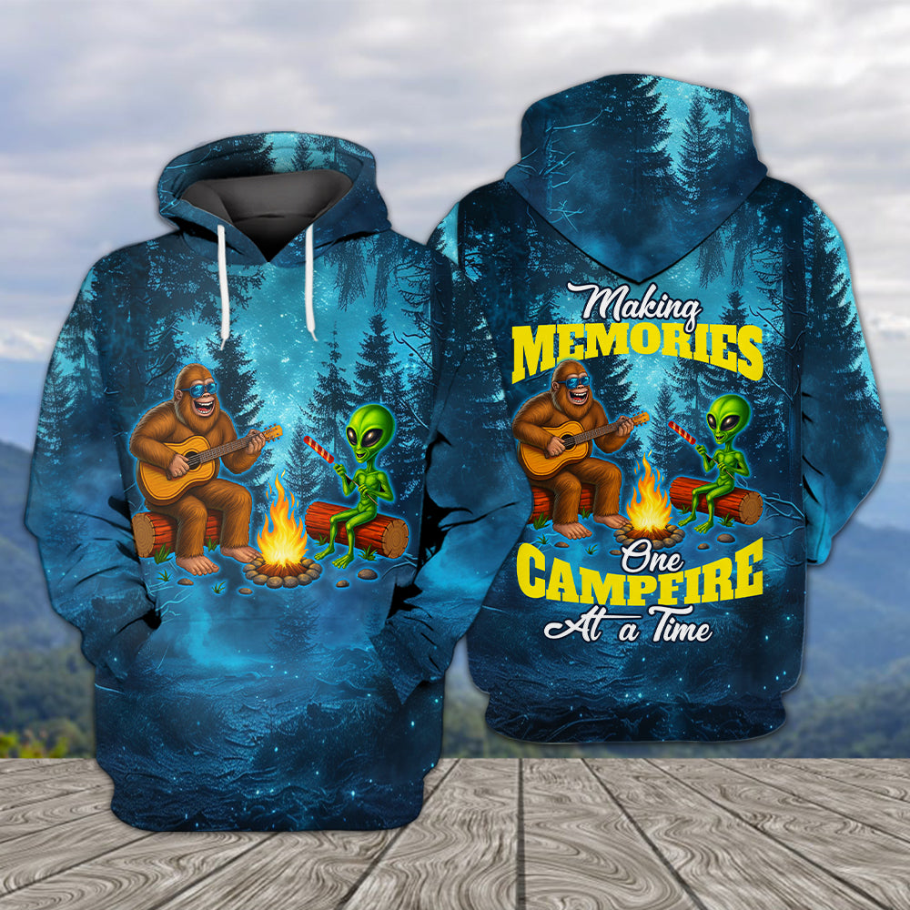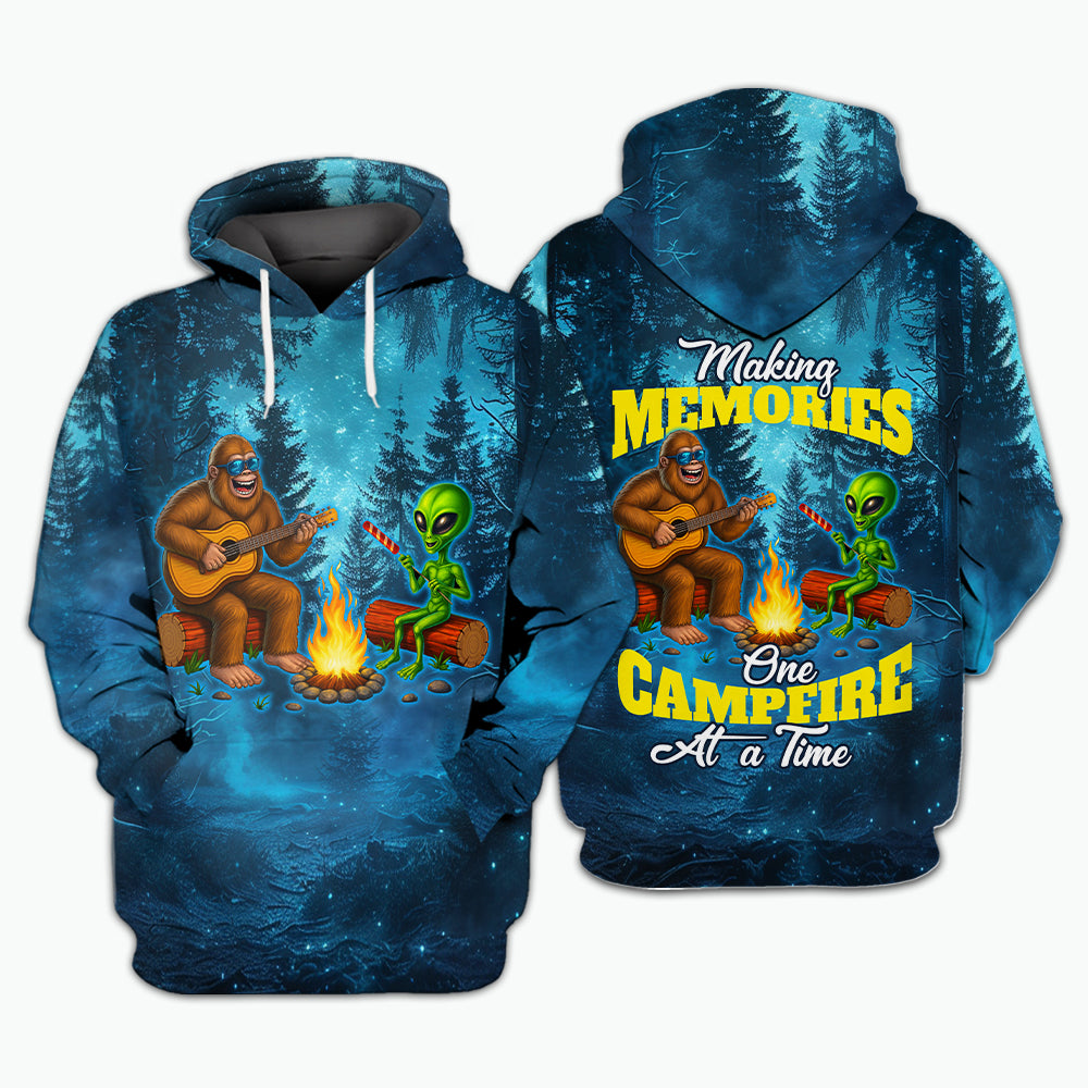 Bigfoot And Alien Making Memories One Campfire At A Time Christmas All Over Print Shirt