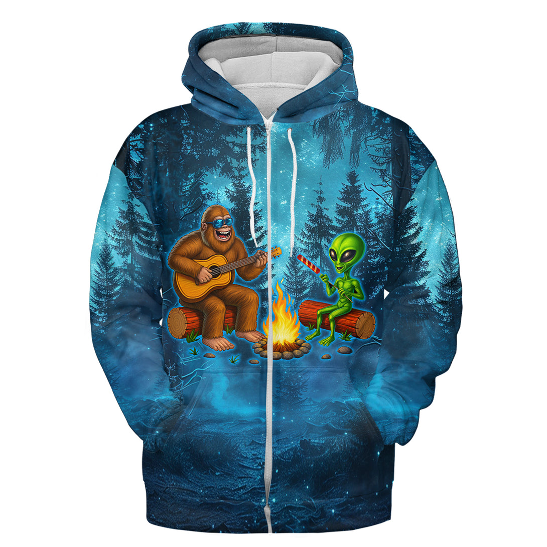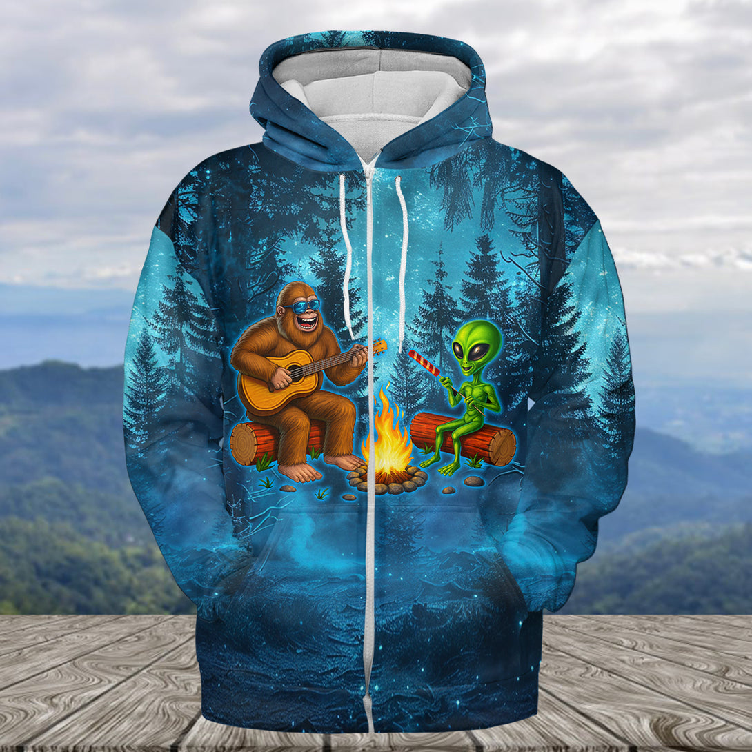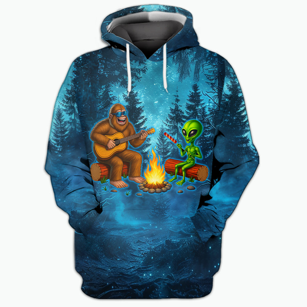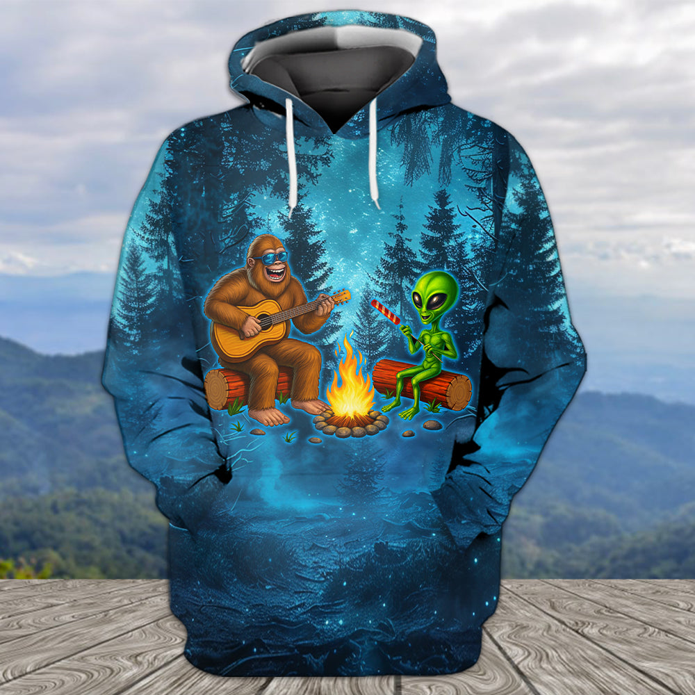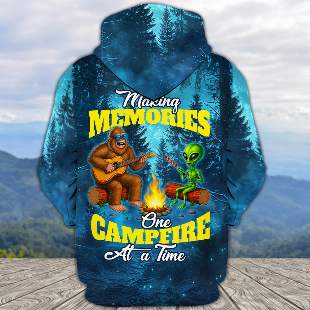 Bigfoot And Alien Making Memories One Campfire At A Time Christmas All Over Print Shirt