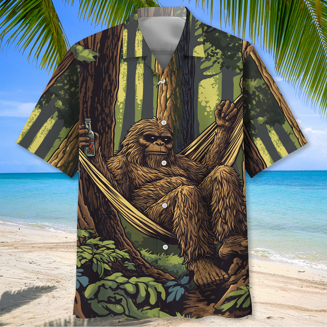 Bigfoot Lounging In A Hammock Hawaiian Shirt