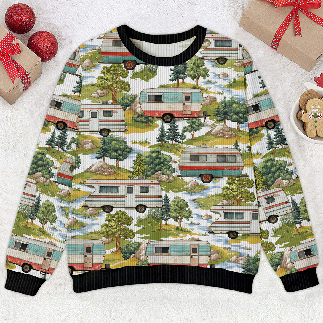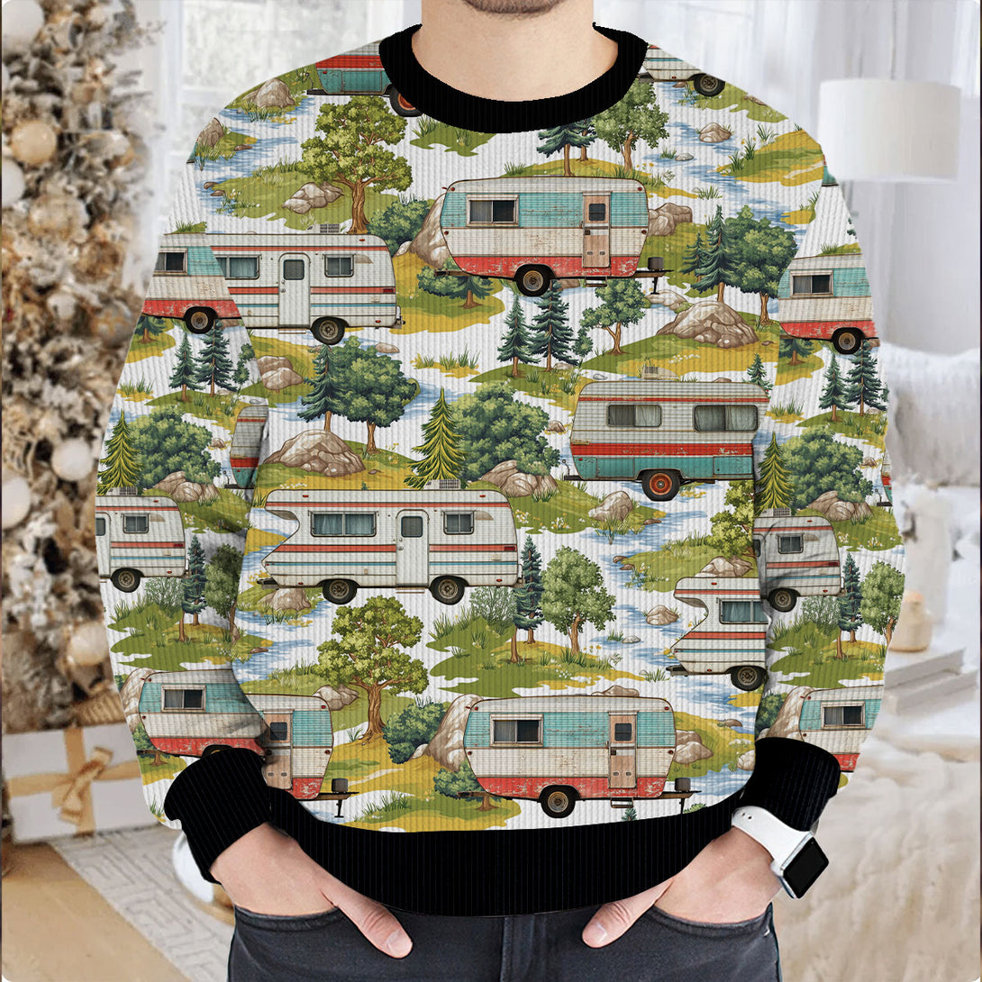 Camper Trailer Camping 80s Vintage Ugly Sweater