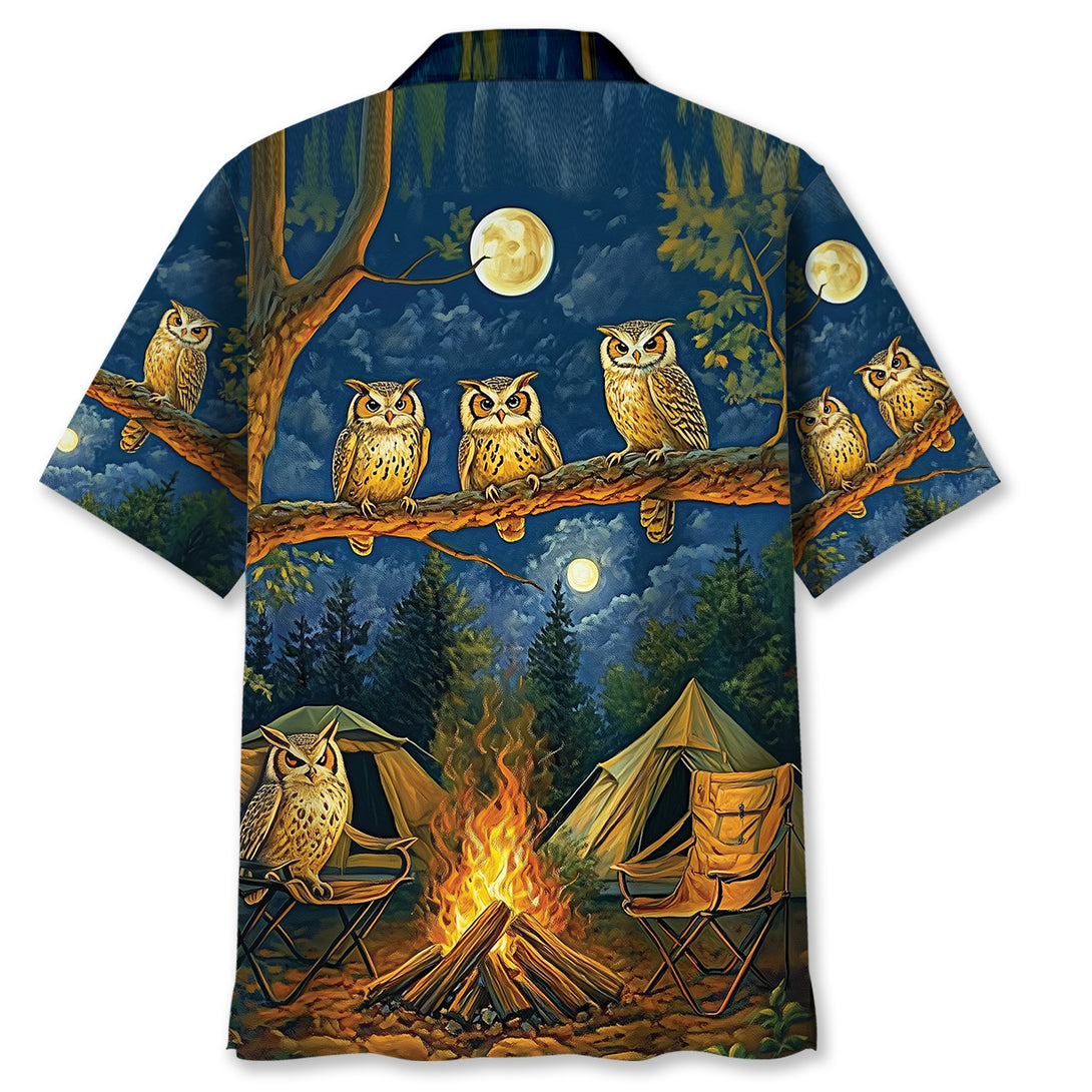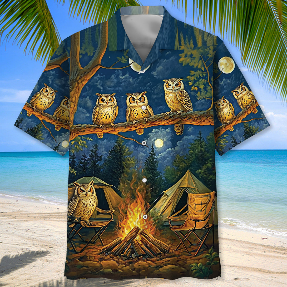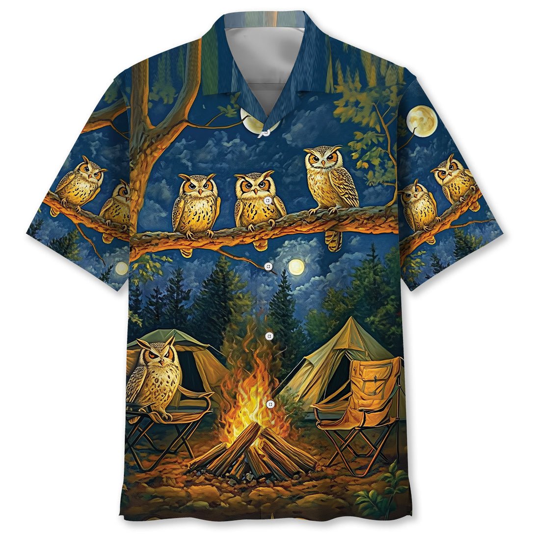 Campfire Night With Owls Art Hawaiian Shirt