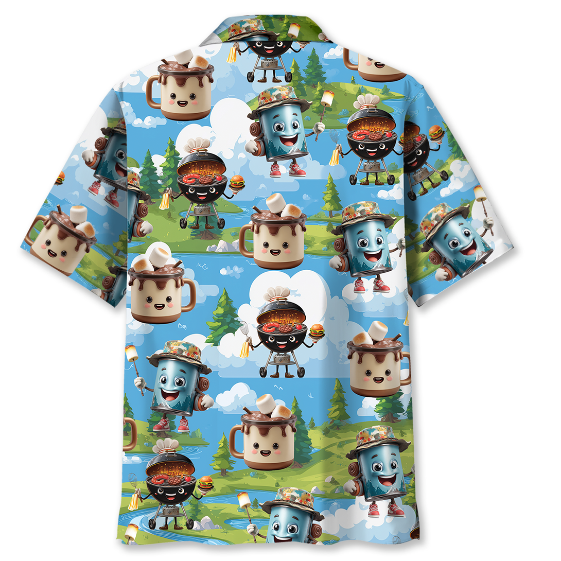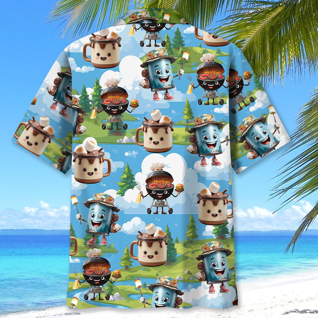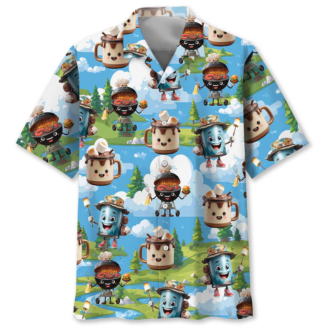 Camping Food Cartoon Character Hawaiian Shirt