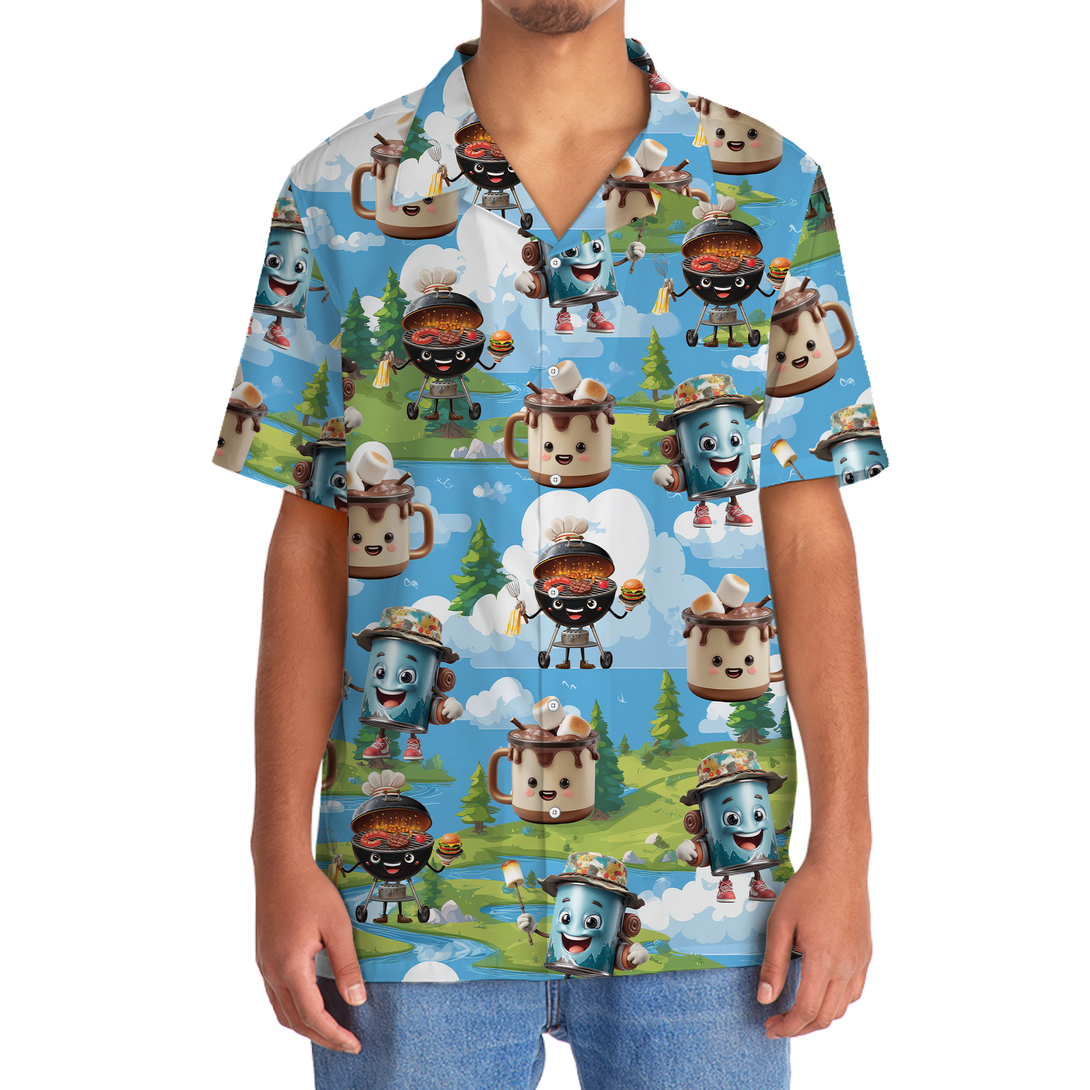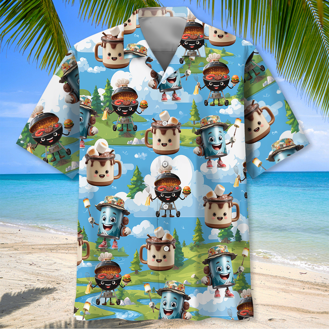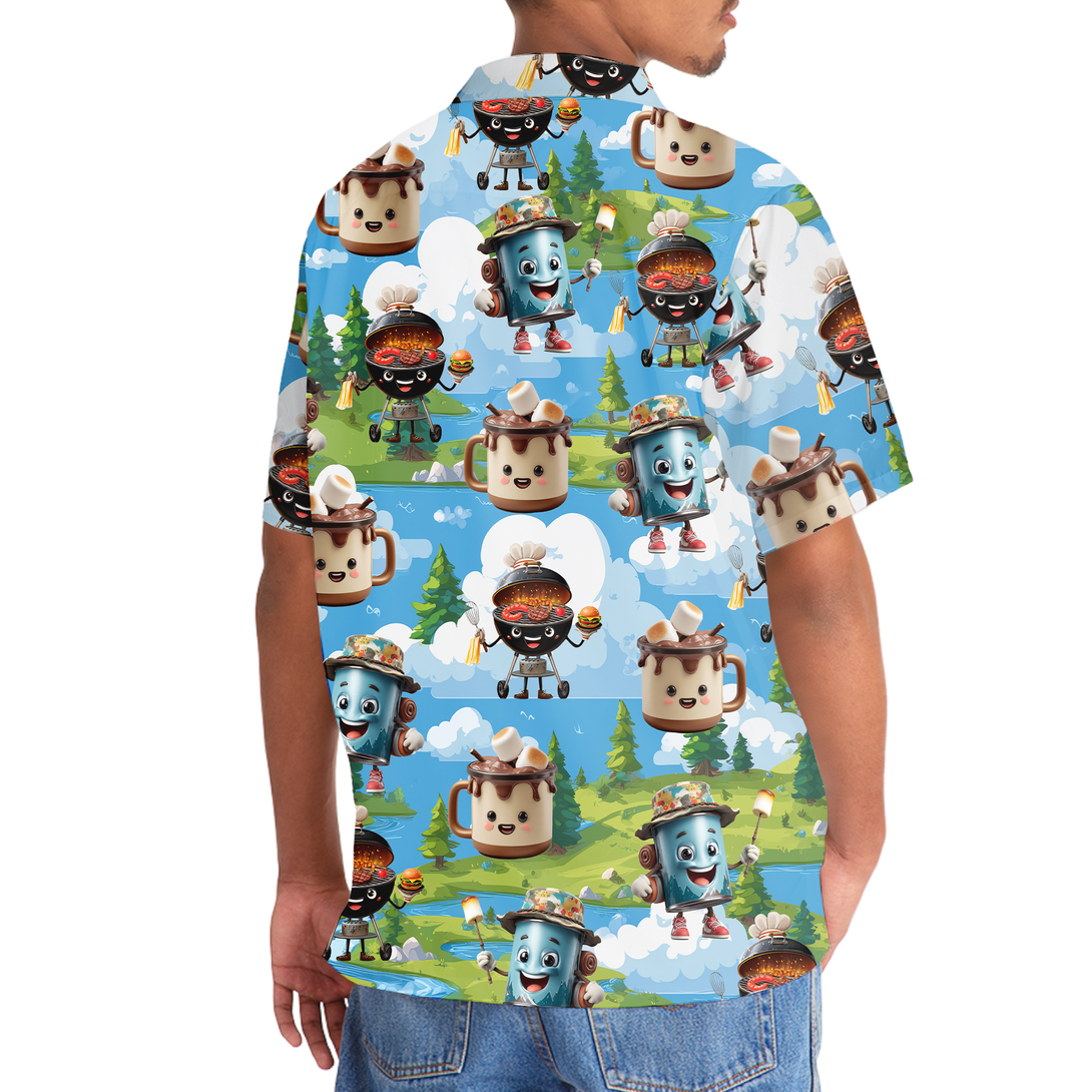 Camping Food Cartoon Character Hawaiian Shirt