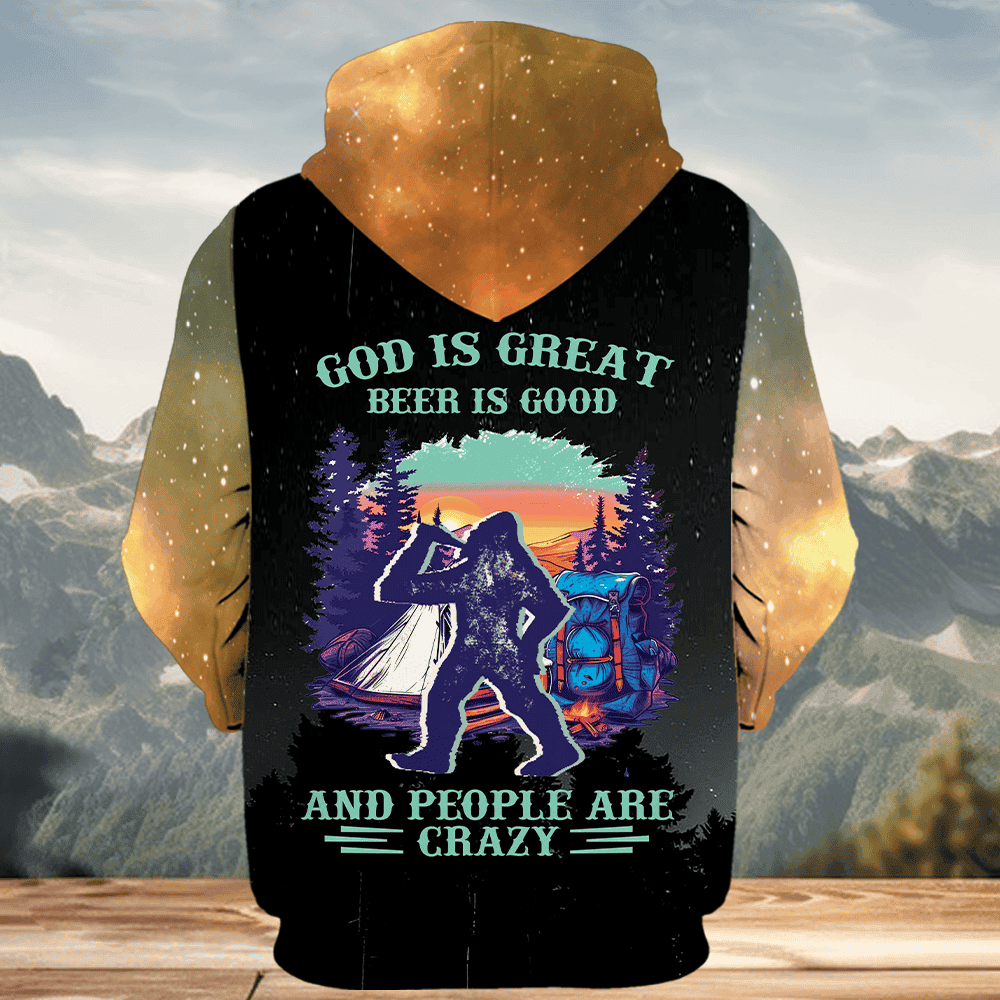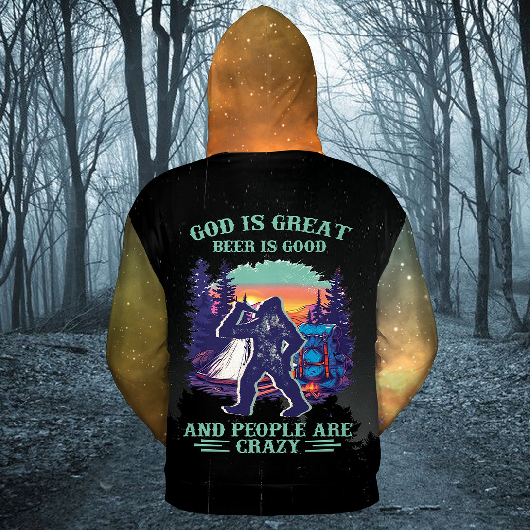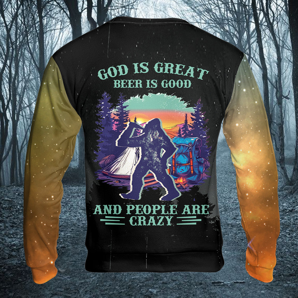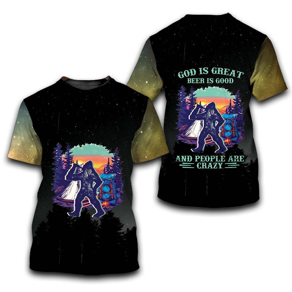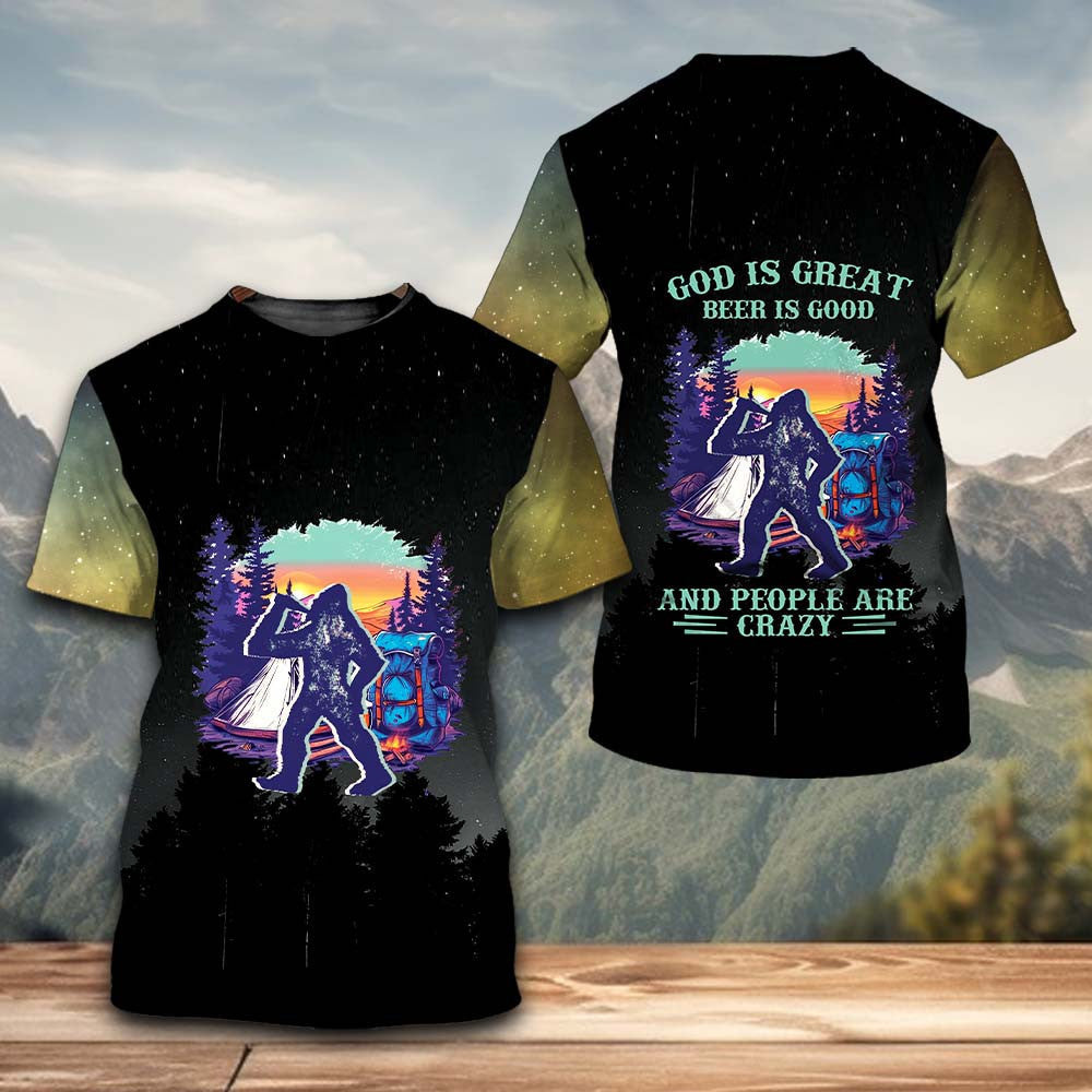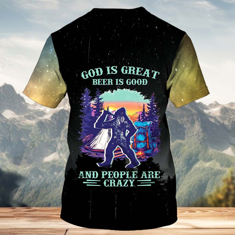 Camping God Is Great Beer Is Good and People Are Crazy All Over Print Shirt