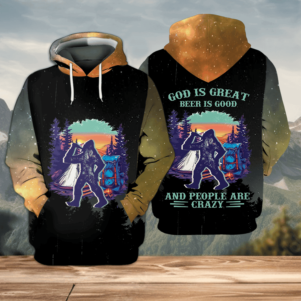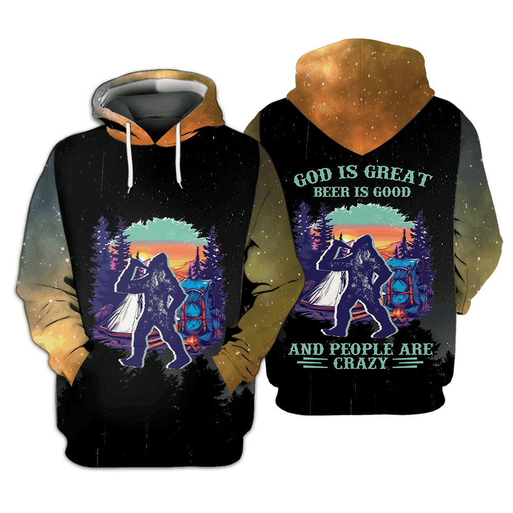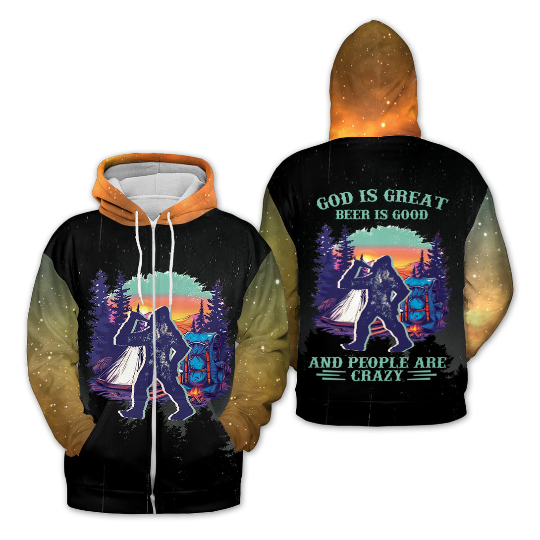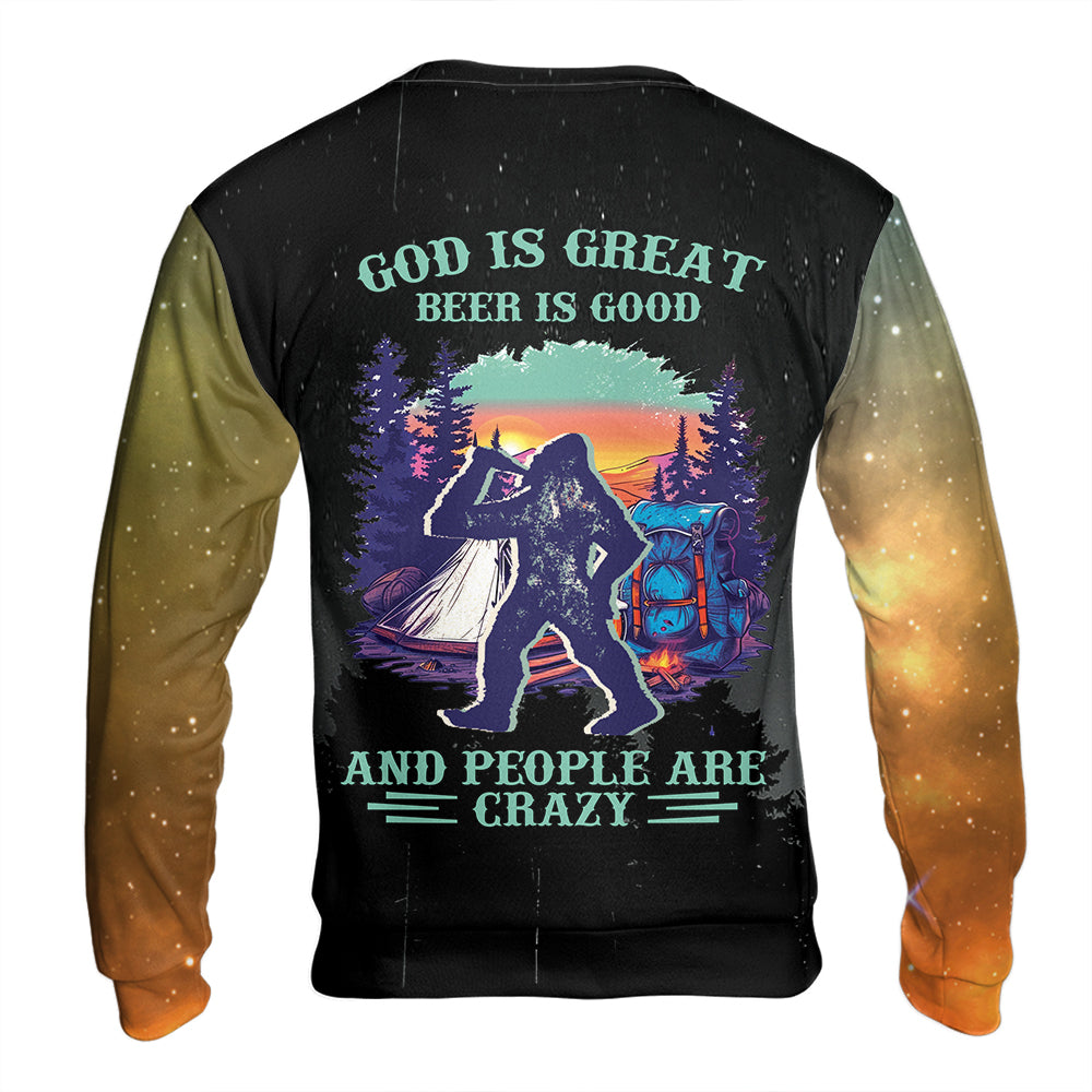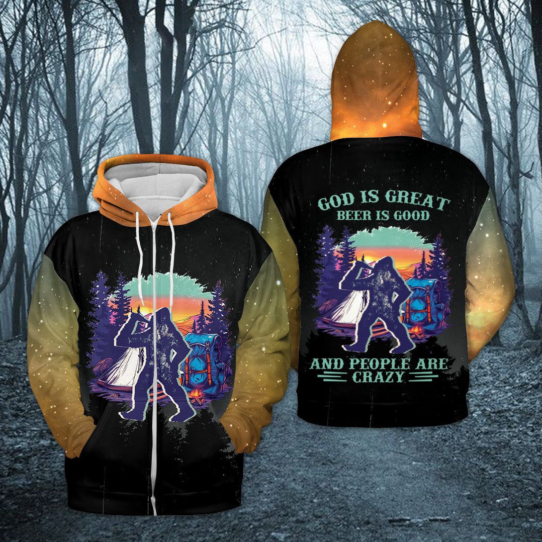 Camping God Is Great Beer Is Good and People Are Crazy All Over Print Shirt
