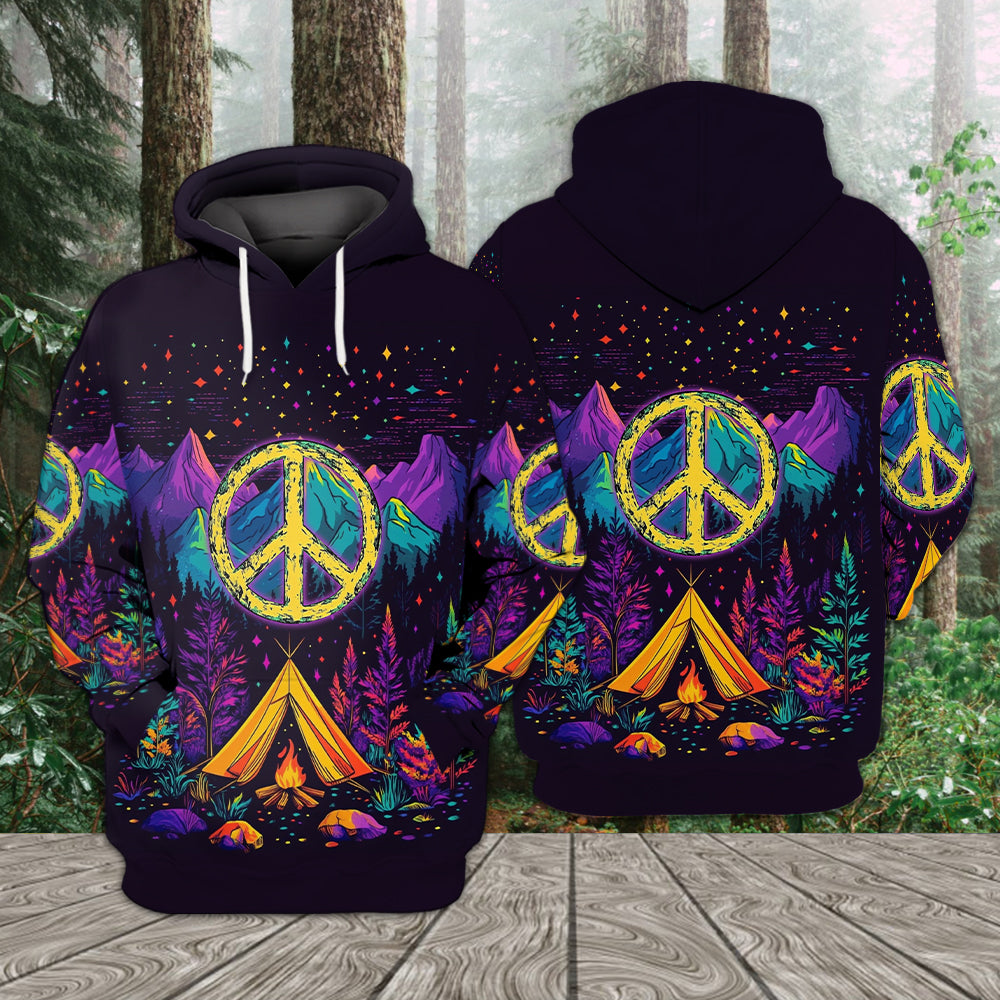 Camping Peace Sign All Over Print Shirt