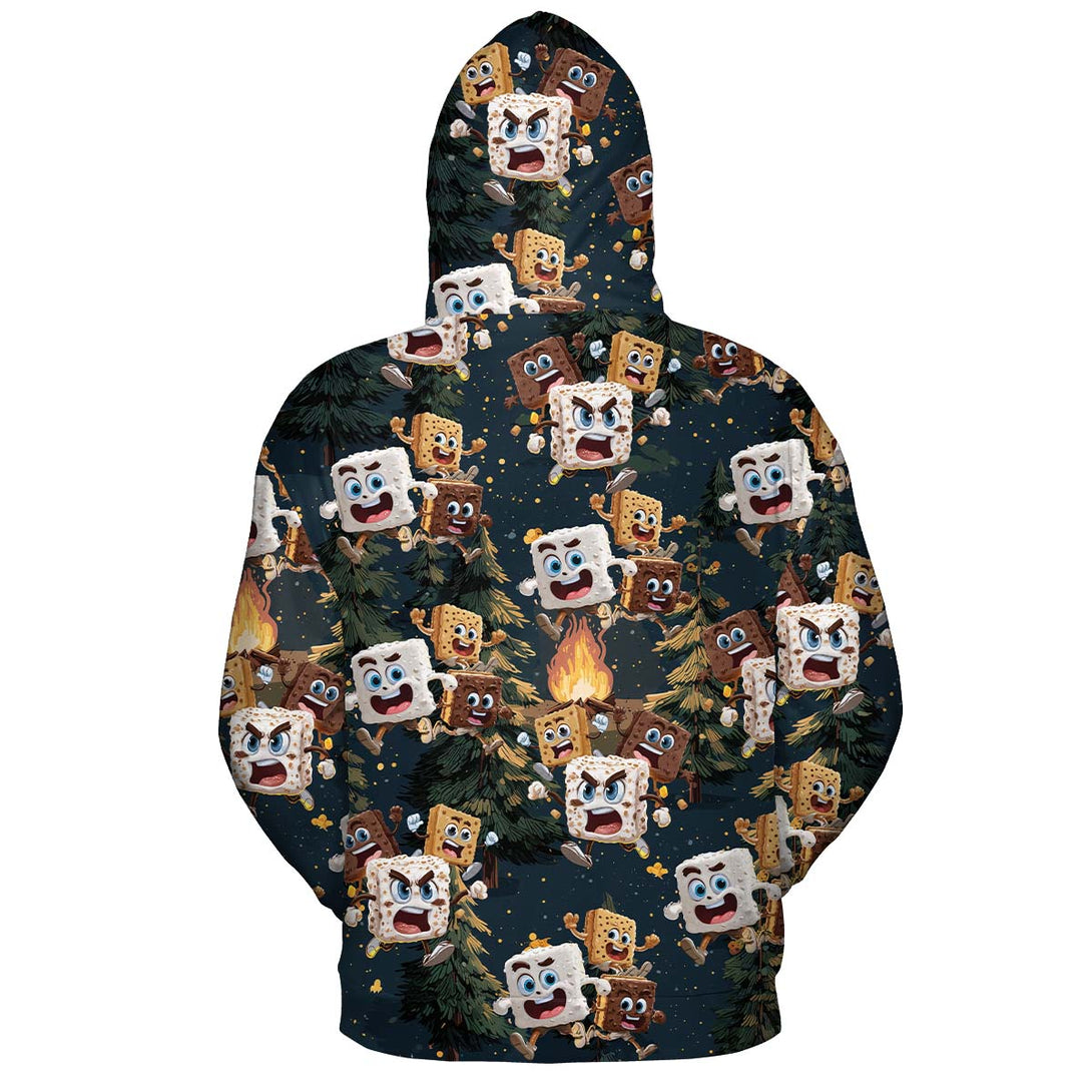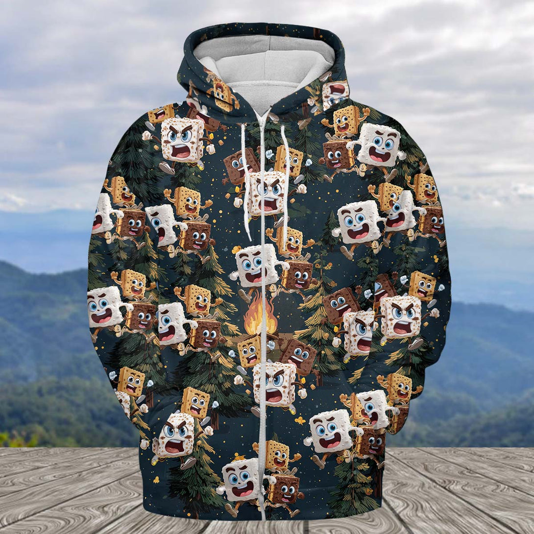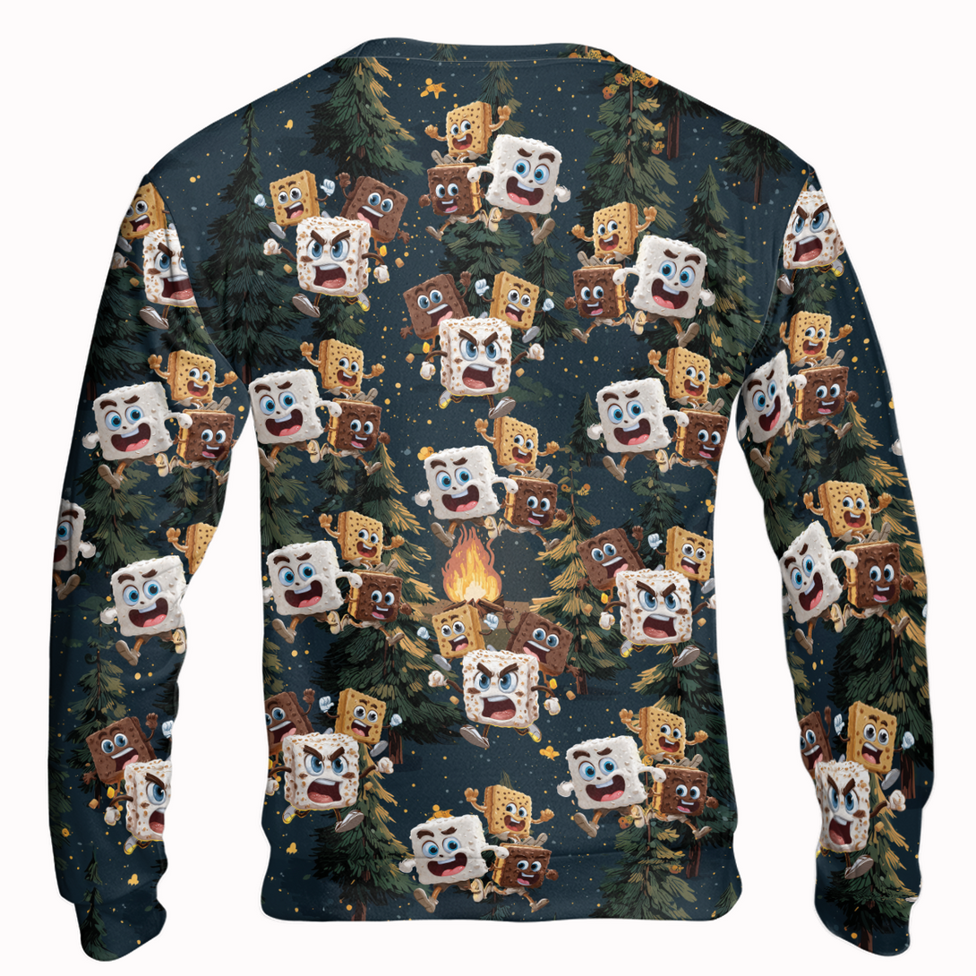 Chocolate and Cracker Chasing Marshmallow Camping All Over Print Shirt