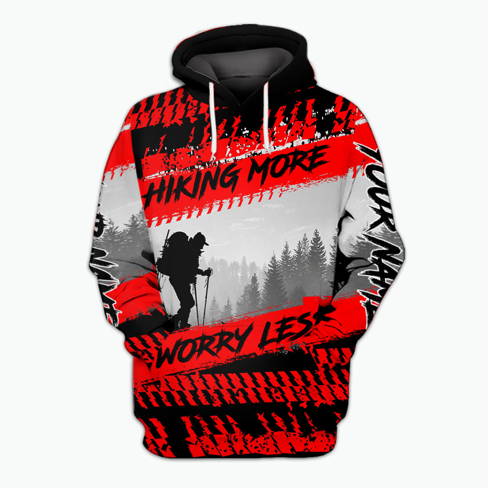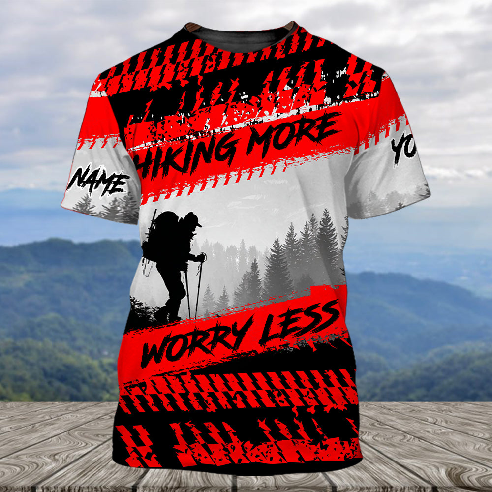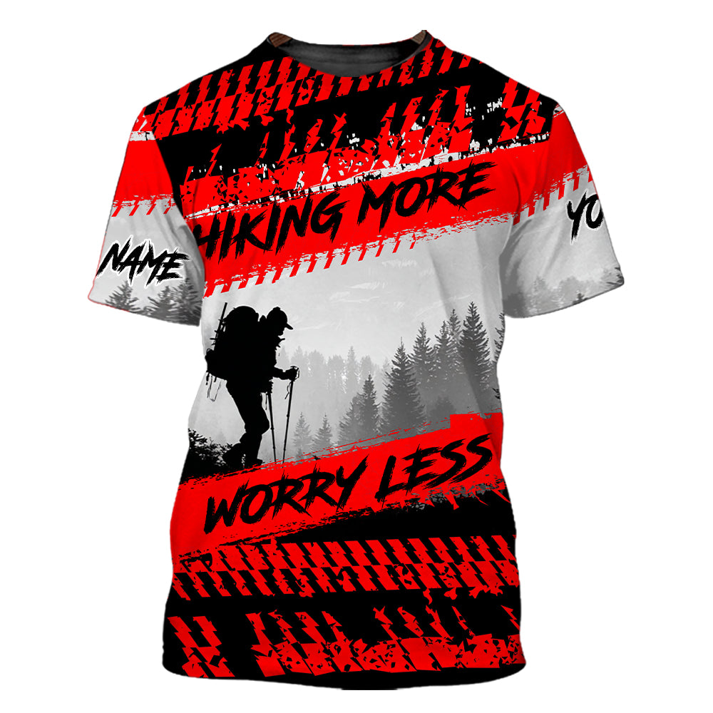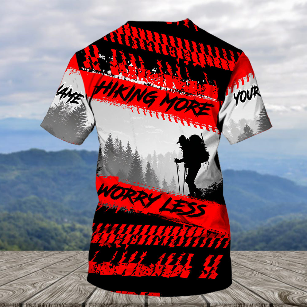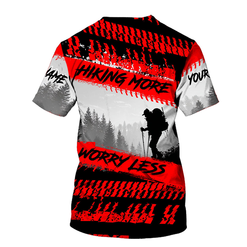 Custom Name Hiking More Worry Less Black Red All Over Print Shirt