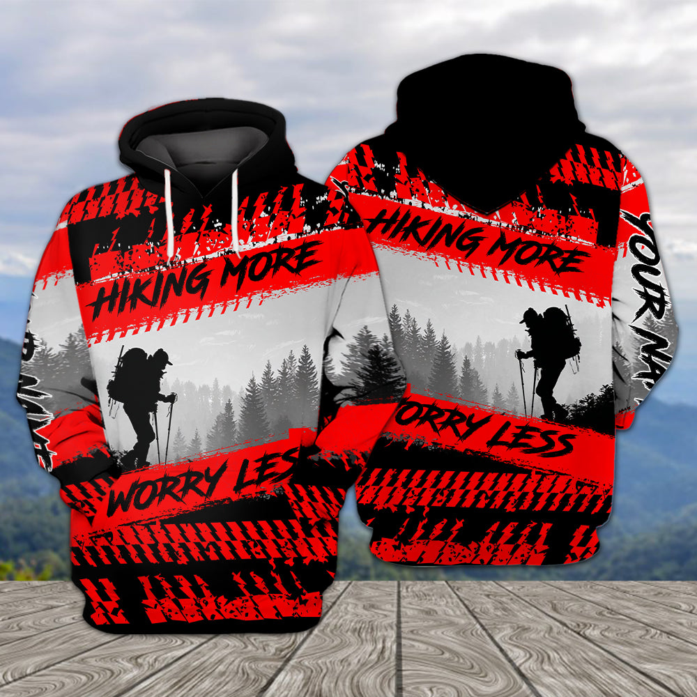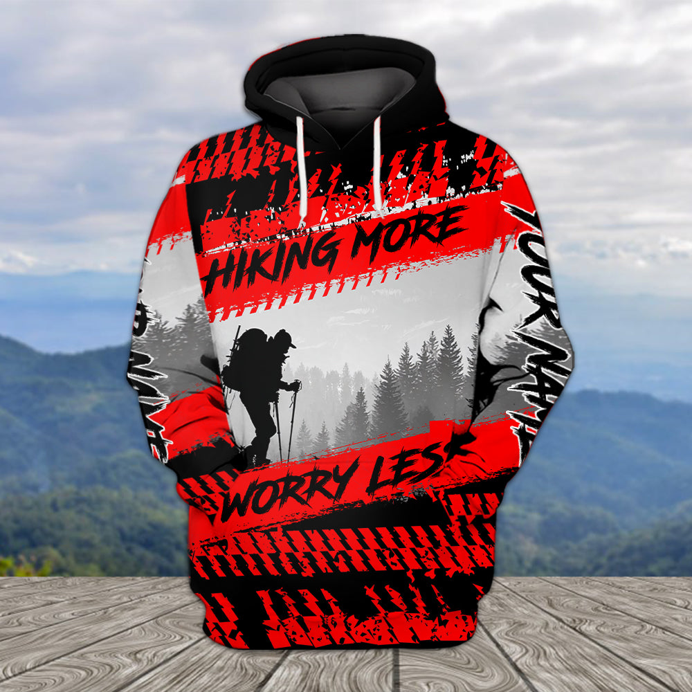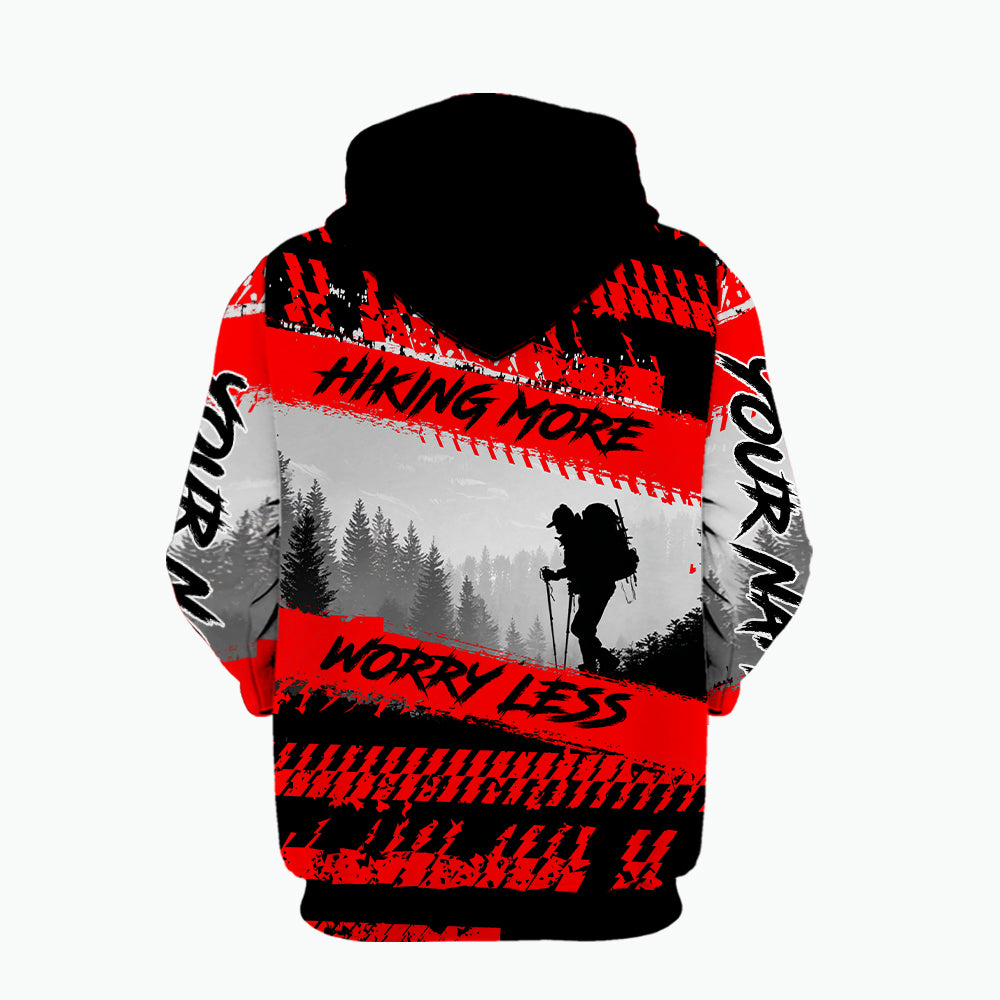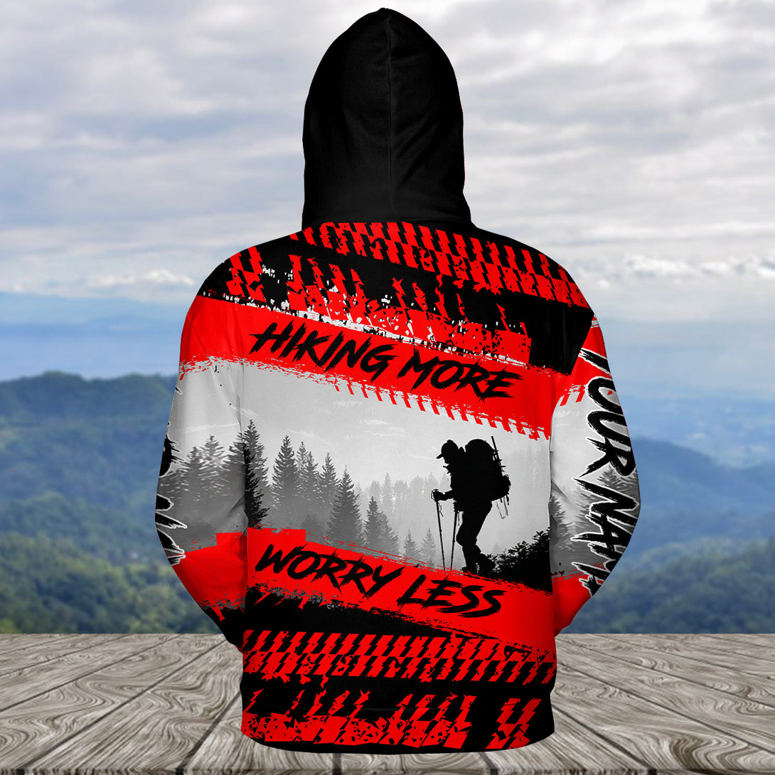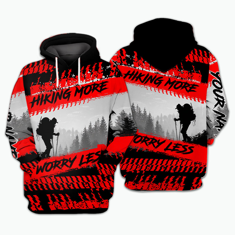 Custom Name Hiking More Worry Less Black Red All Over Print Shirt