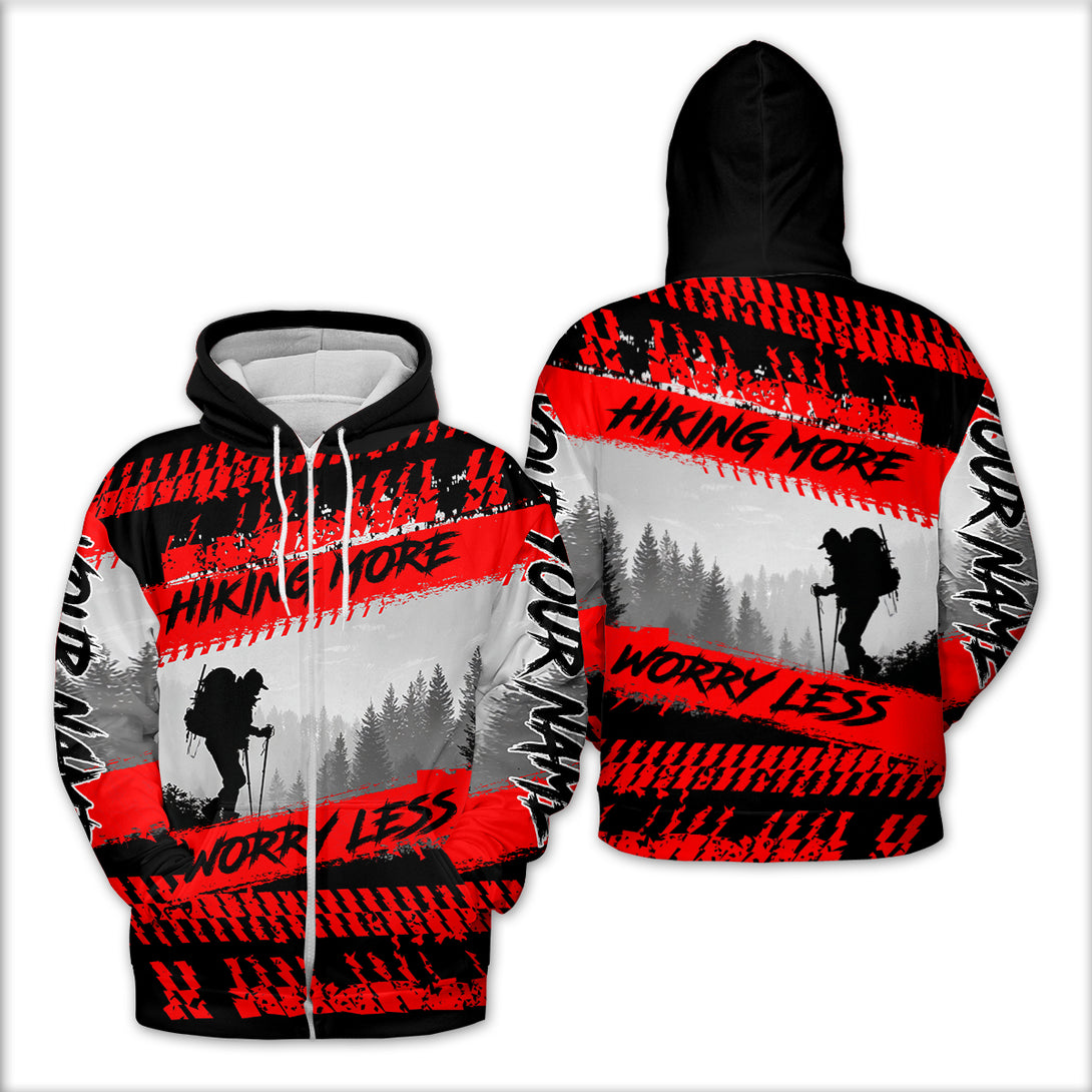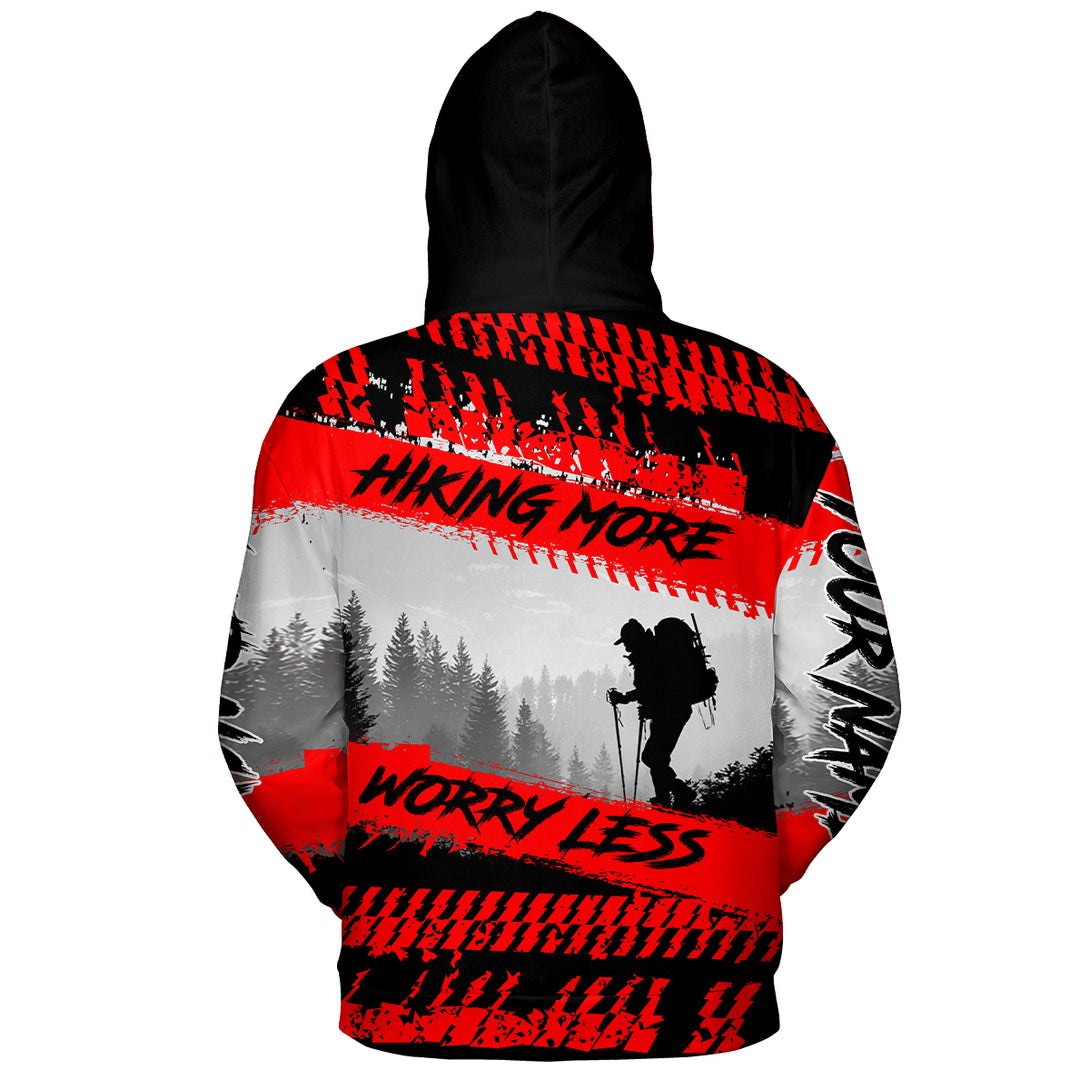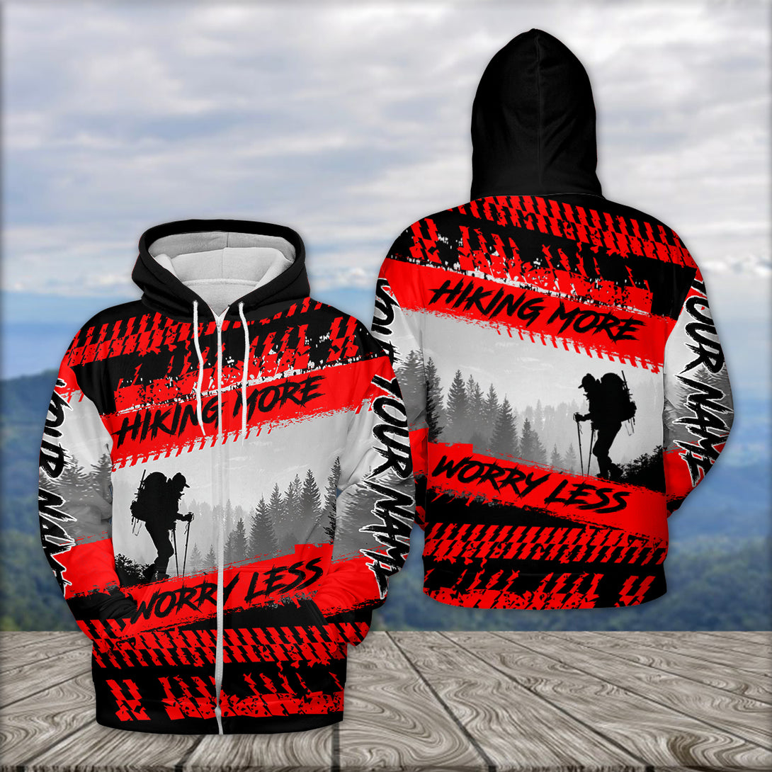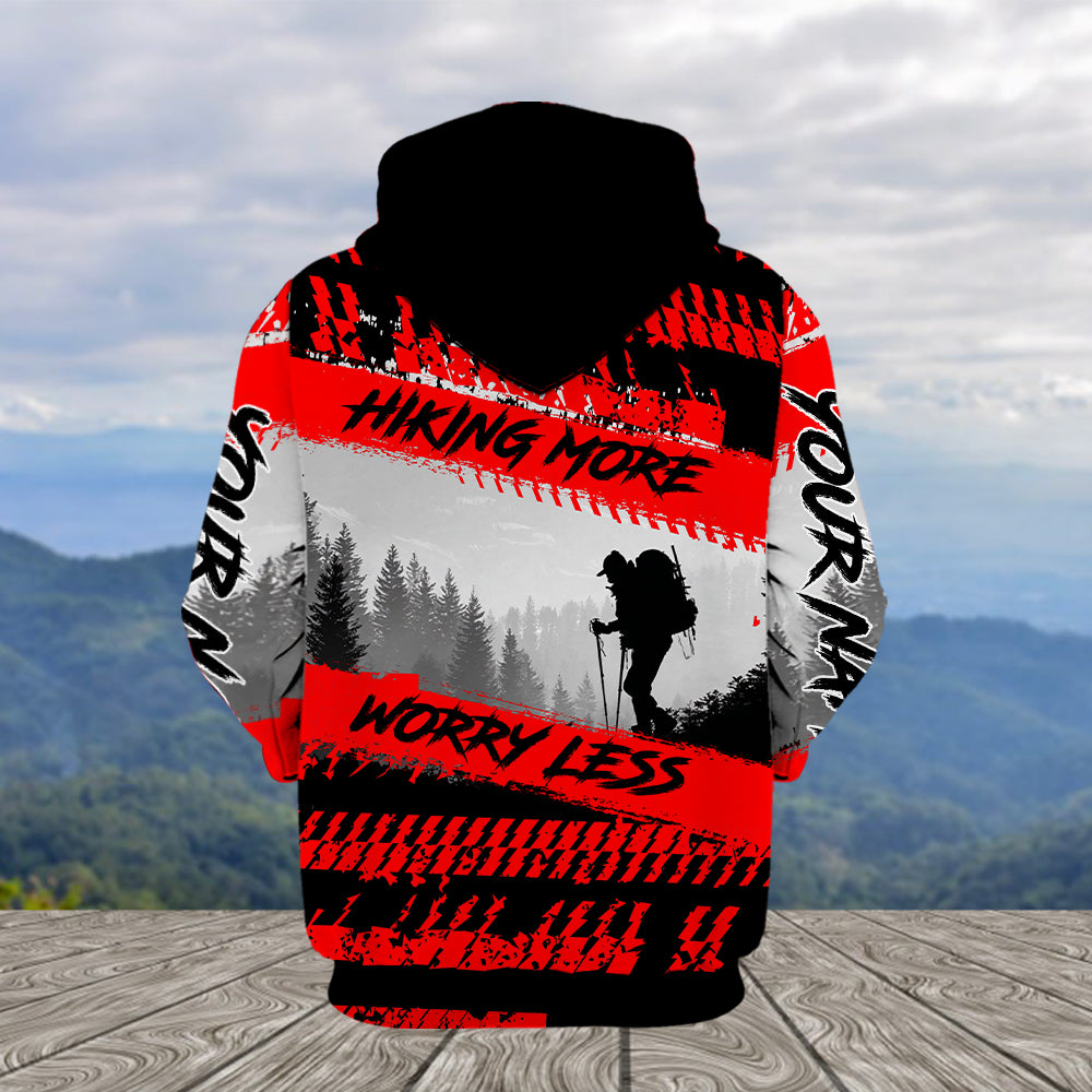 Custom Name Hiking More Worry Less Black Red All Over Print Shirt
