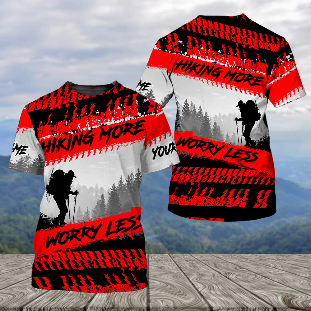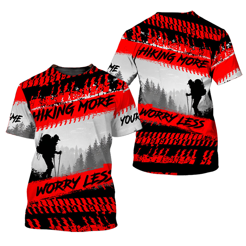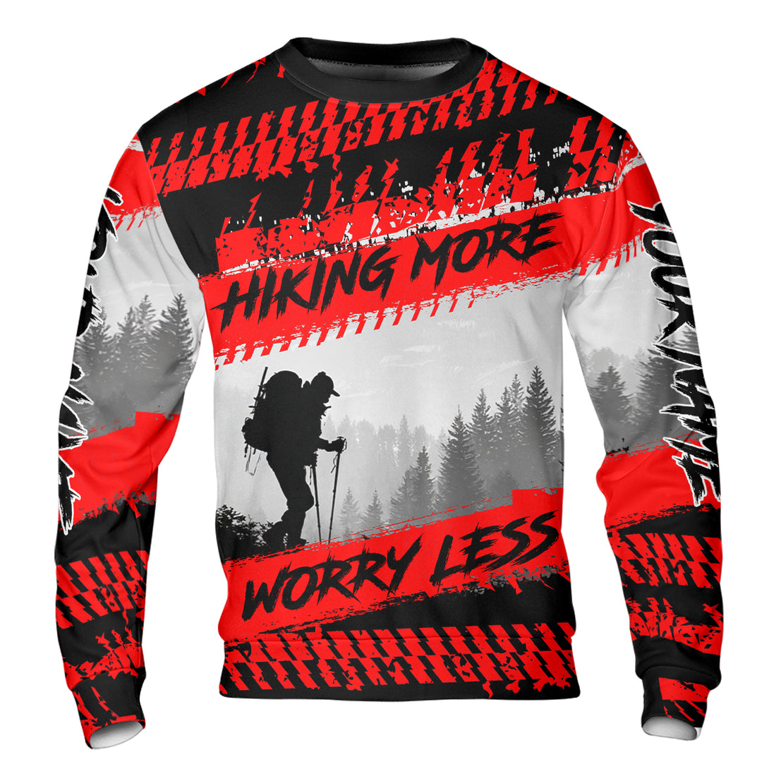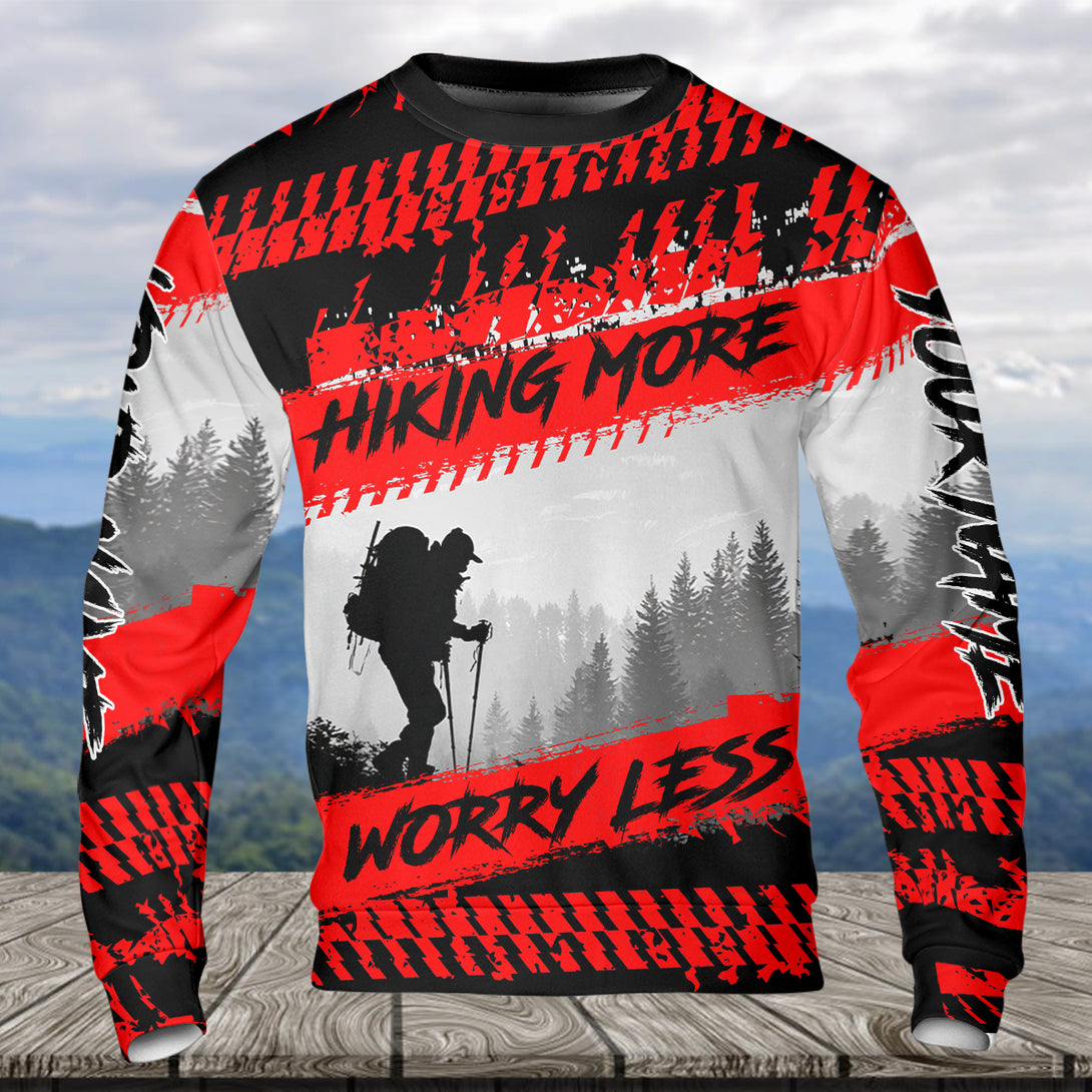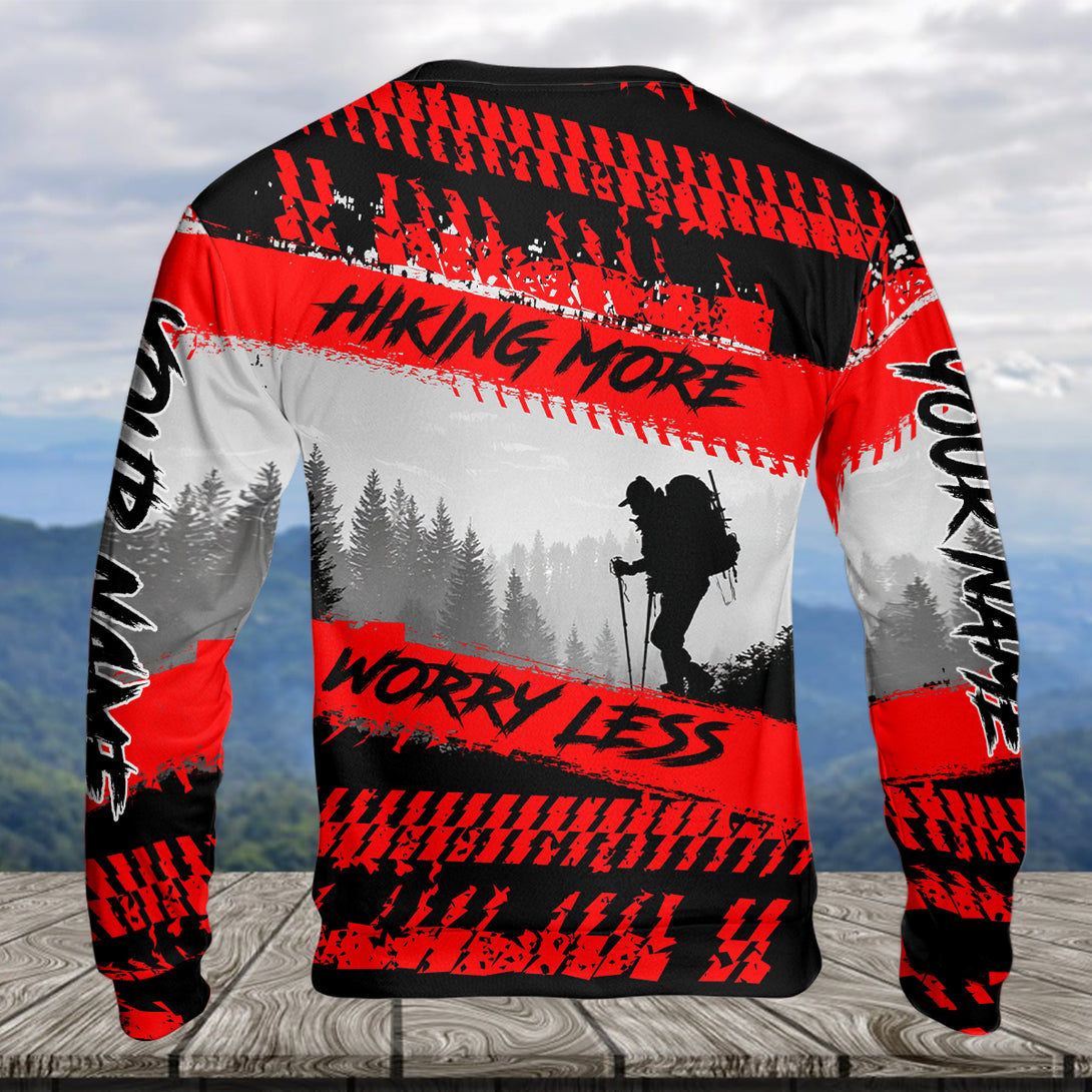 Custom Name Hiking More Worry Less Black Red All Over Print Shirt