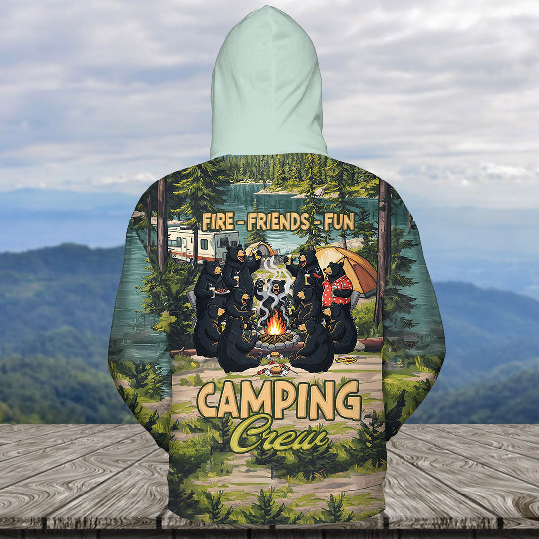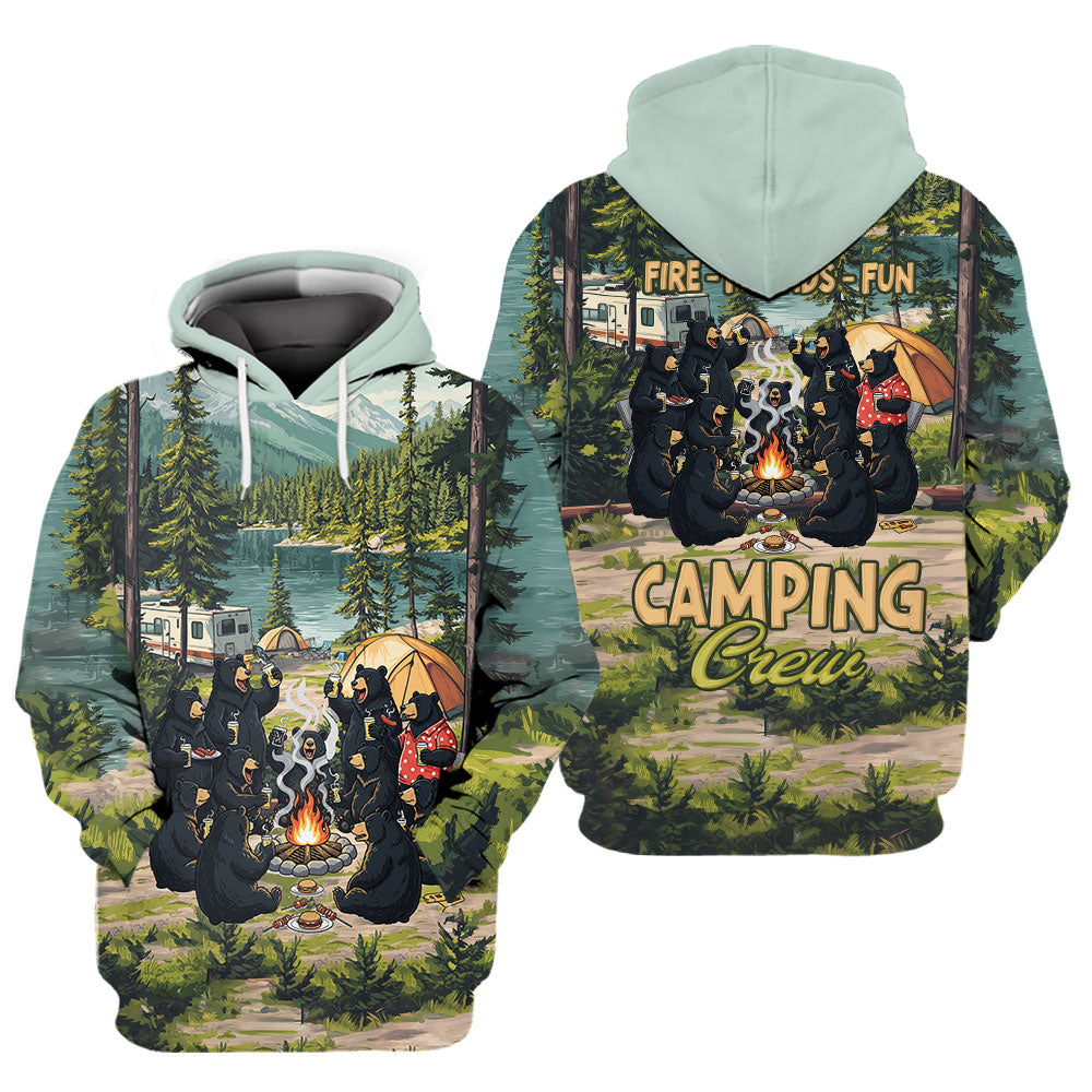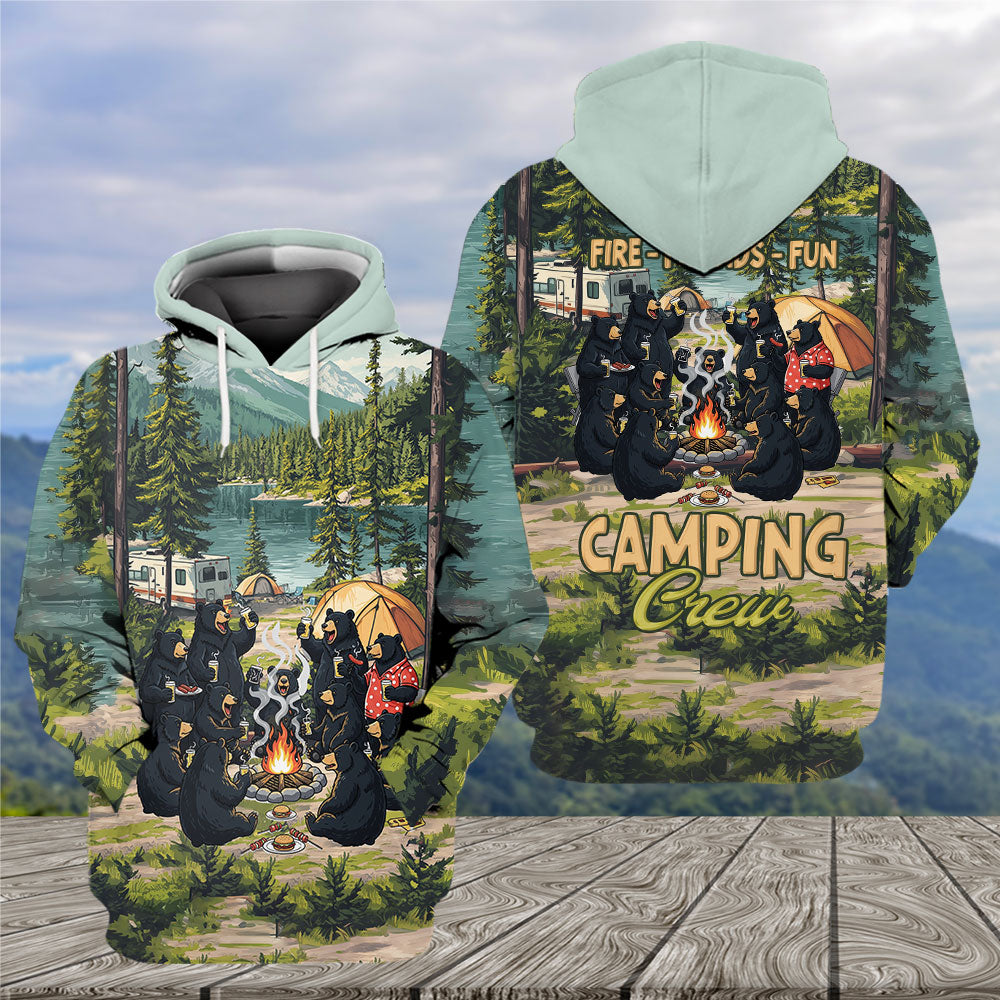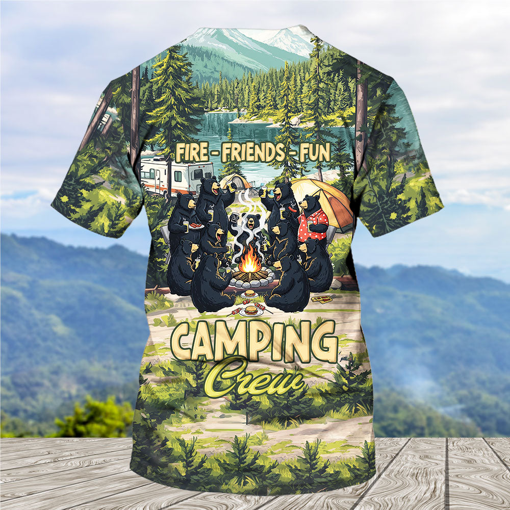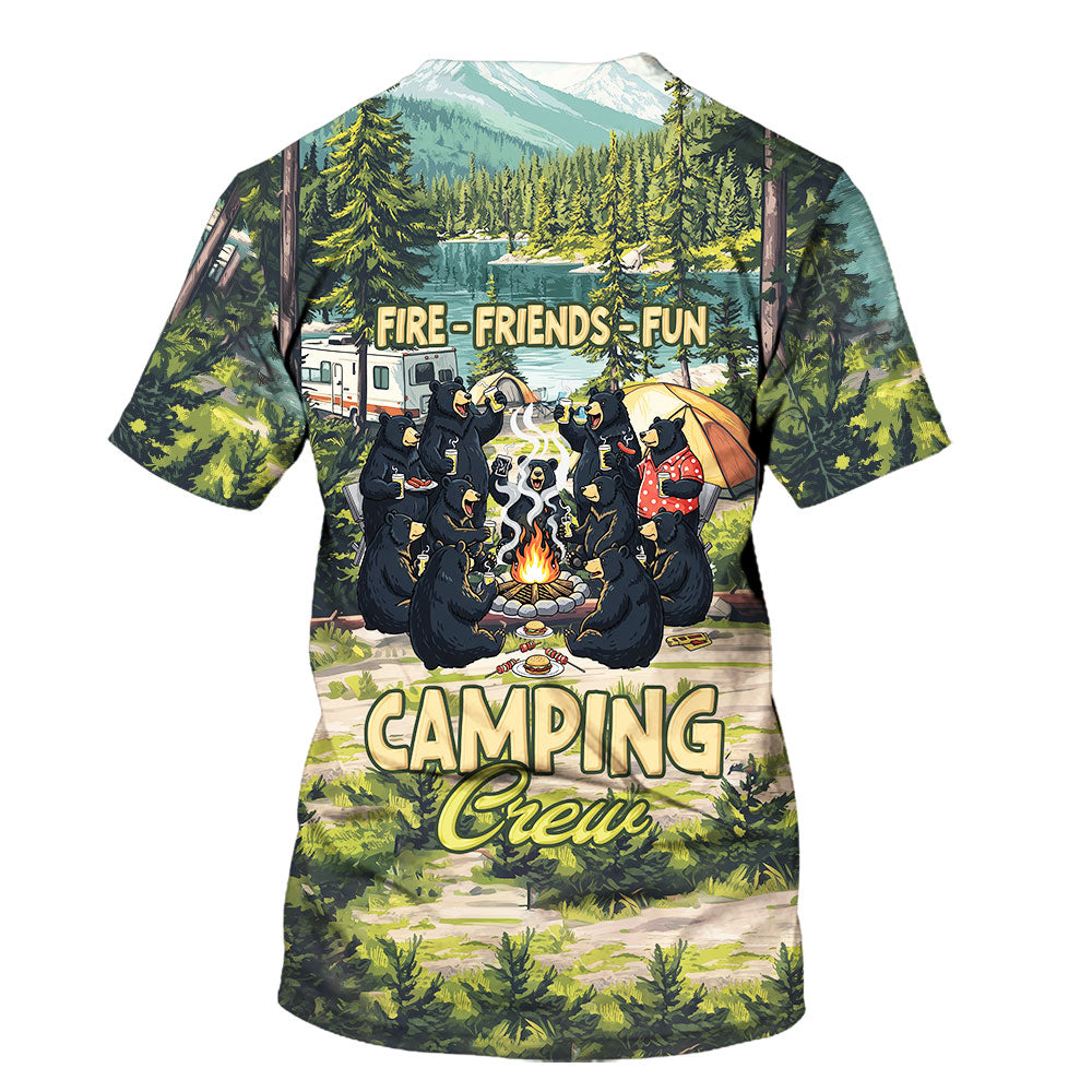 Friends, Fires, Fun Camping Crew Black Bear All Over Print Shirt