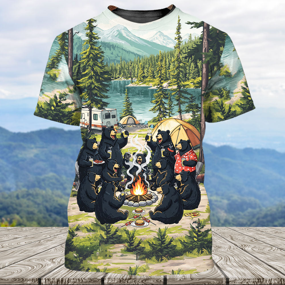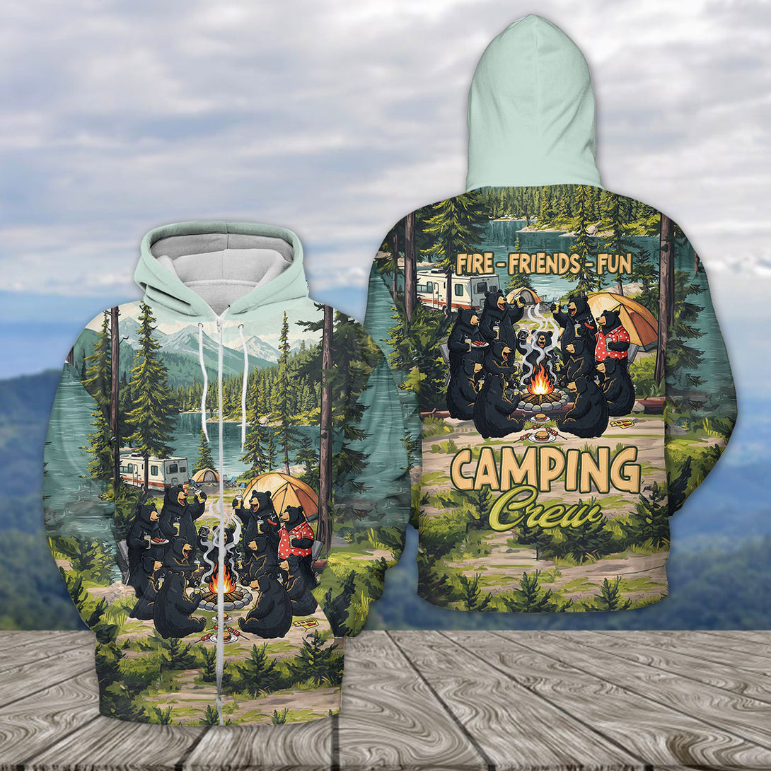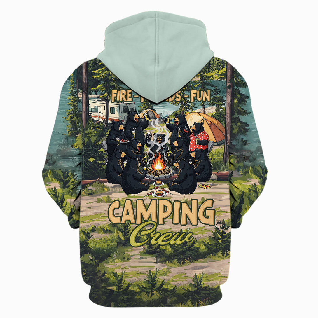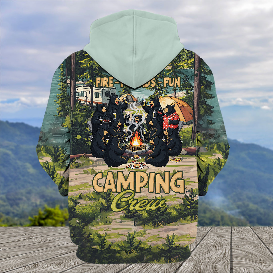Friends, Fires, Fun Camping Crew Black Bear All Over Print Shirt