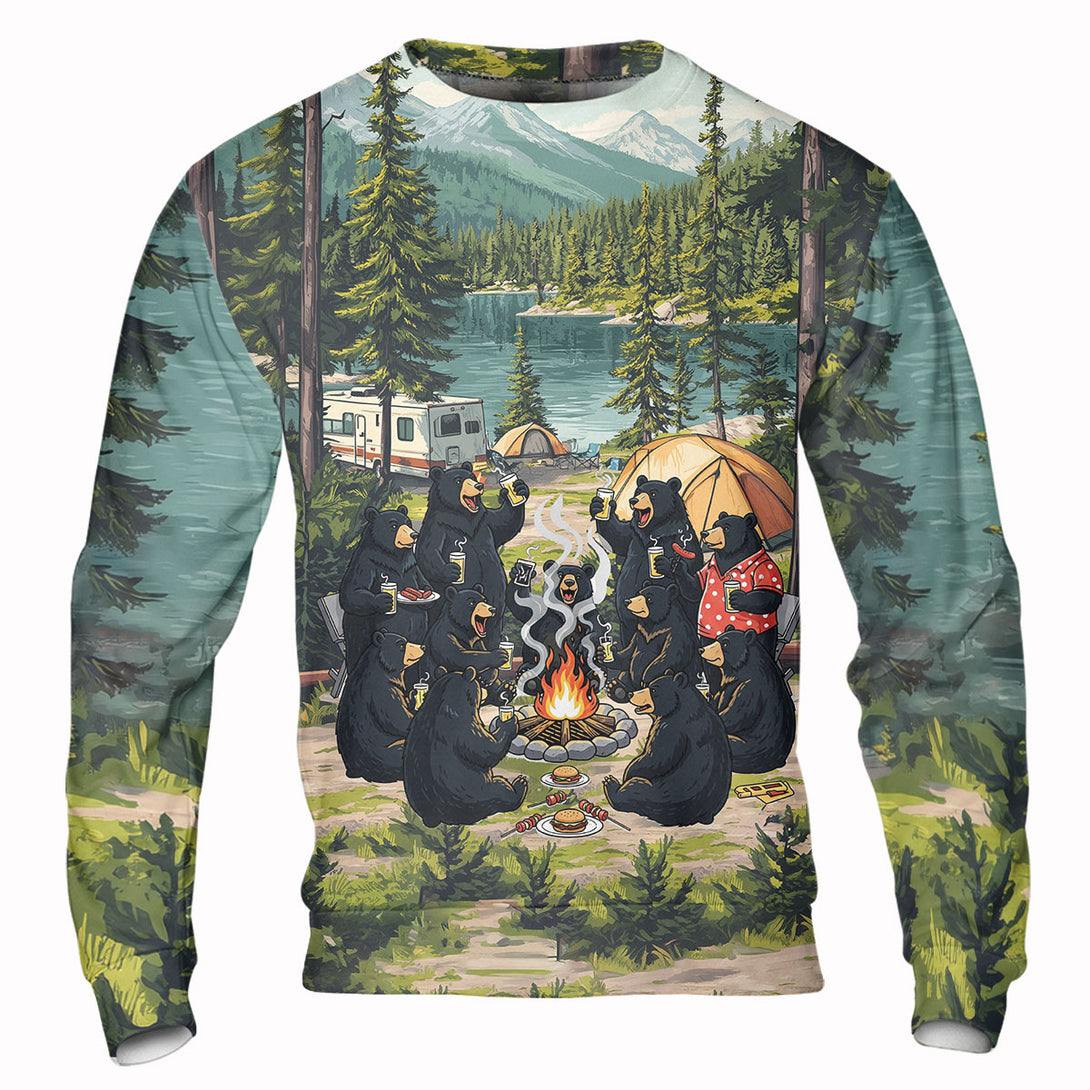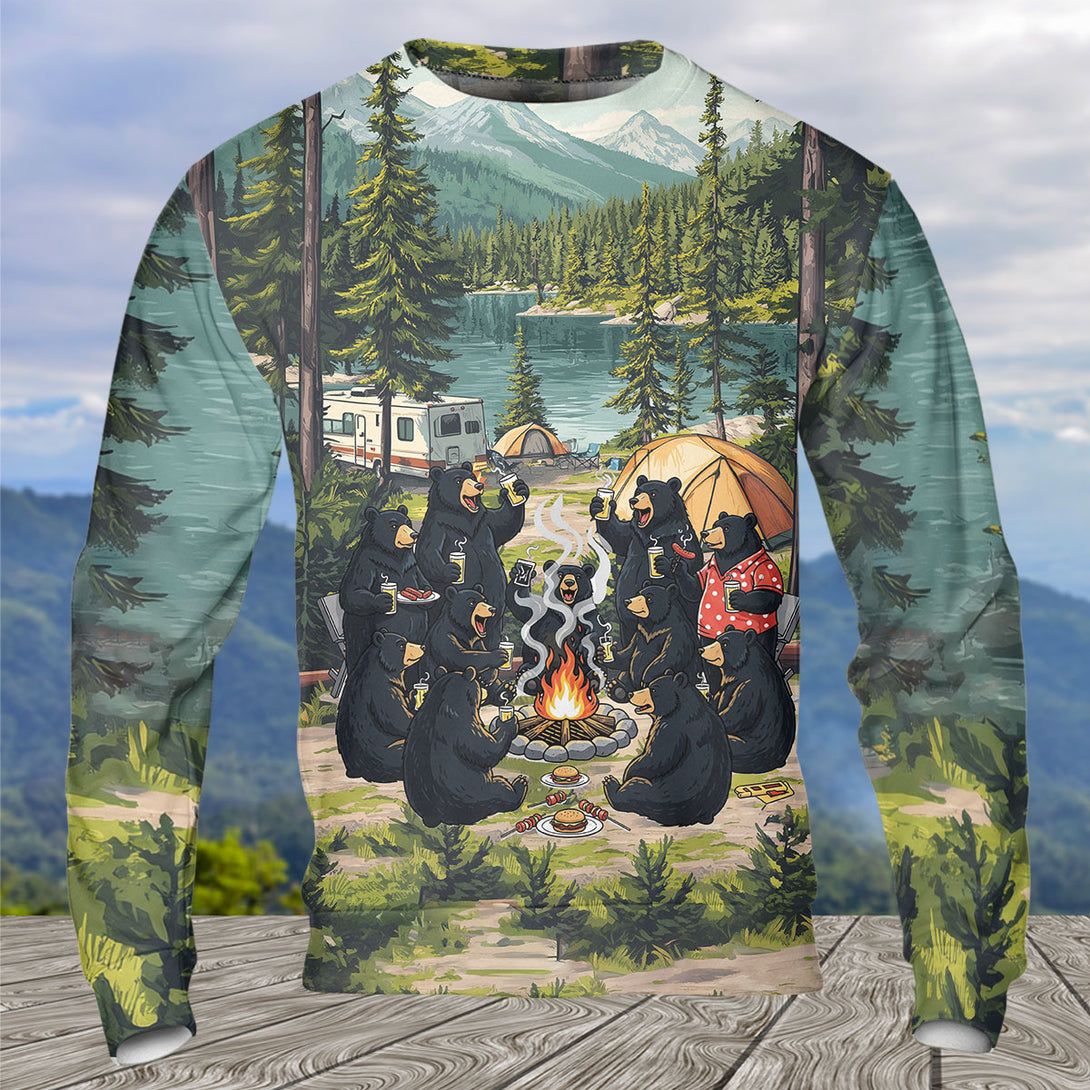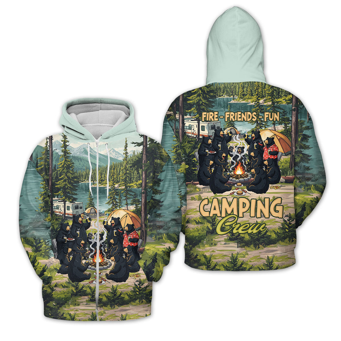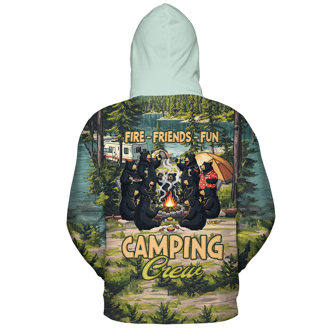 Friends, Fires, Fun Camping Crew Black Bear All Over Print Shirt