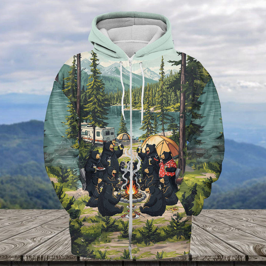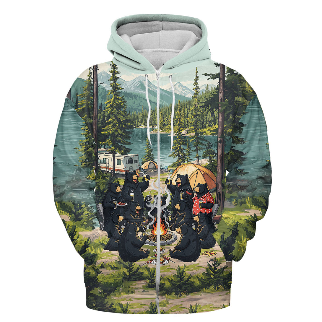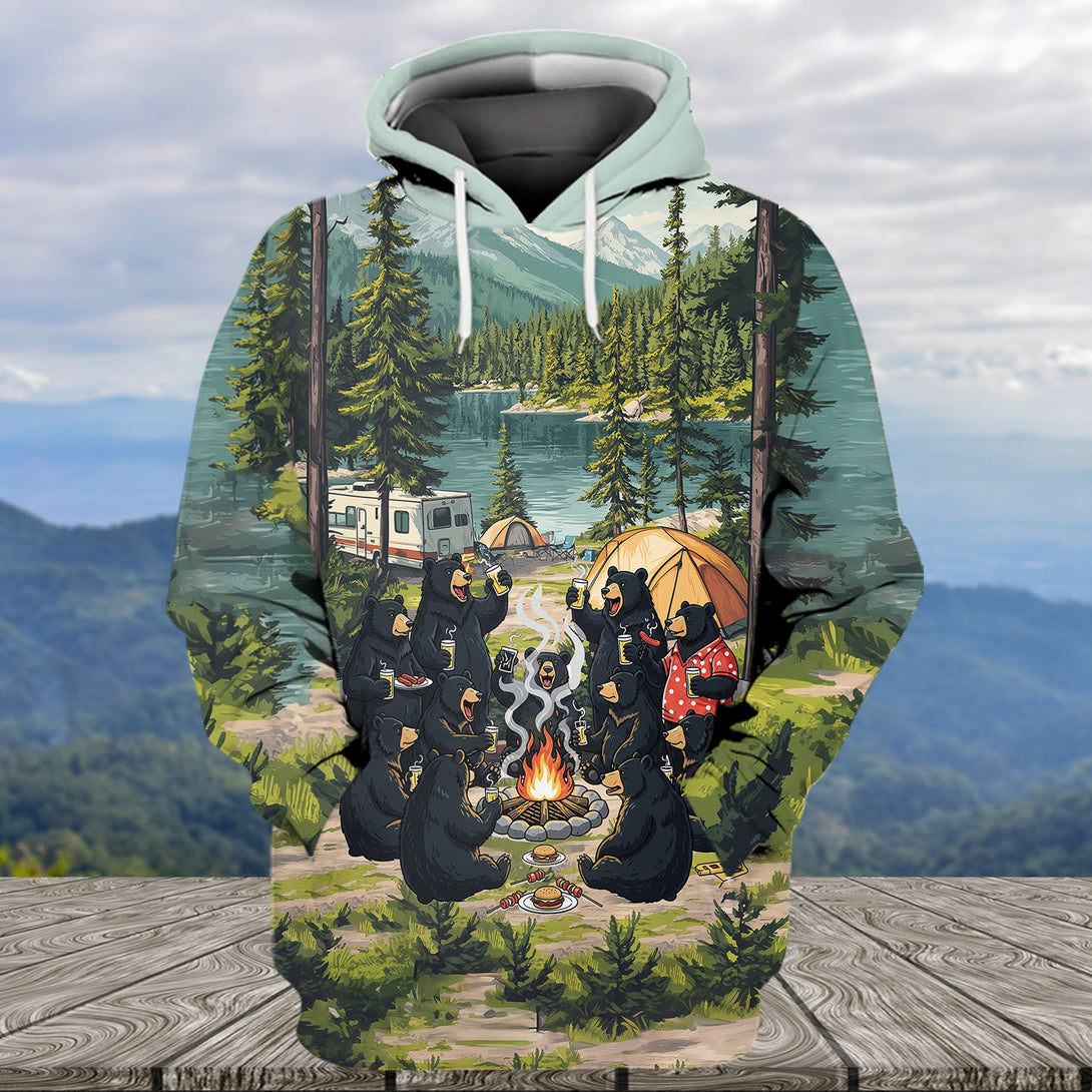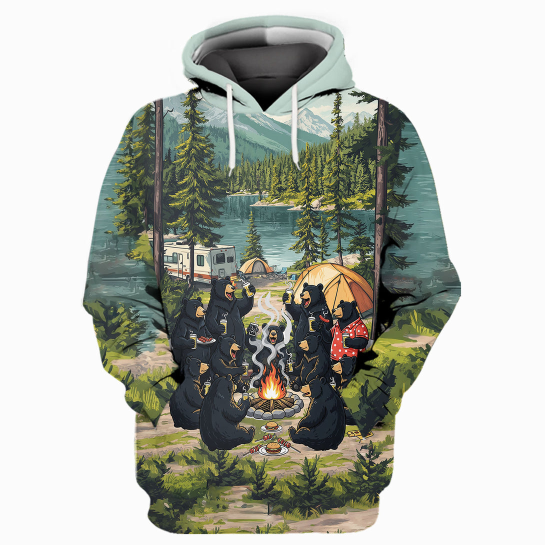 Friends, Fires, Fun Camping Crew Black Bear All Over Print Shirt