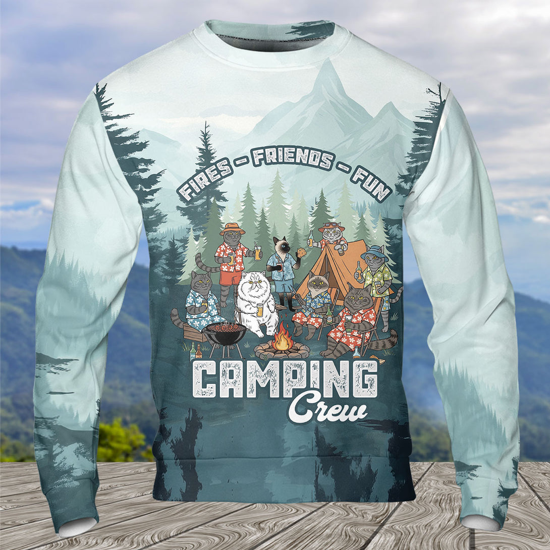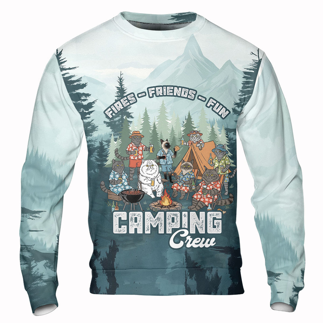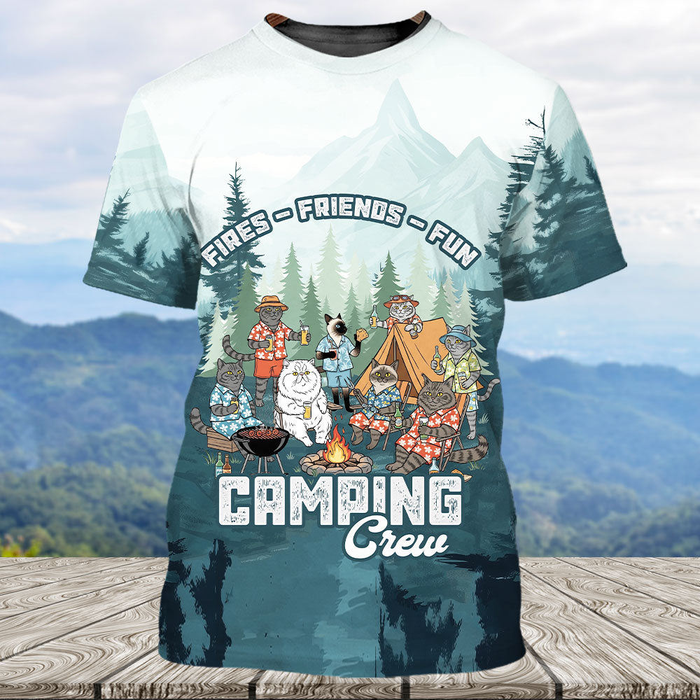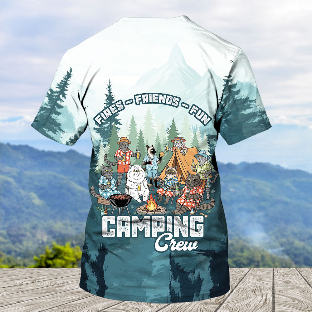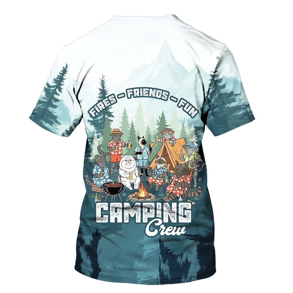 Friends, Fires, Fun Camping Crew Cats All Over Print Shirt
