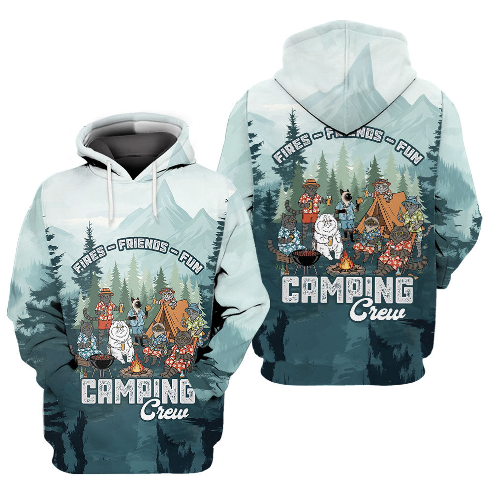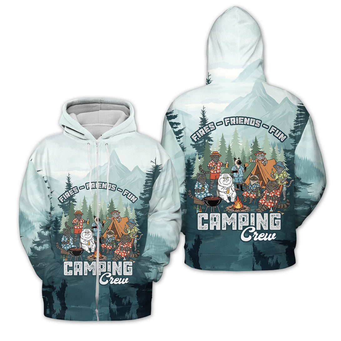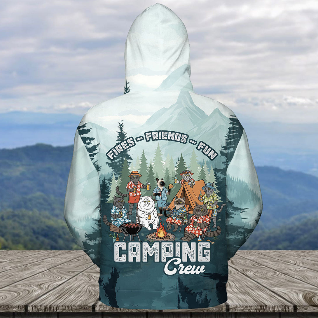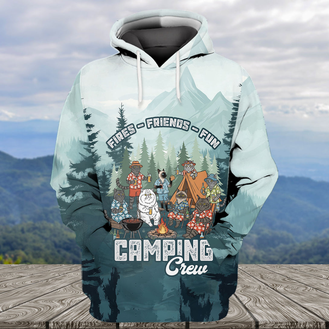 Friends, Fires, Fun Camping Crew Cats All Over Print Shirt