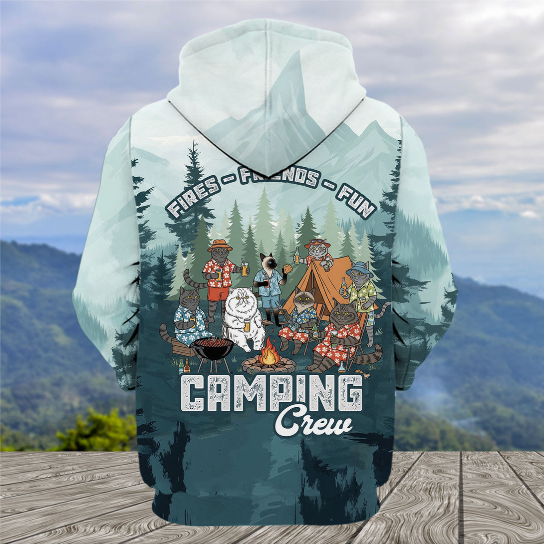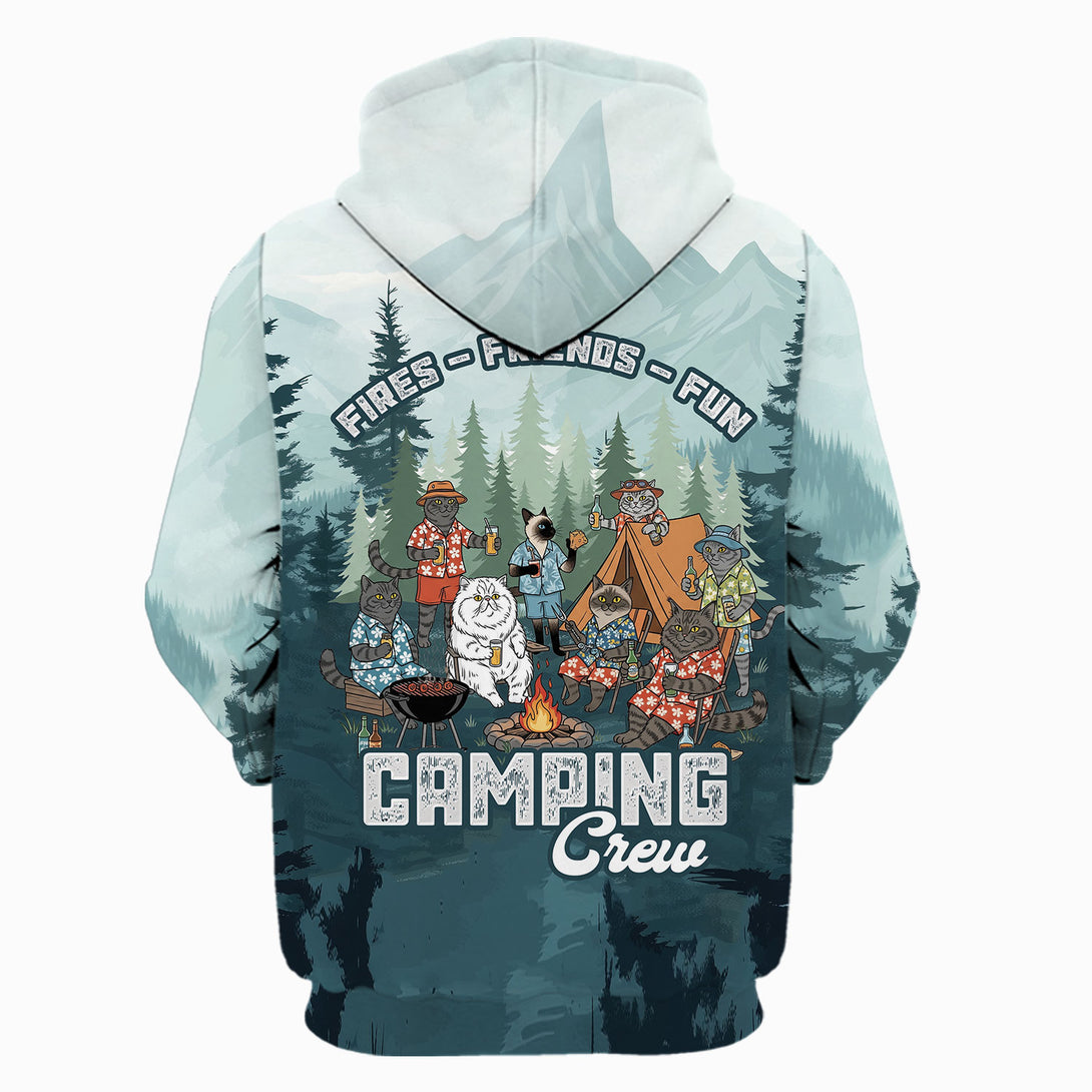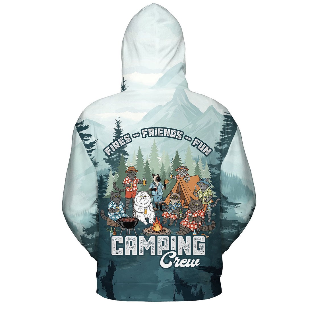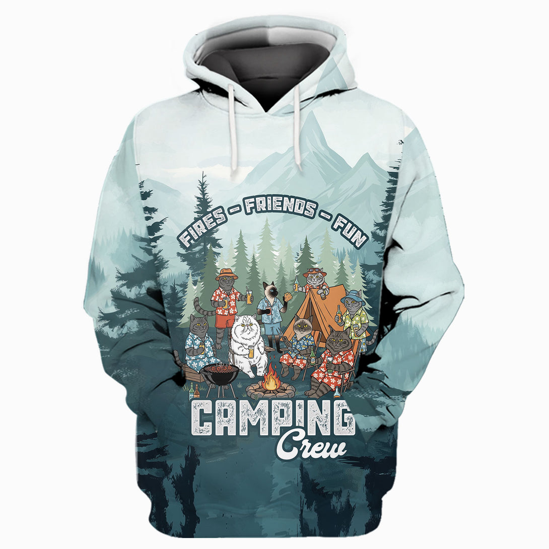 Friends, Fires, Fun Camping Crew Cats All Over Print Shirt