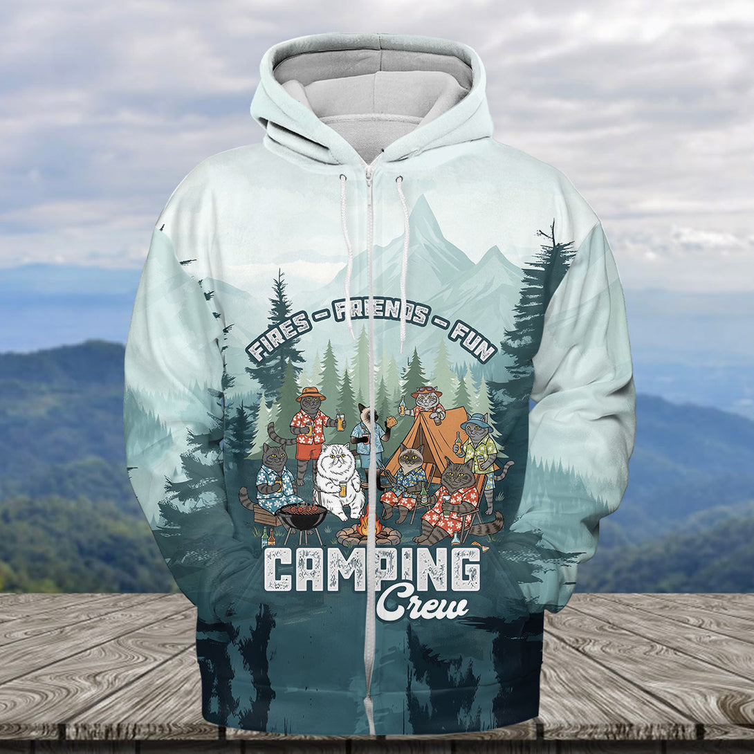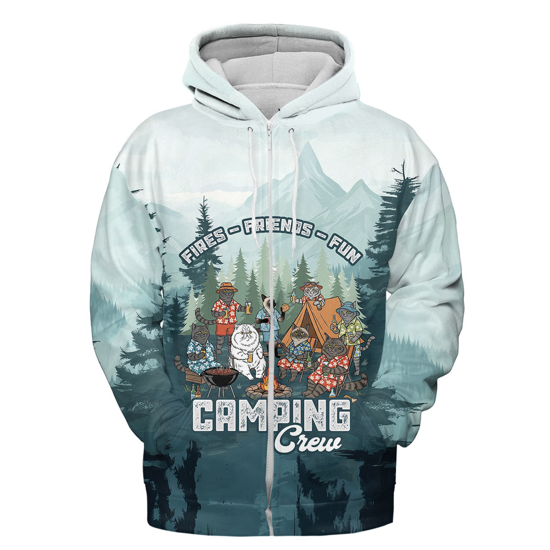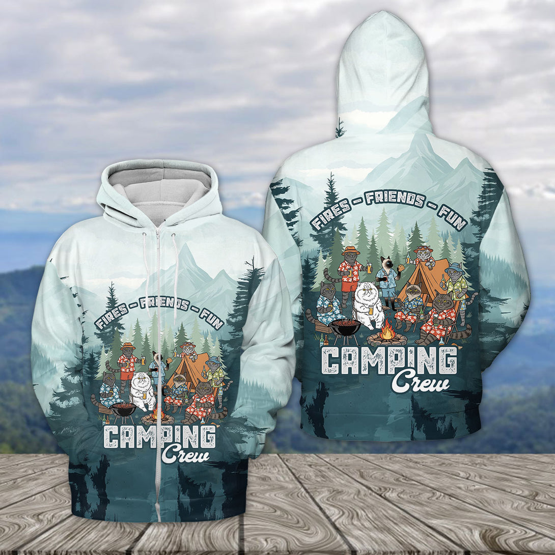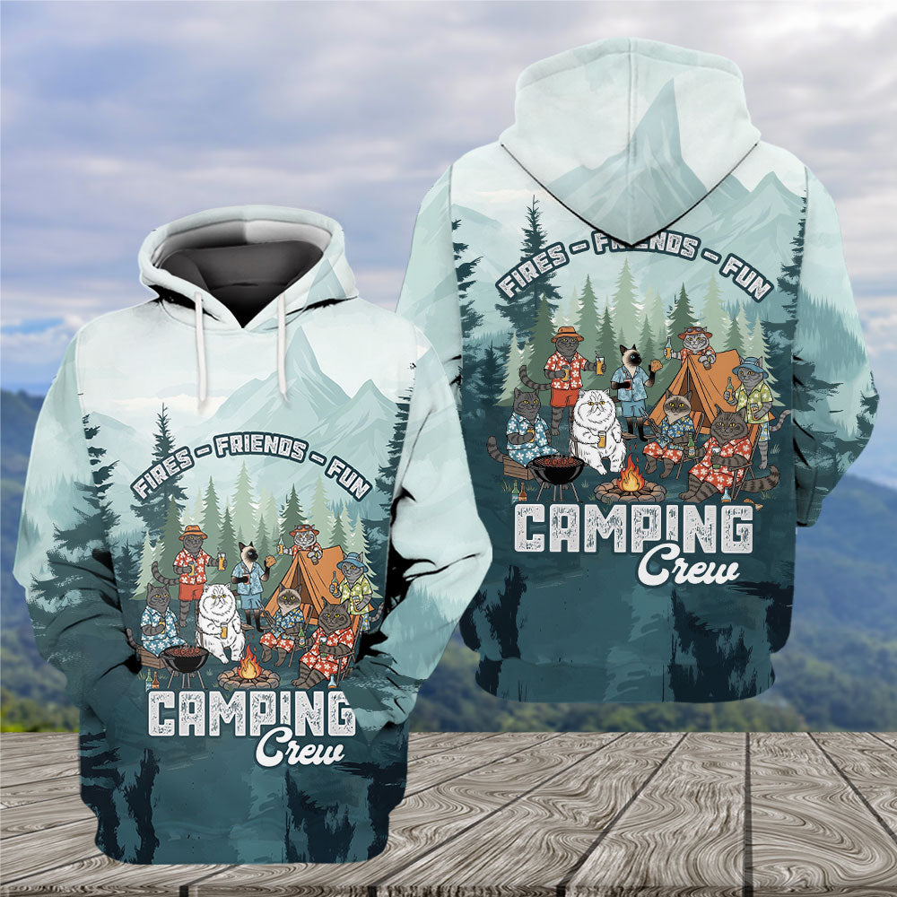 Friends, Fires, Fun Camping Crew Cats All Over Print Shirt