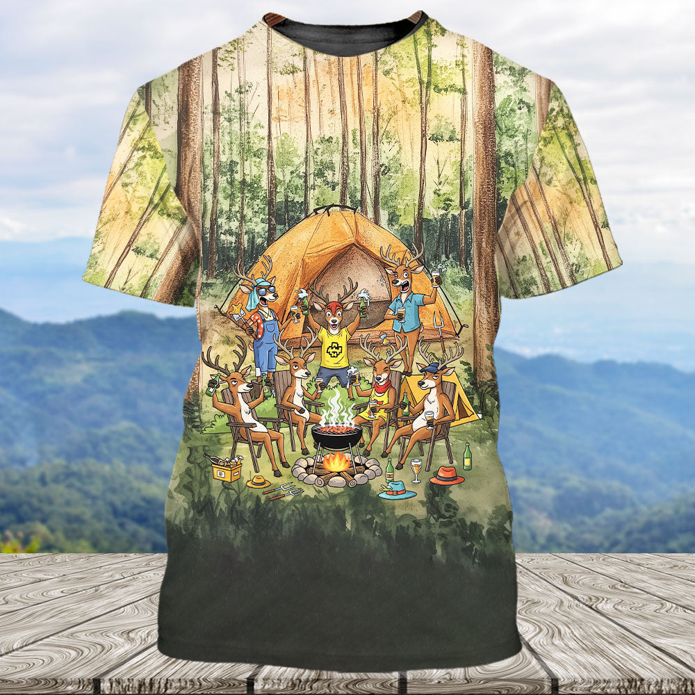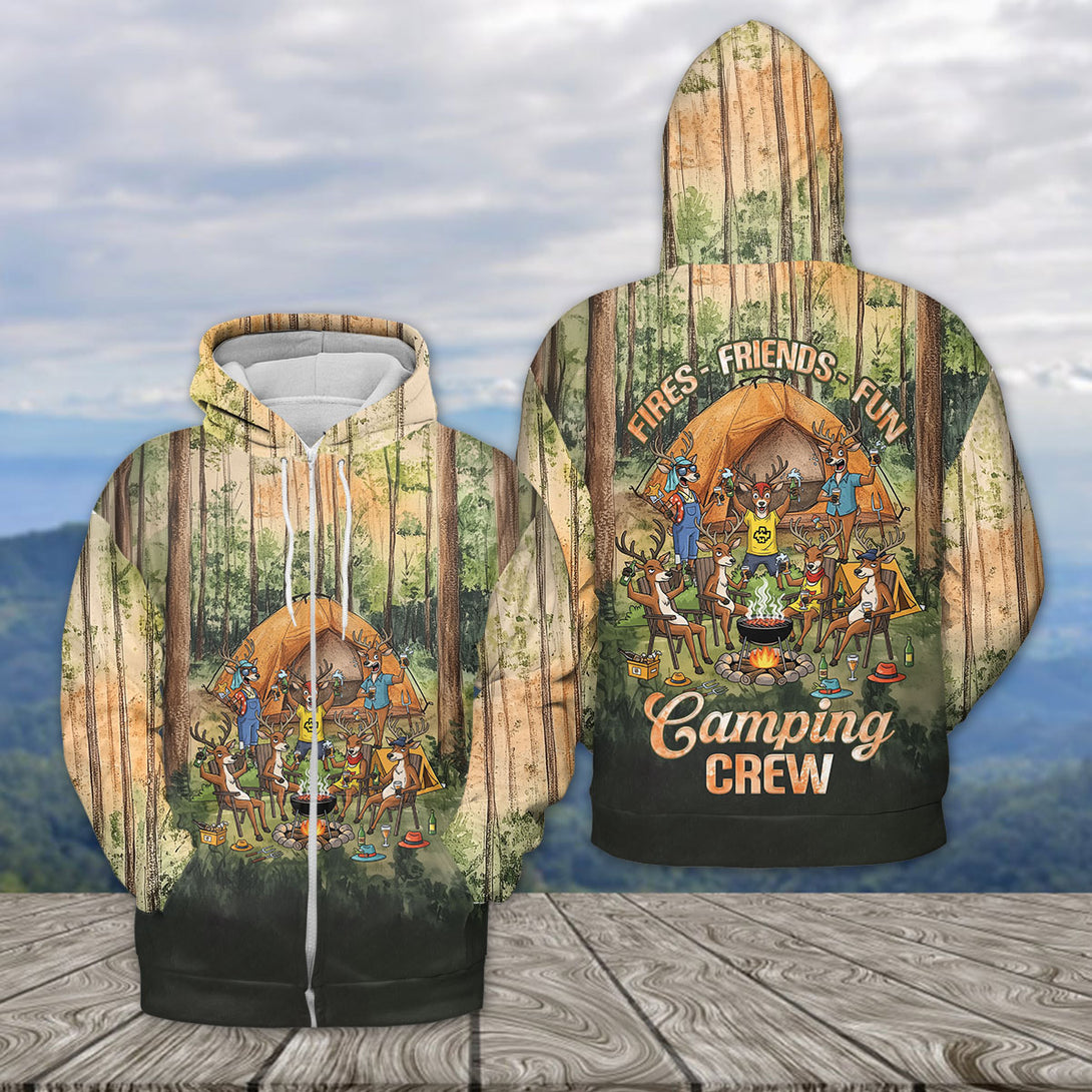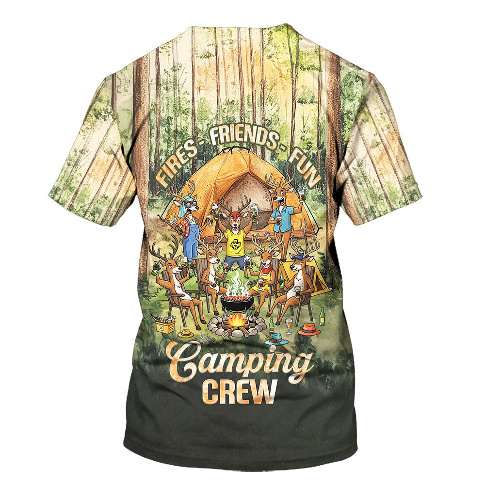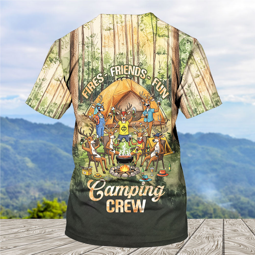Friends, Fires, Fun Camping Crew Deer All Over Print Shirt