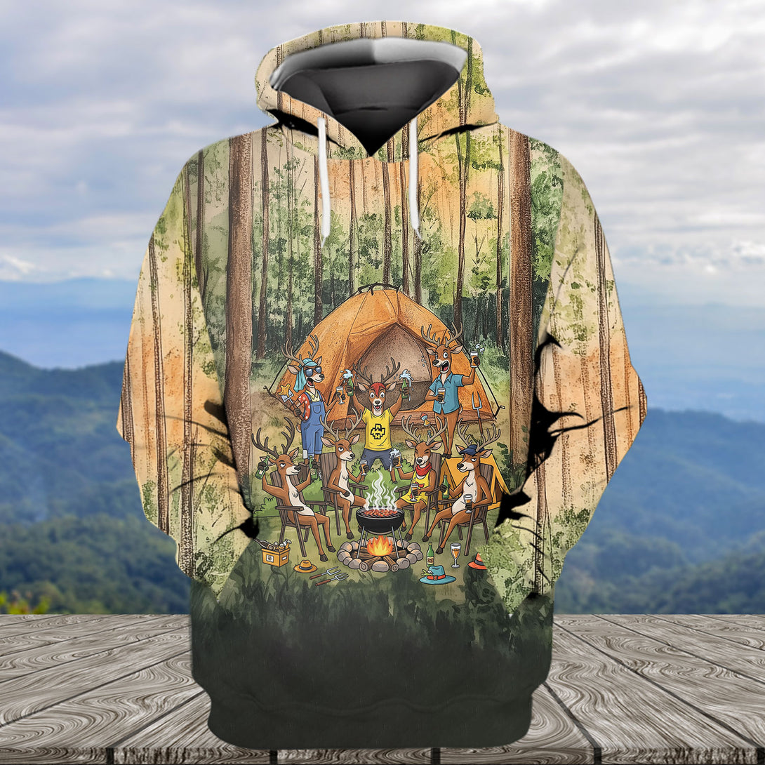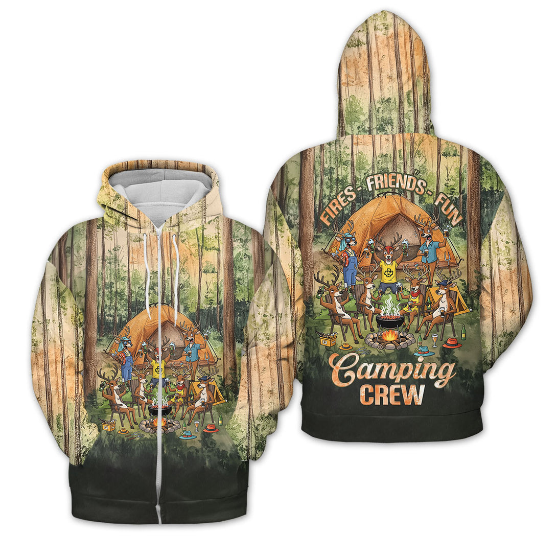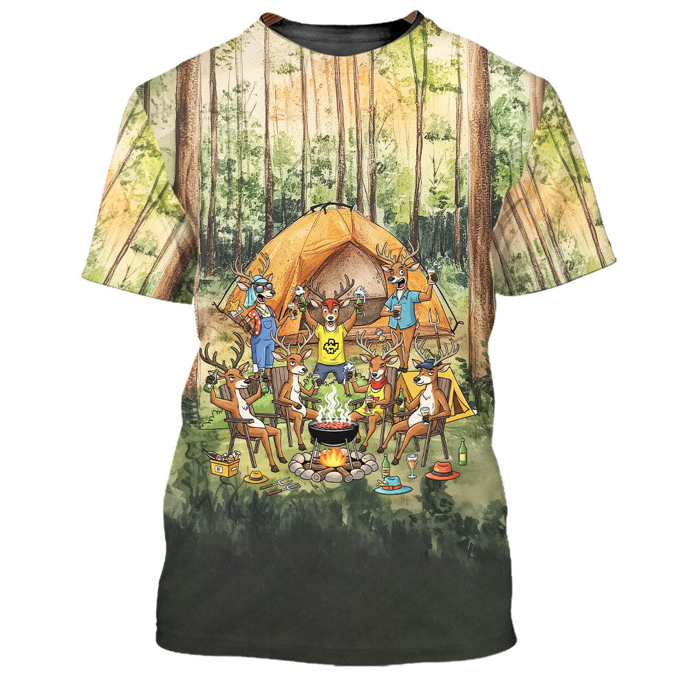 Friends, Fires, Fun Camping Crew Deer All Over Print Shirt