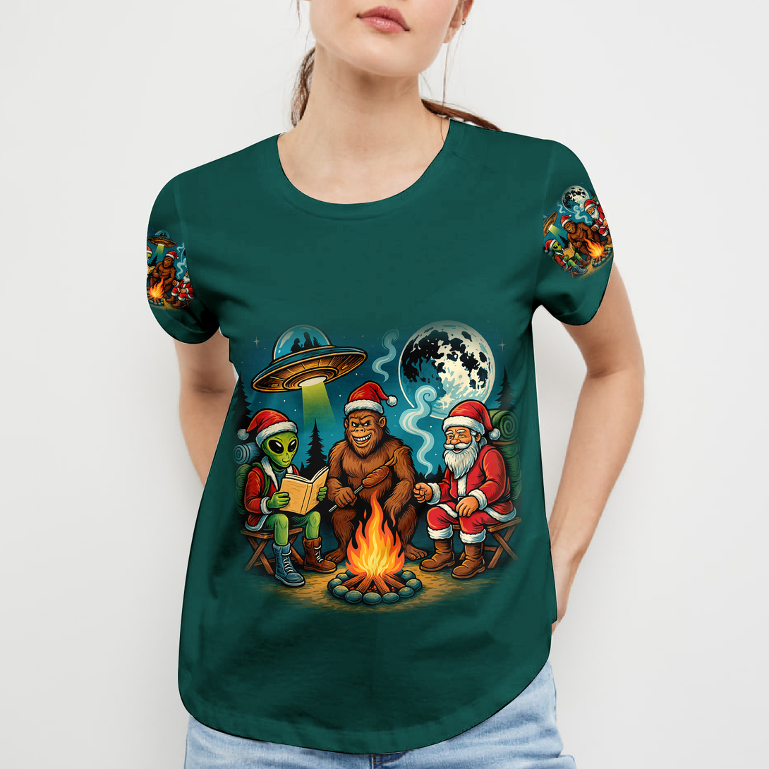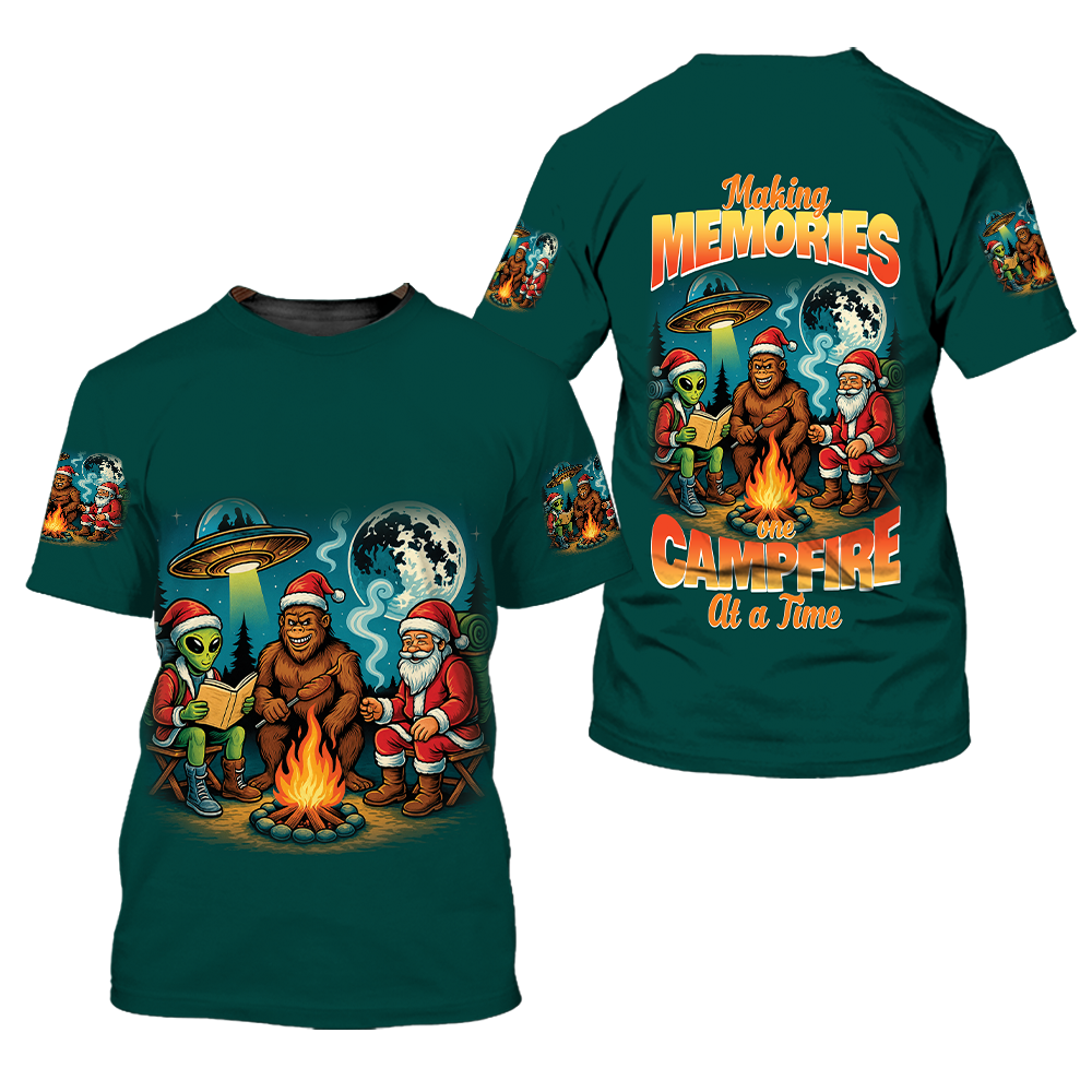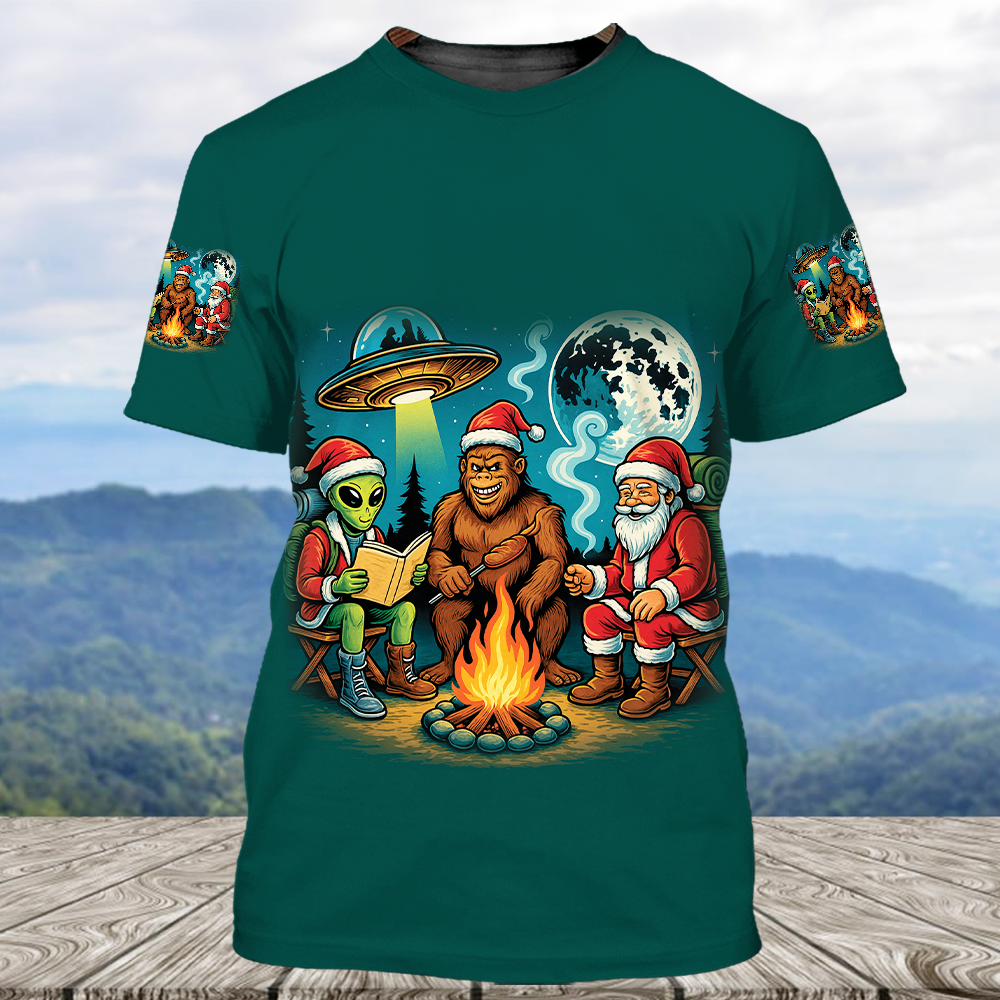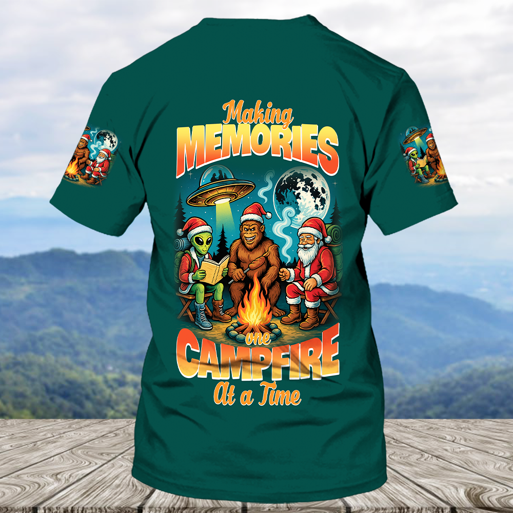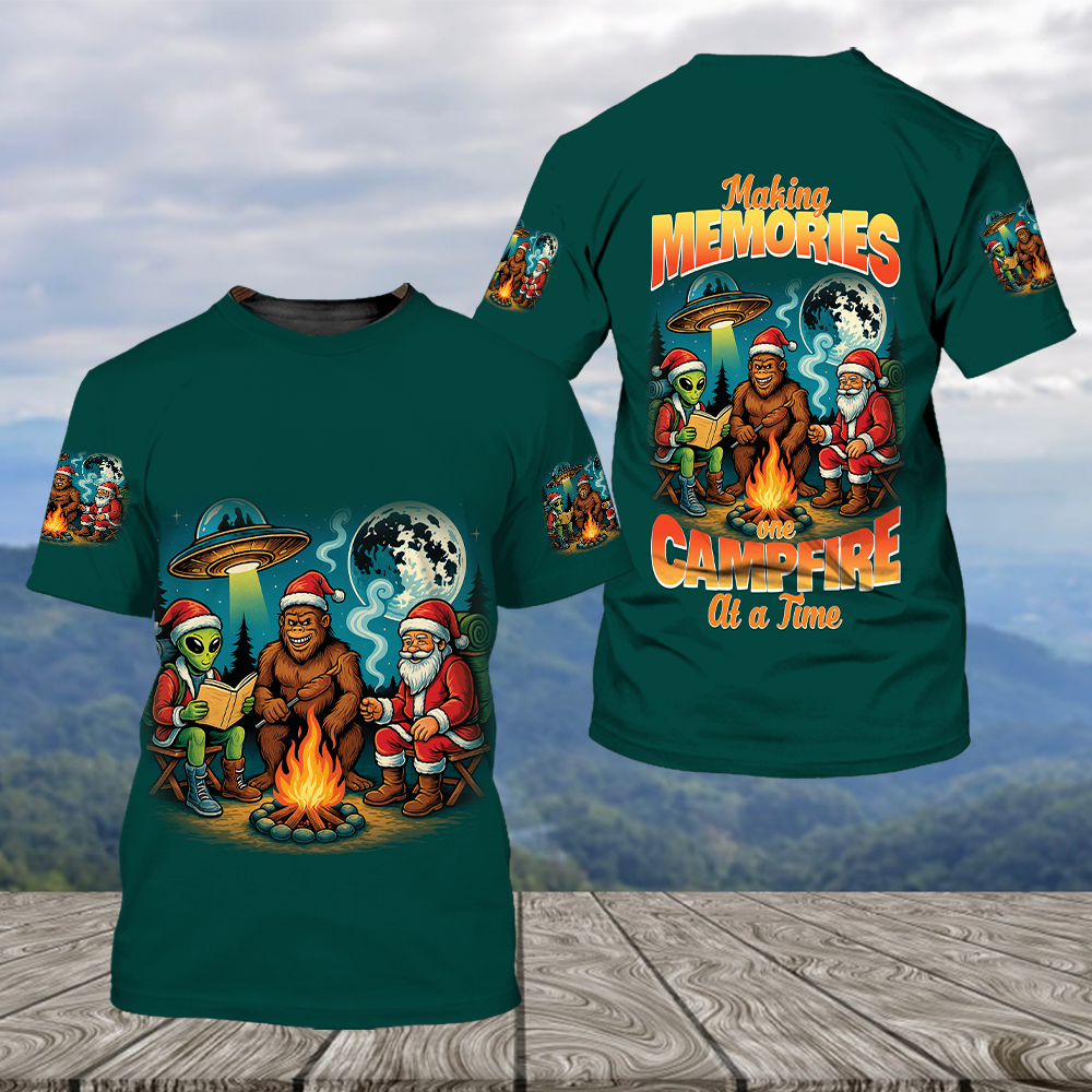Funny Bigfoot Alien And Santa Making Memories One Campfire At A Time All Over Print Shirt