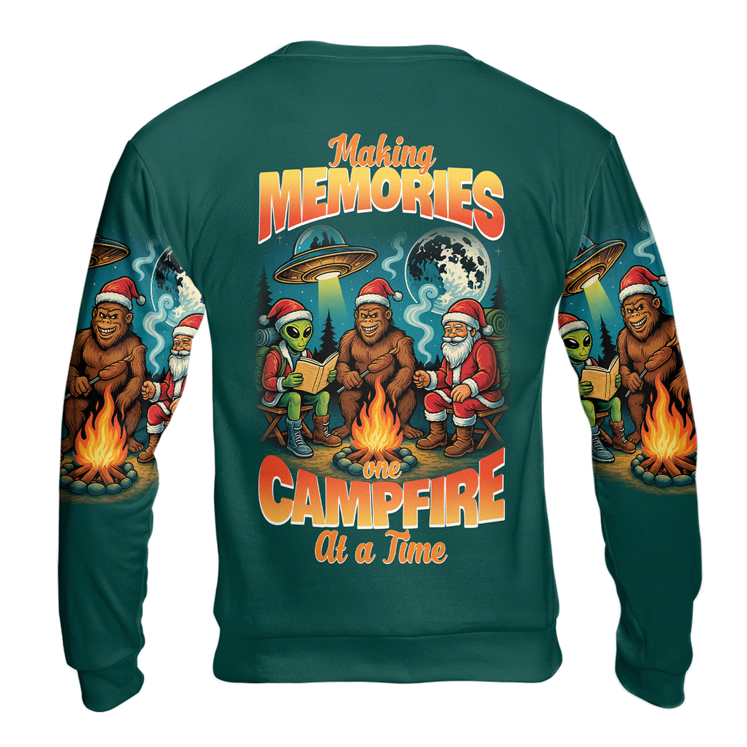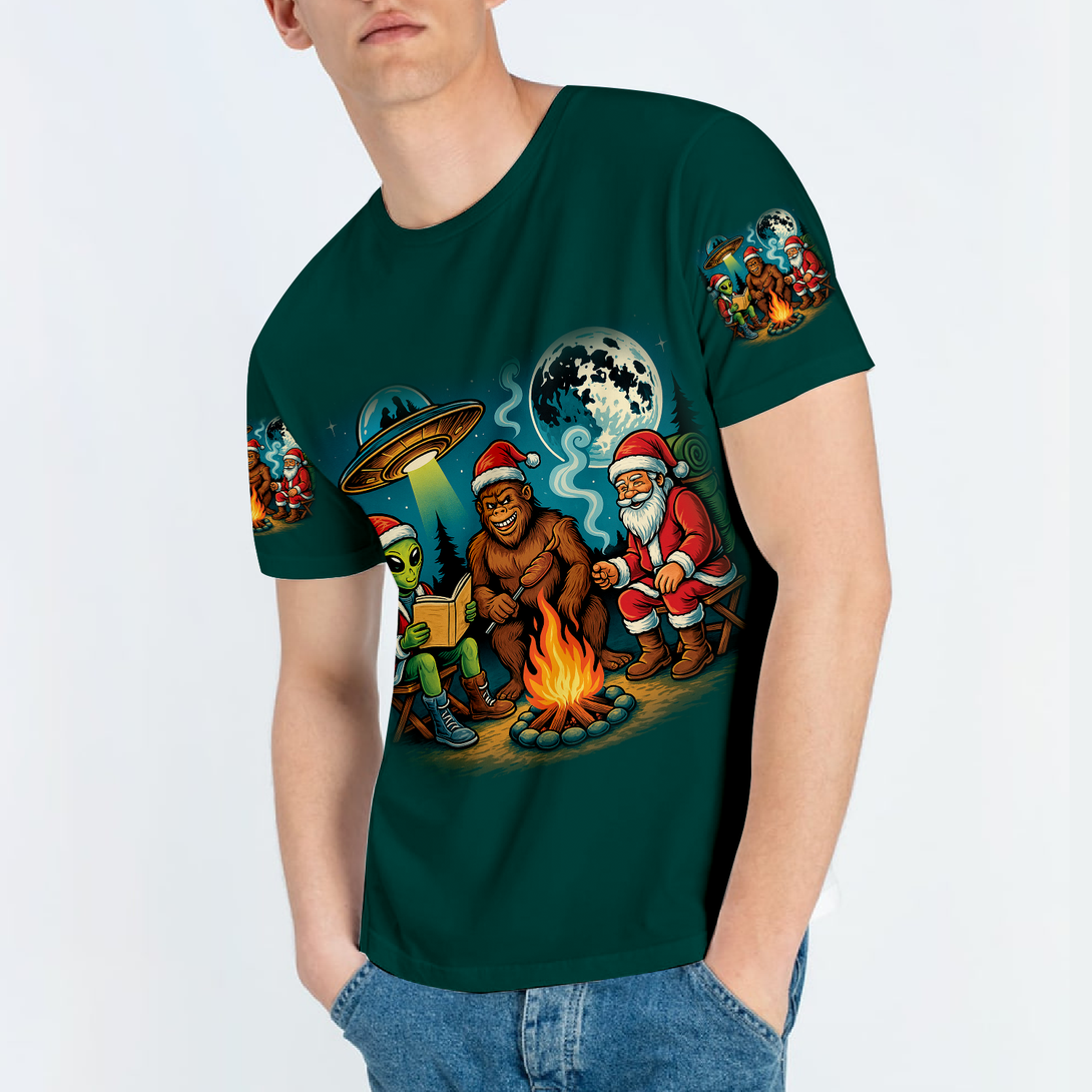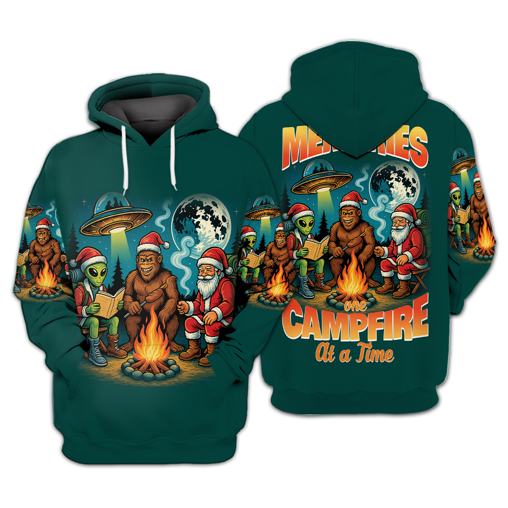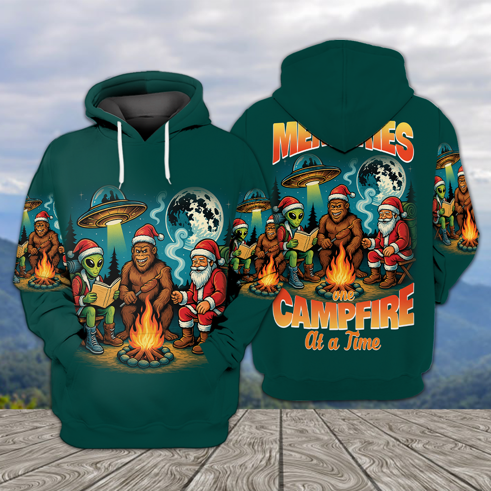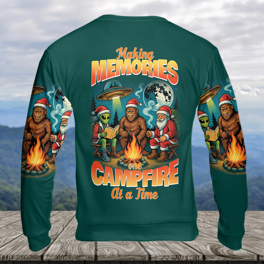 Funny Bigfoot Alien And Santa Making Memories One Campfire At A Time All Over Print Shirt