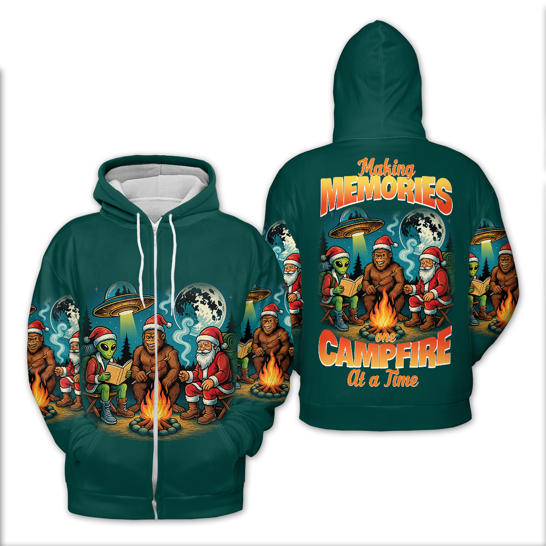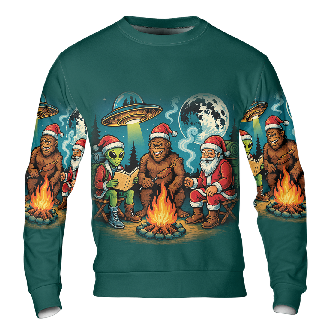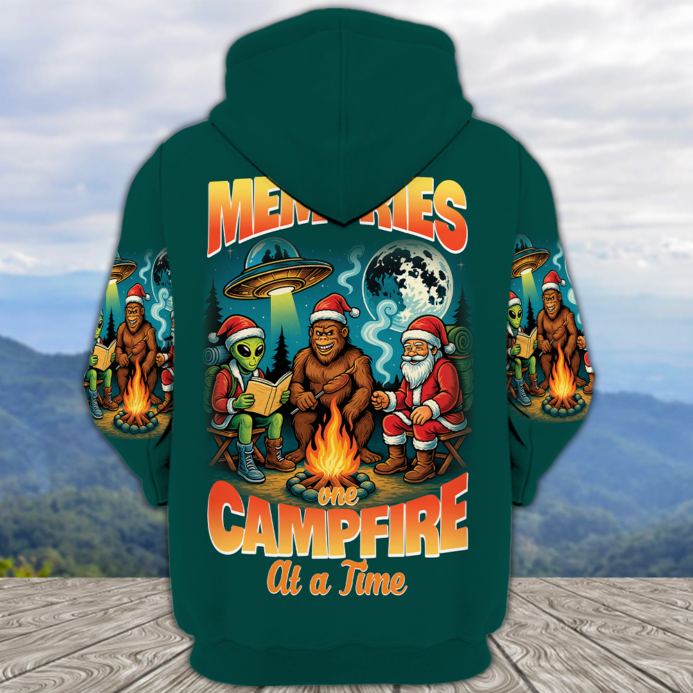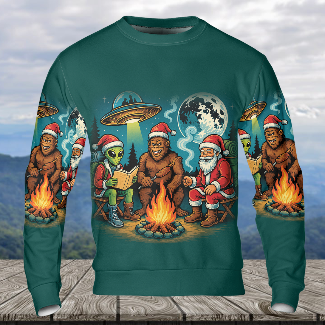 Funny Bigfoot Alien And Santa Making Memories One Campfire At A Time All Over Print Shirt