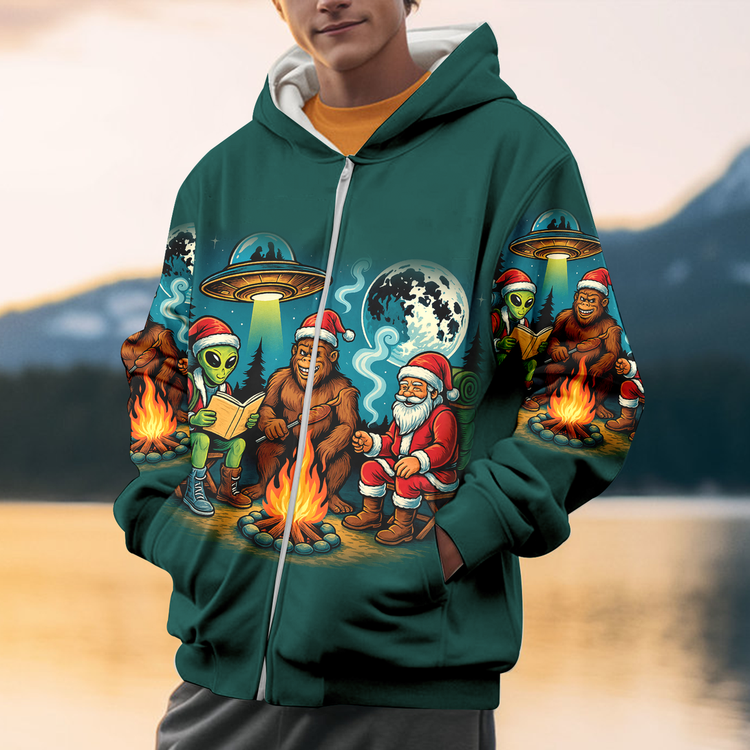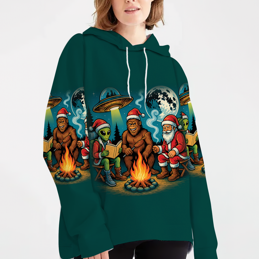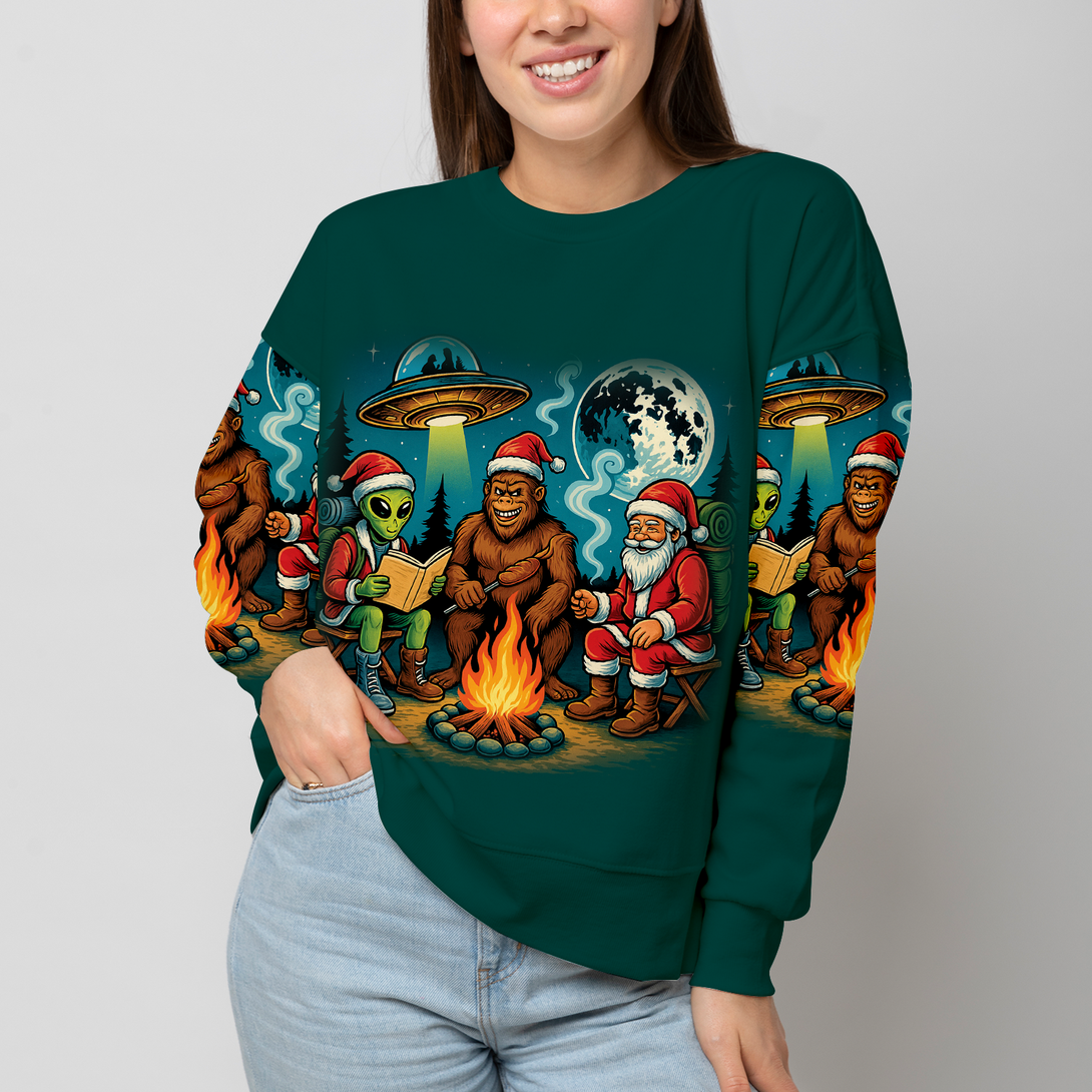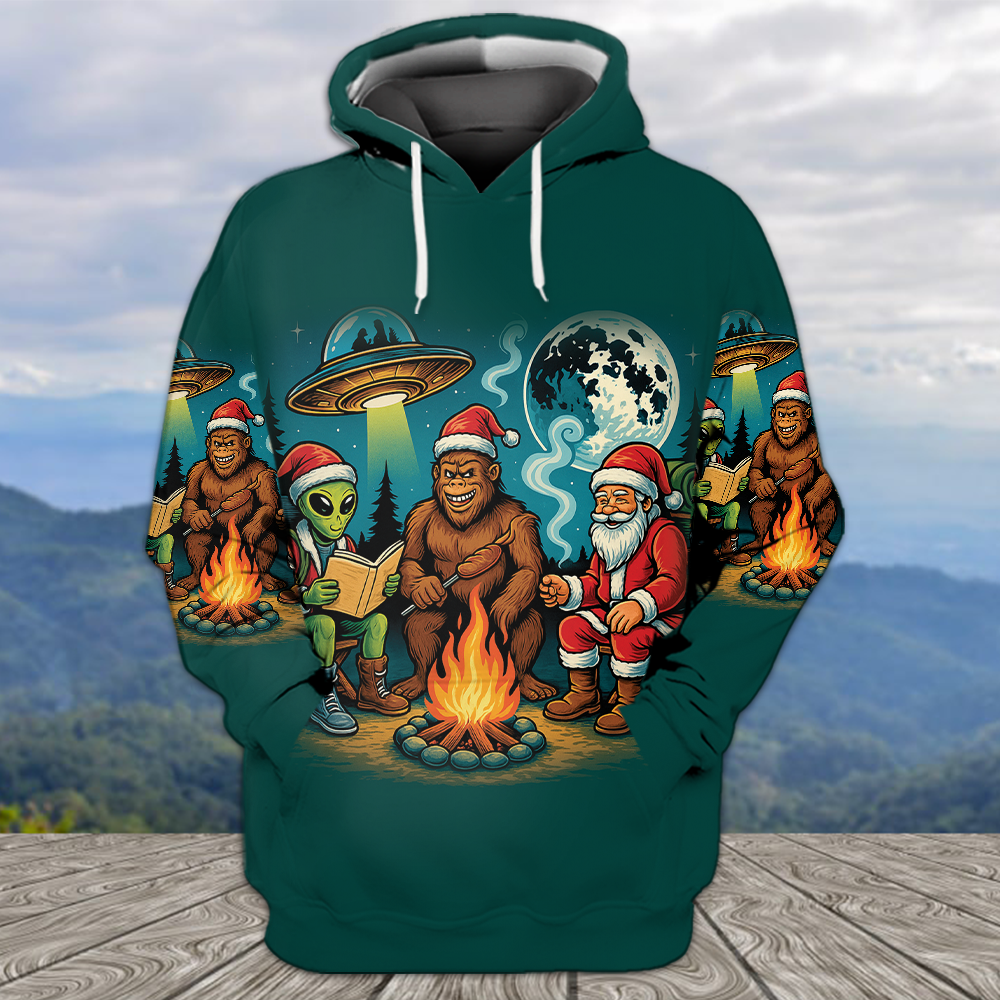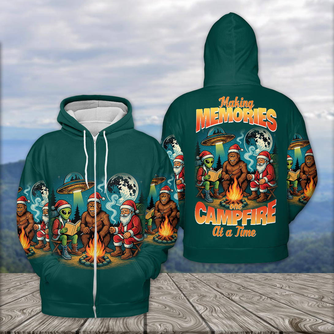 Funny Bigfoot Alien And Santa Making Memories One Campfire At A Time All Over Print Shirt