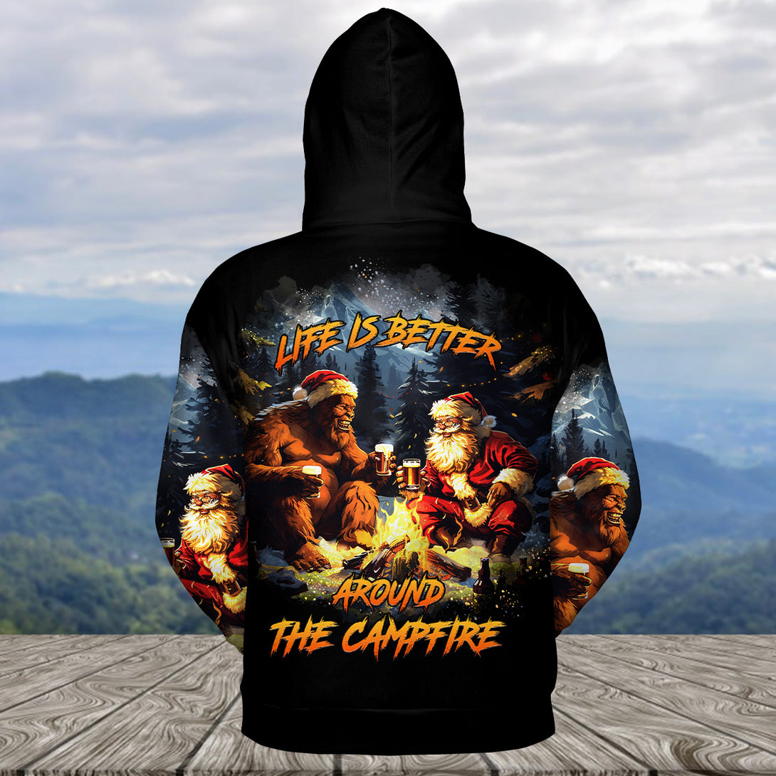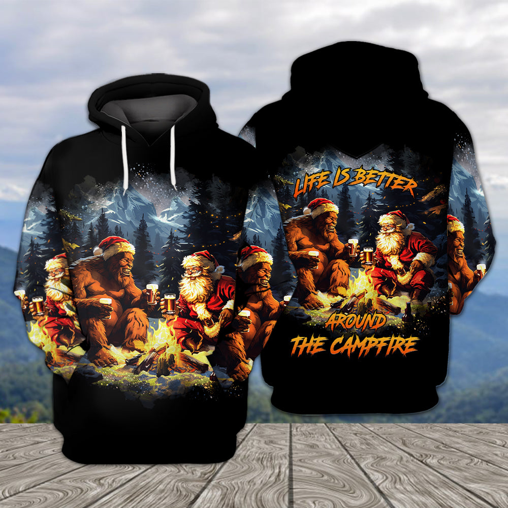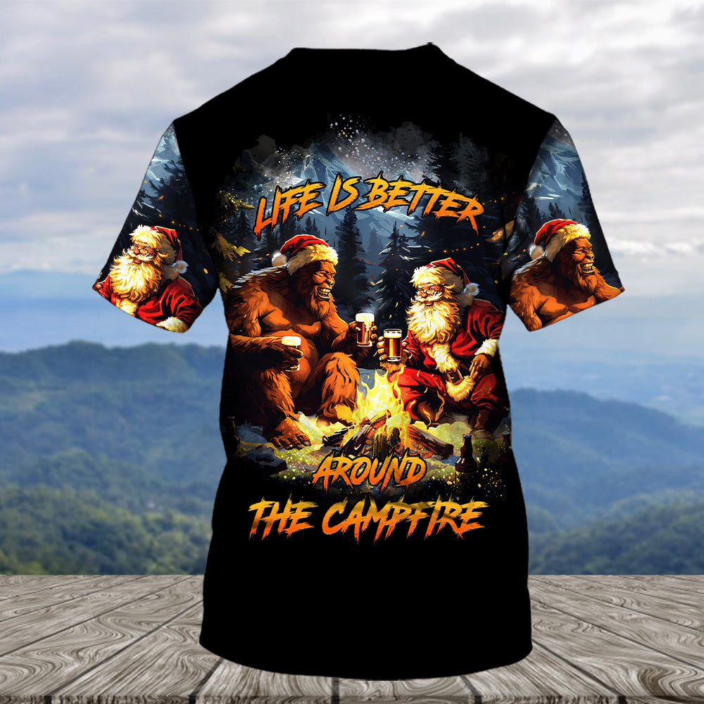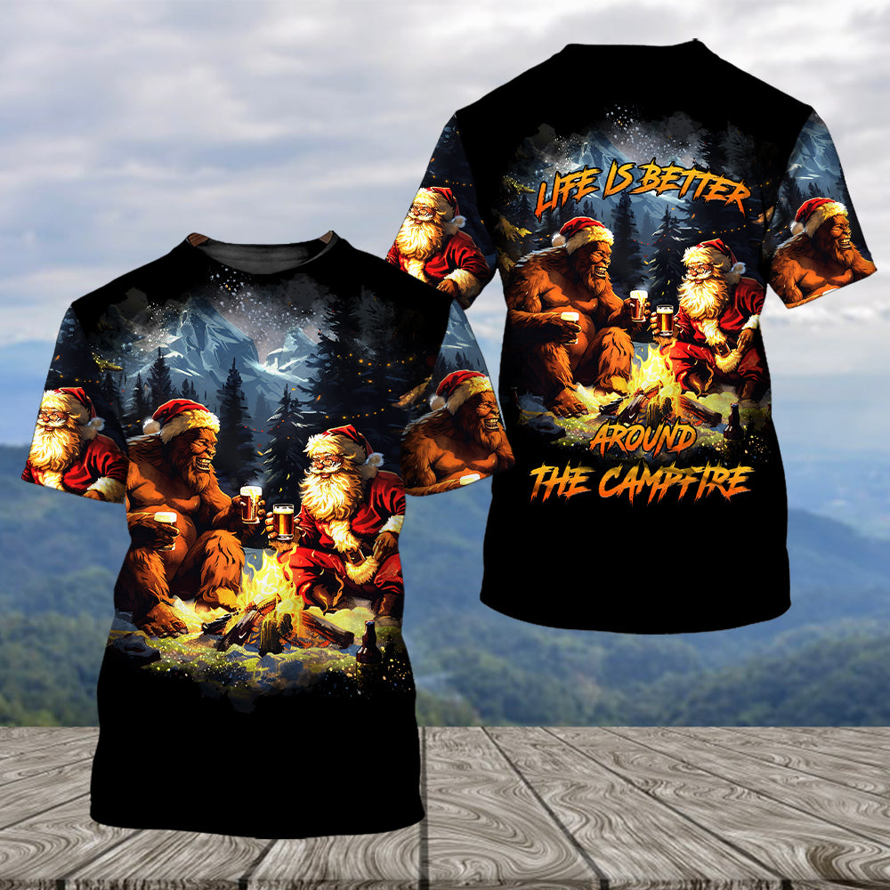 Funny Bigfoot & Santa Life Is Better Around The Campfire All Over Print Shirt