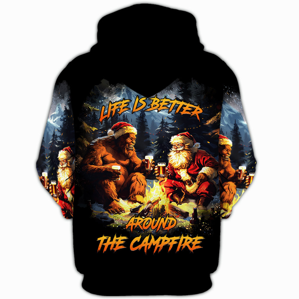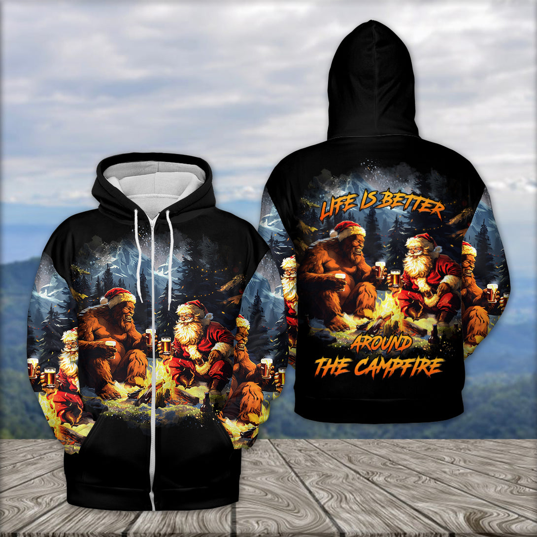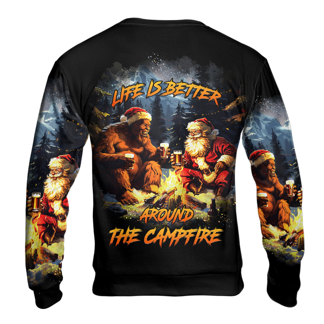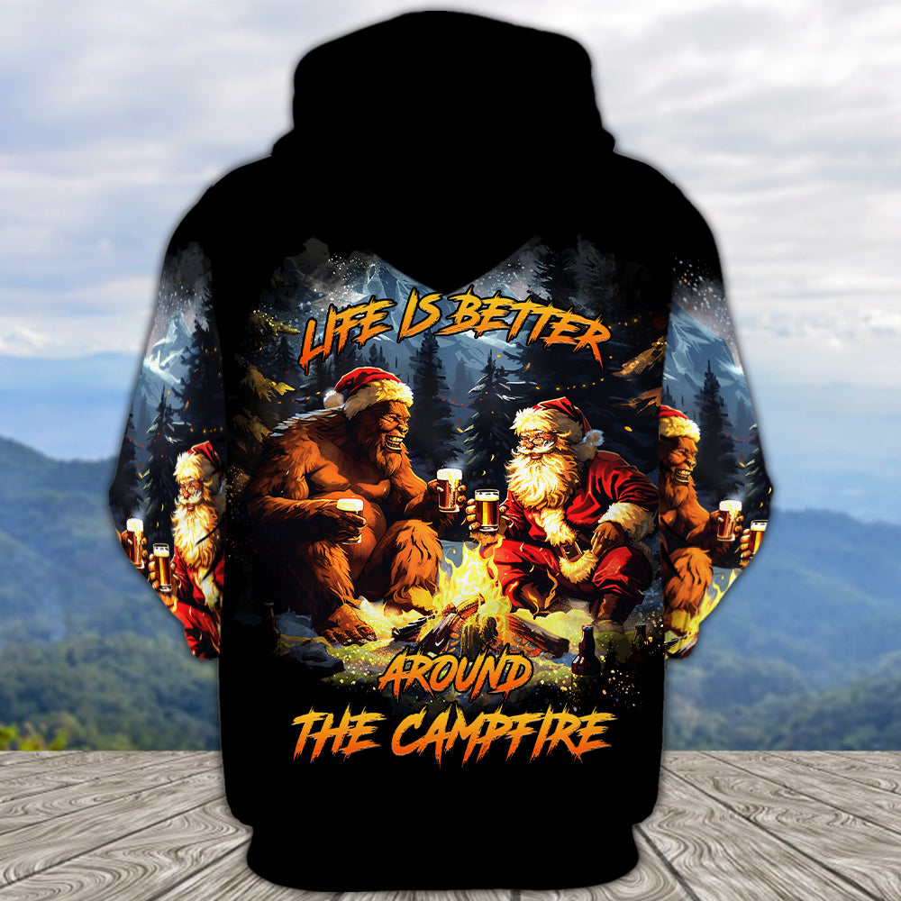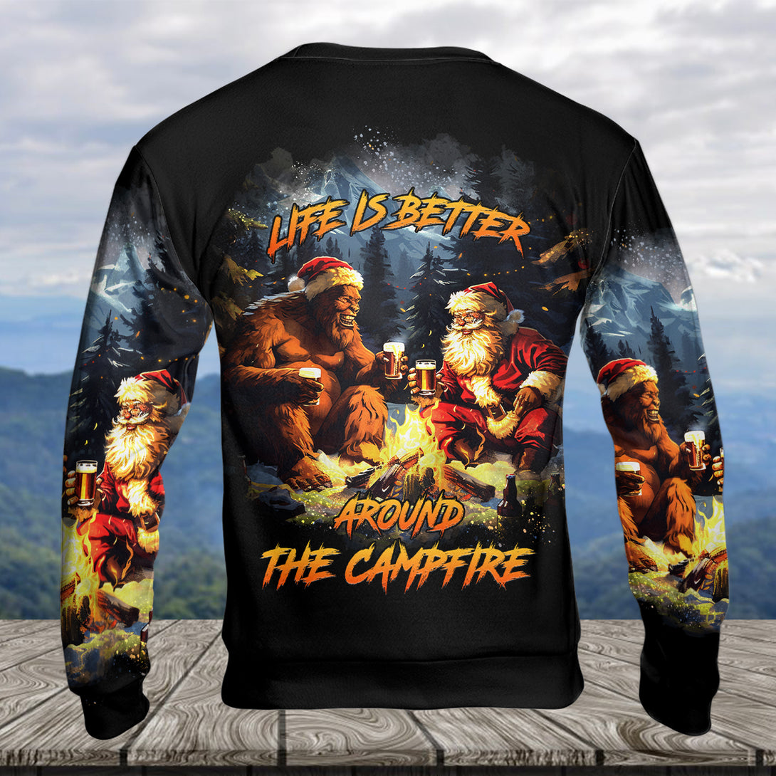 Funny Bigfoot & Santa Life Is Better Around The Campfire All Over Print Shirt
