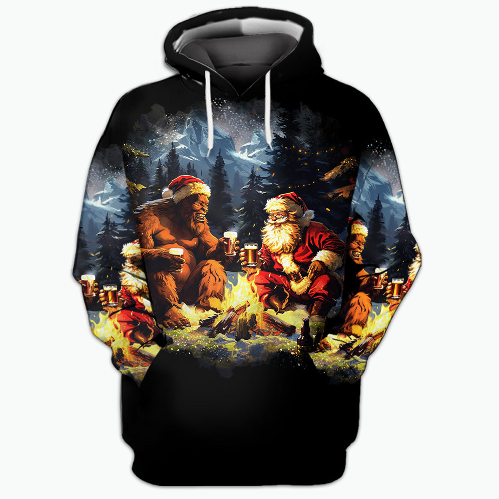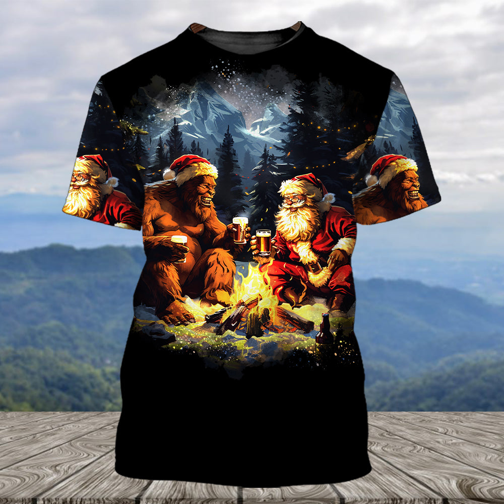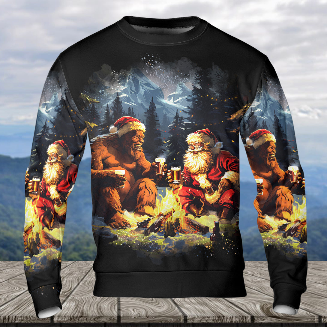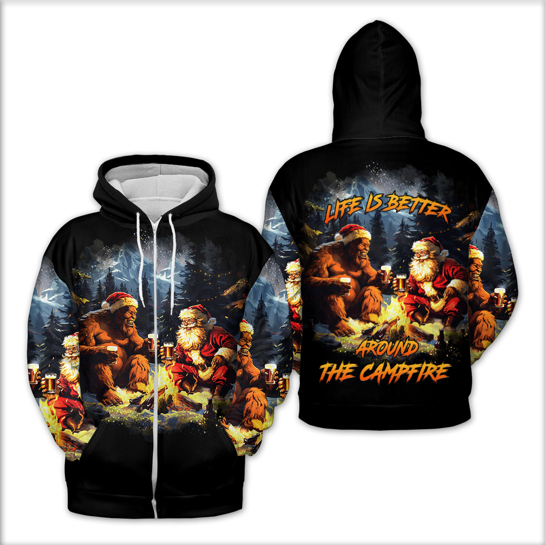 Funny Bigfoot & Santa Life Is Better Around The Campfire All Over Print Shirt