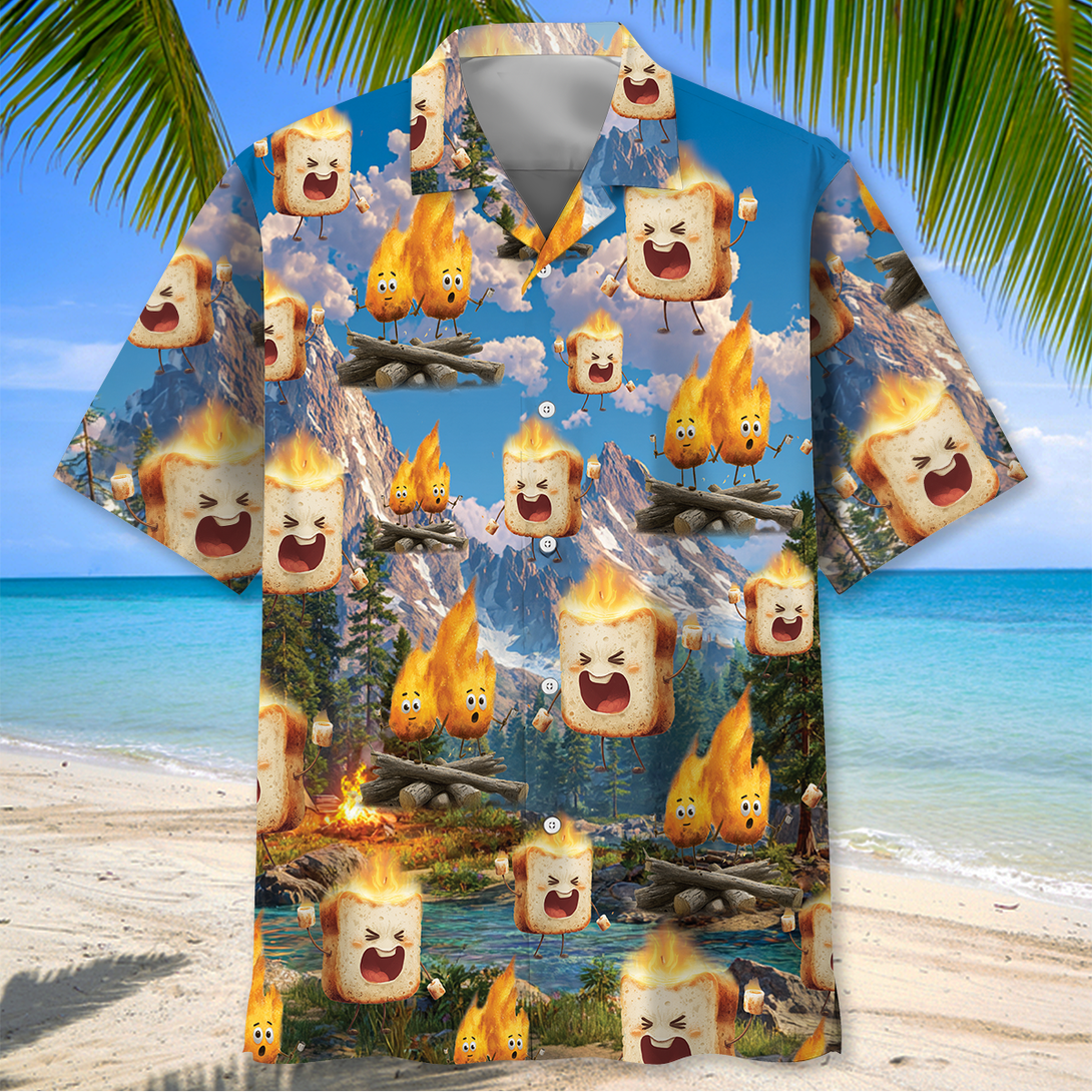 Funny Burning Marshmallow Camping Hawaiian Shirt