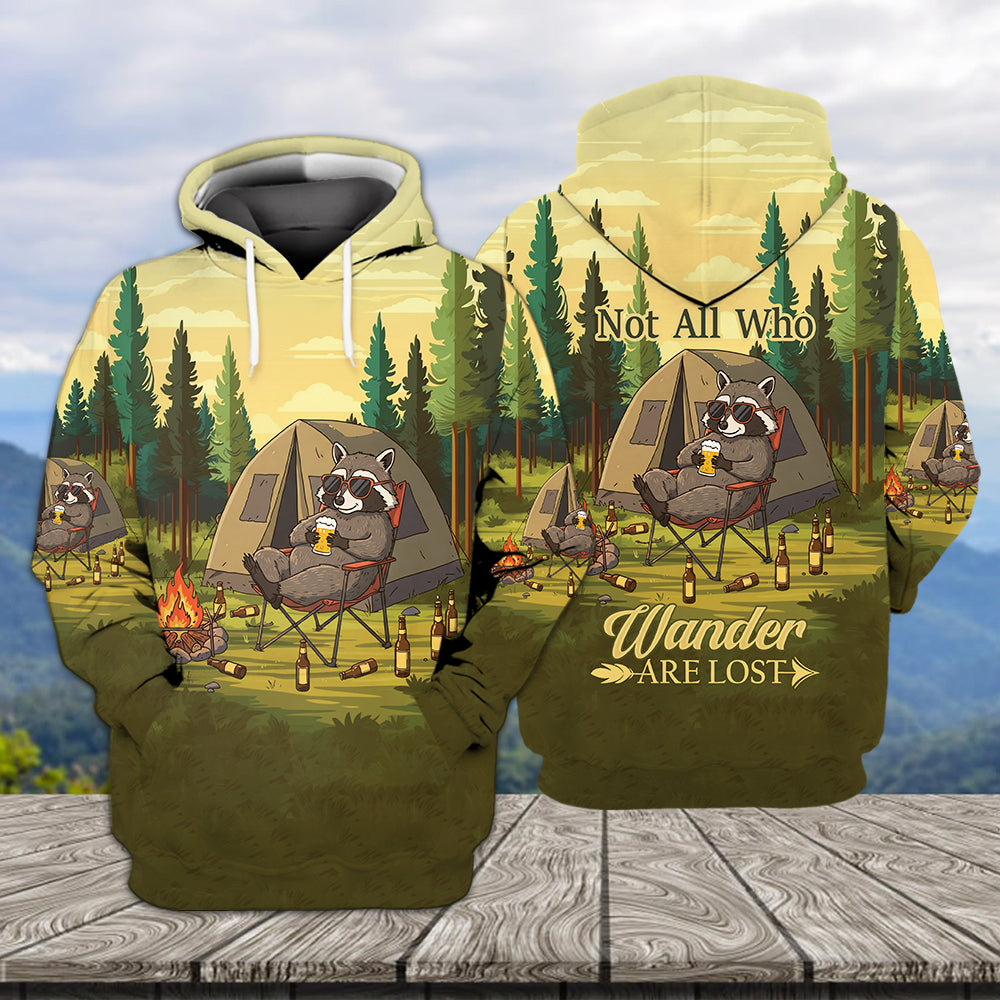 Funny Raccoon Drinking Not All Who Wander Are Lost All Over Print
