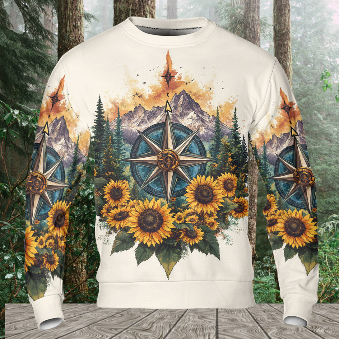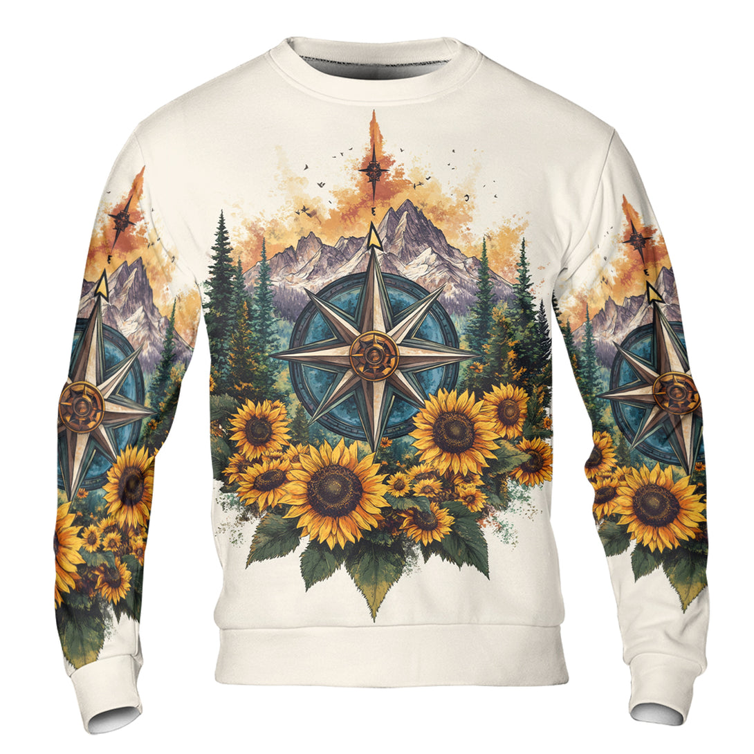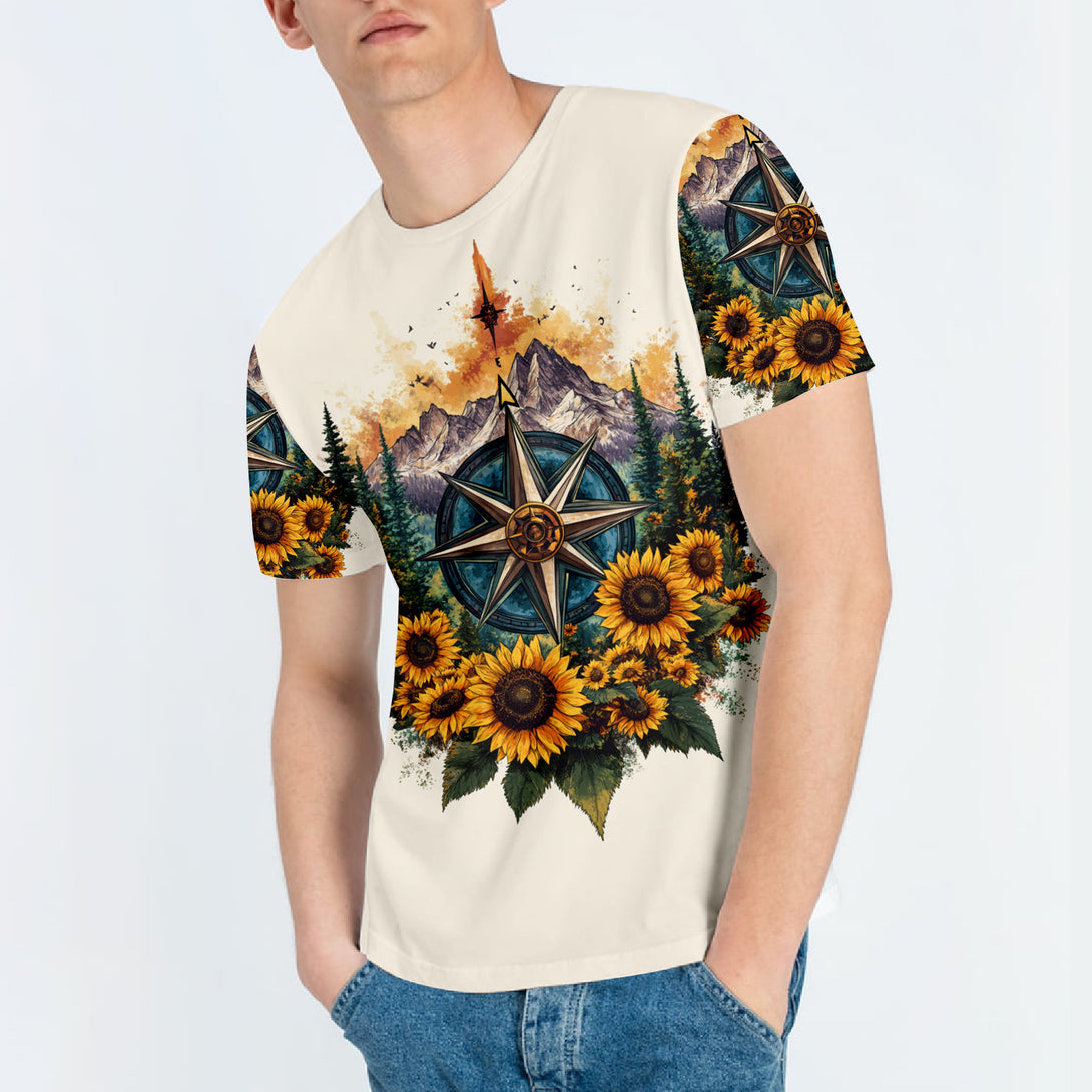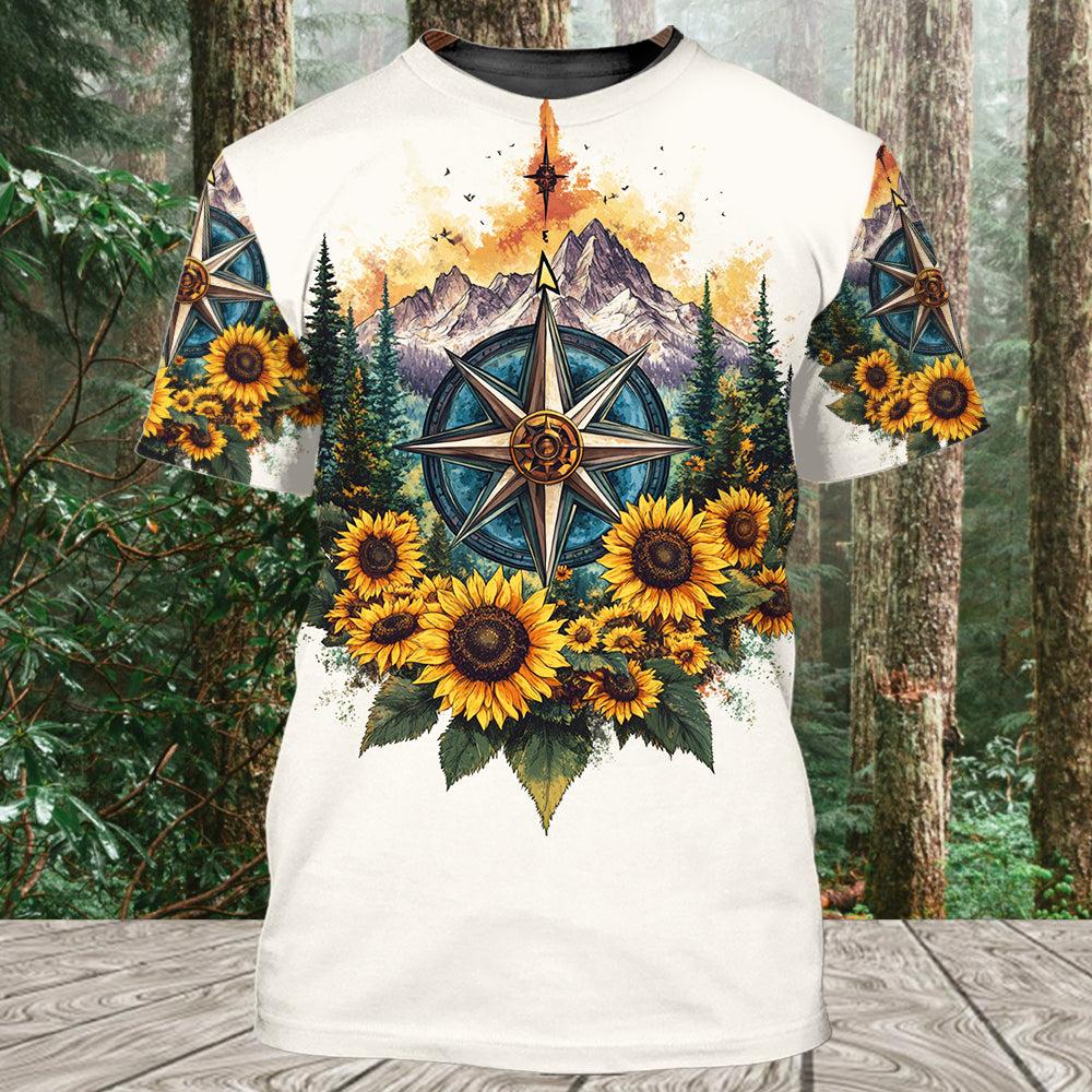Live For The Moments Compass Sunflower All Over Print Shirt