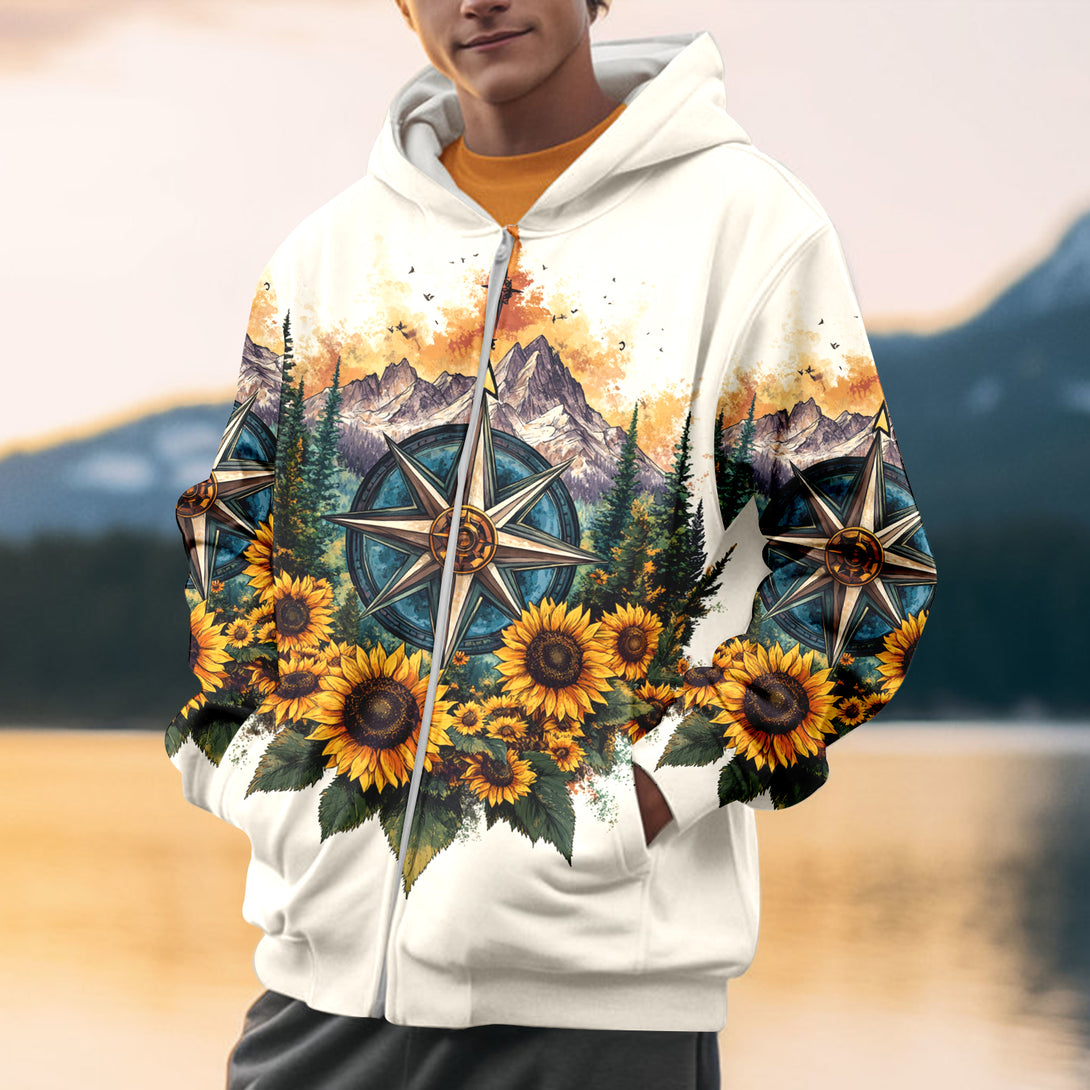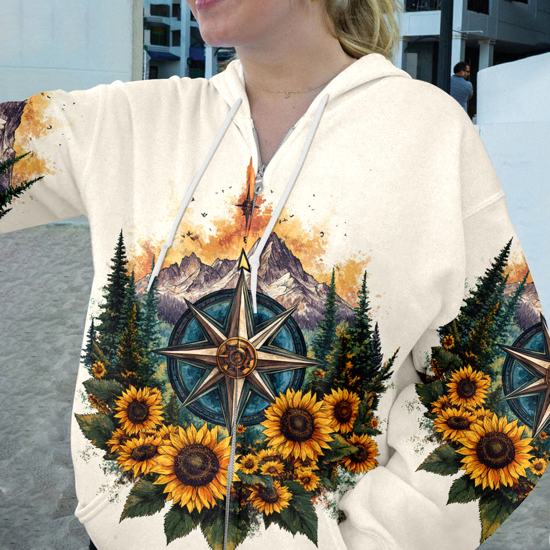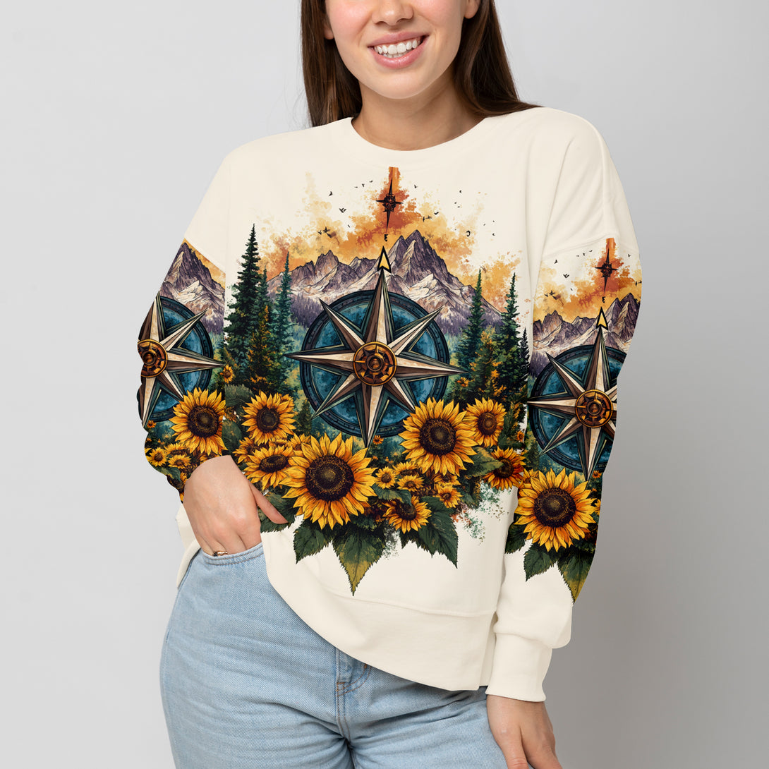 Live For The Moments Compass Sunflower All Over Print Shirt