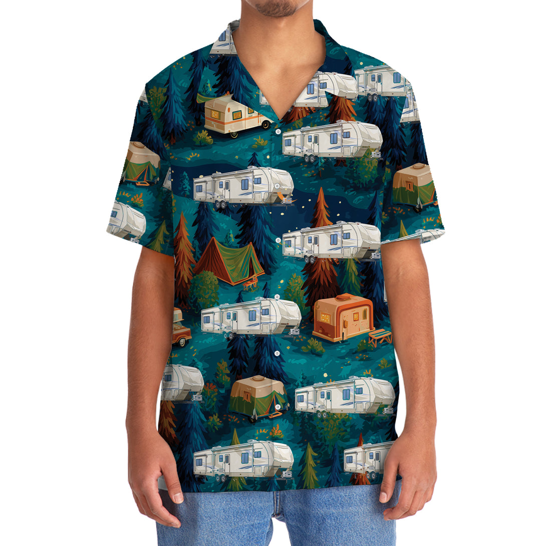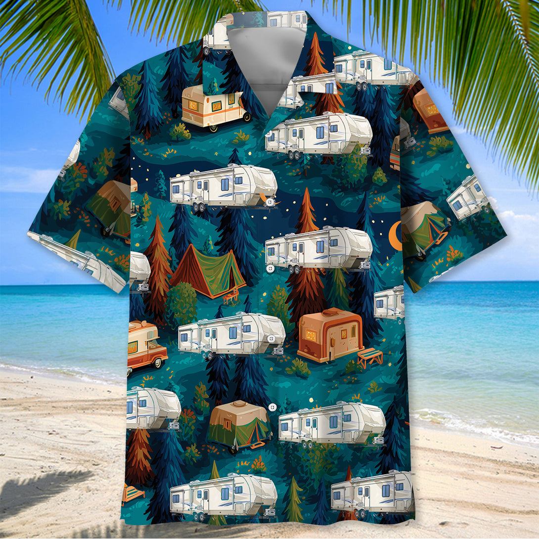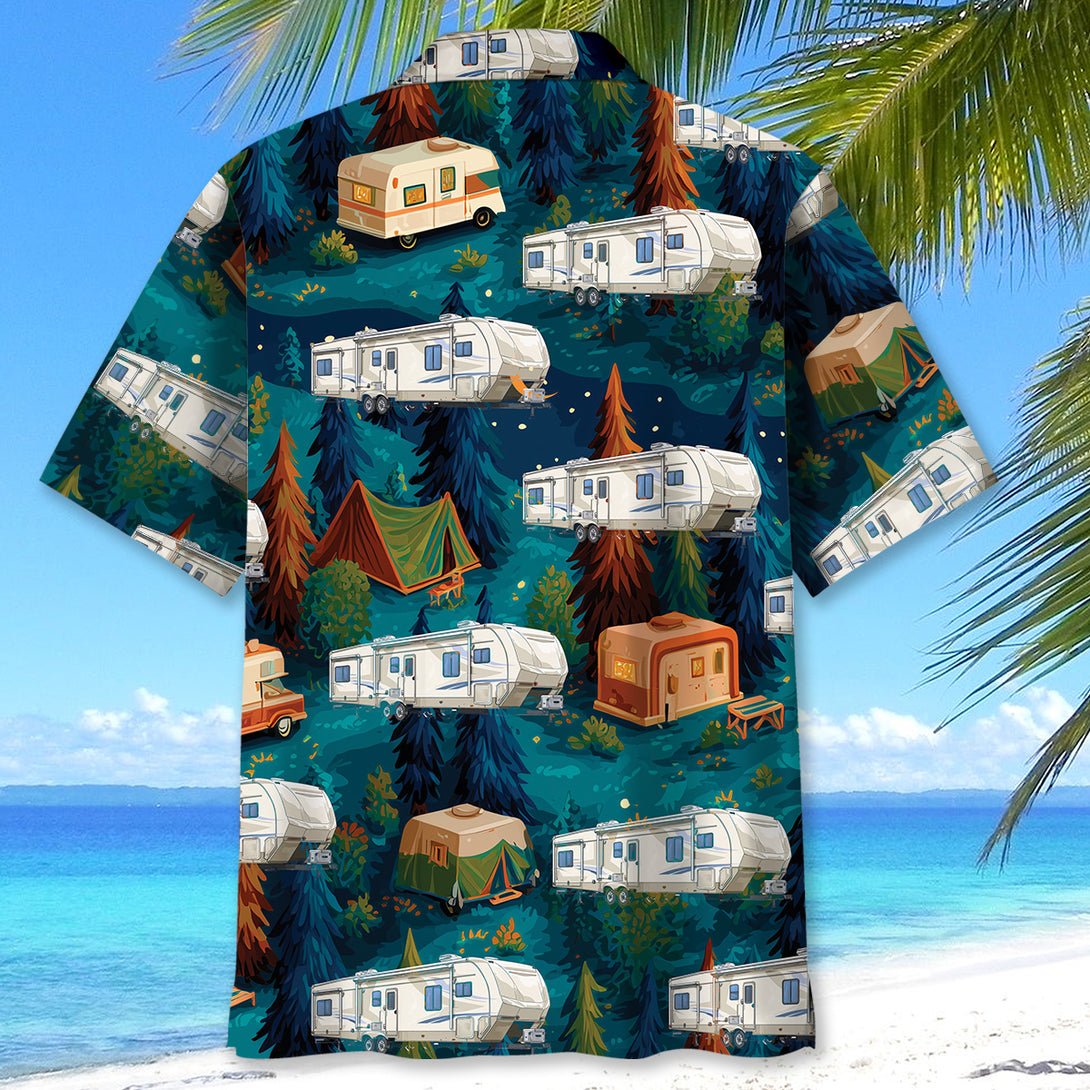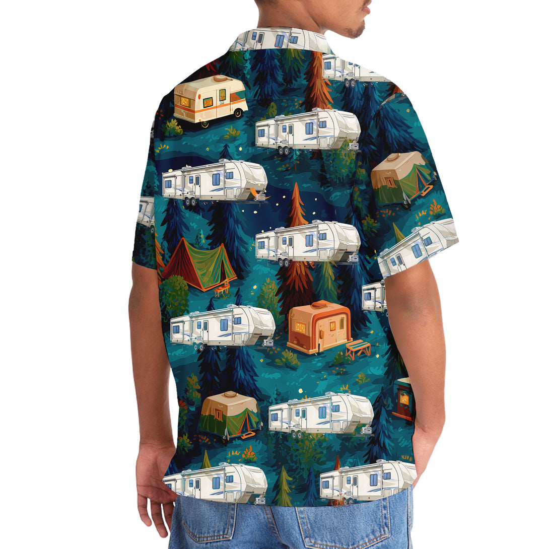 Night Forest Fiffth-Wheel Trailer Hawaiian Shirt