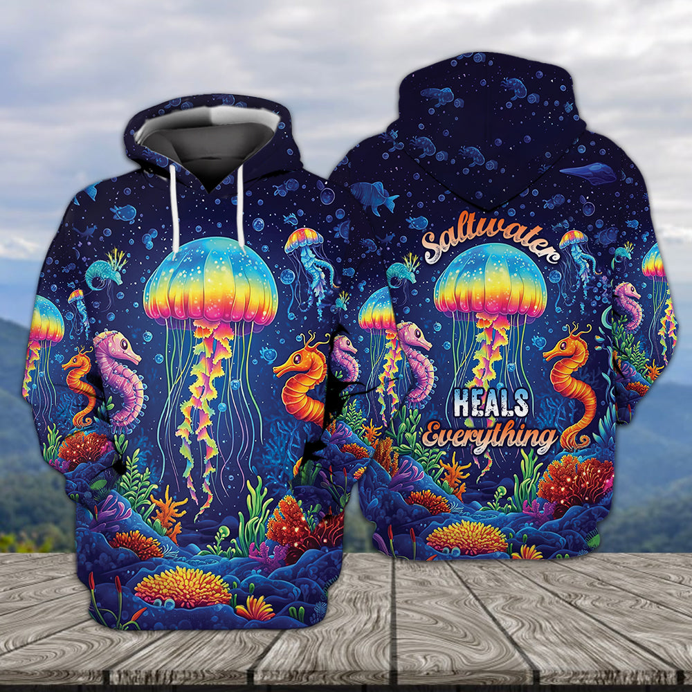 Saltwater Heals Everything Jellyfish All Over Print Shirt