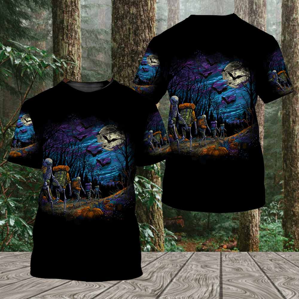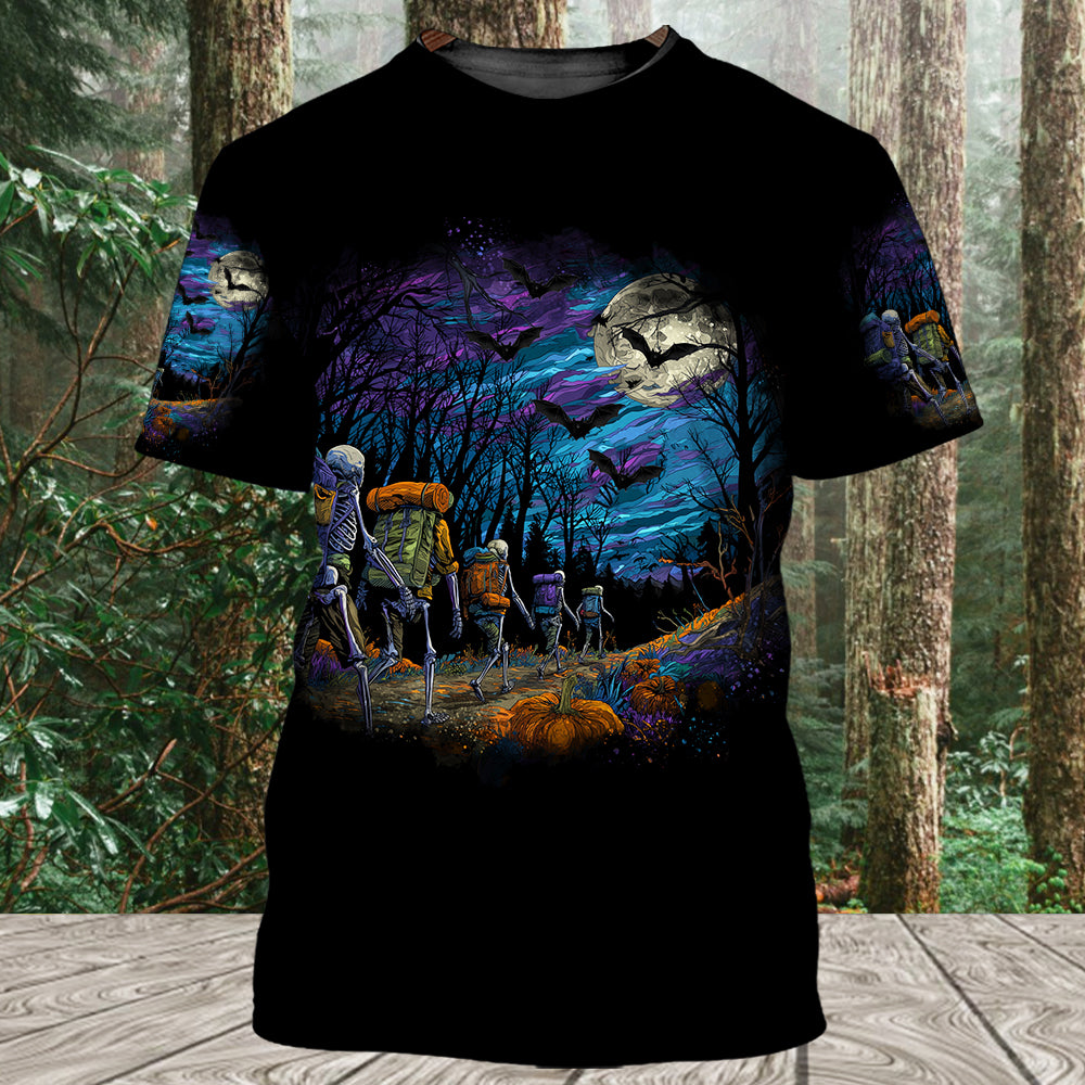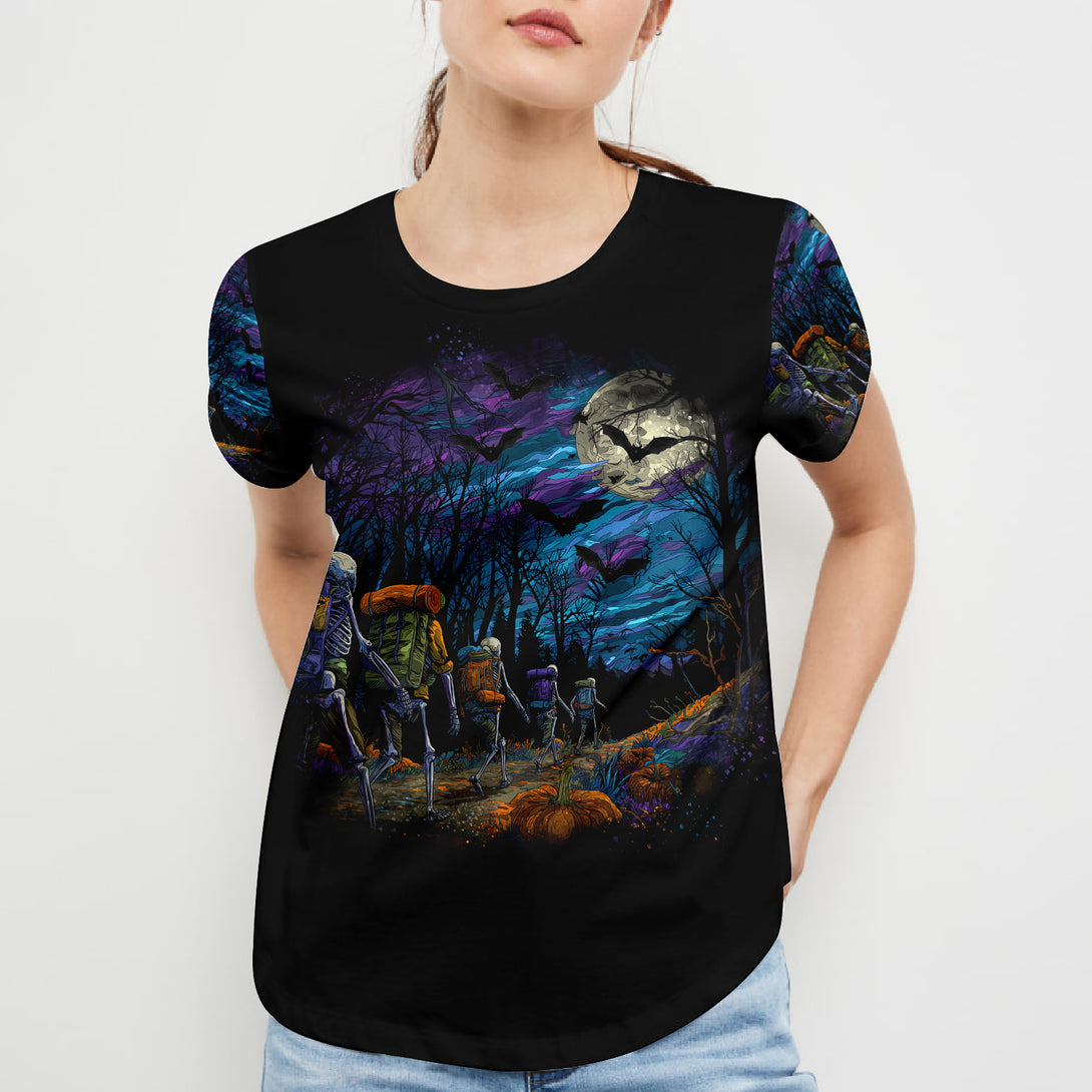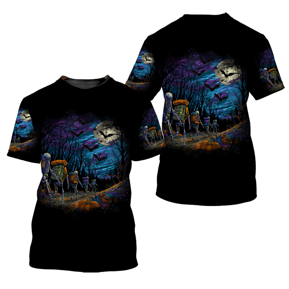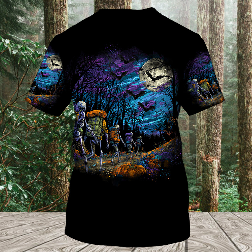 Skeleton Trekking Adventure Night Halloween All Over Print Shirt