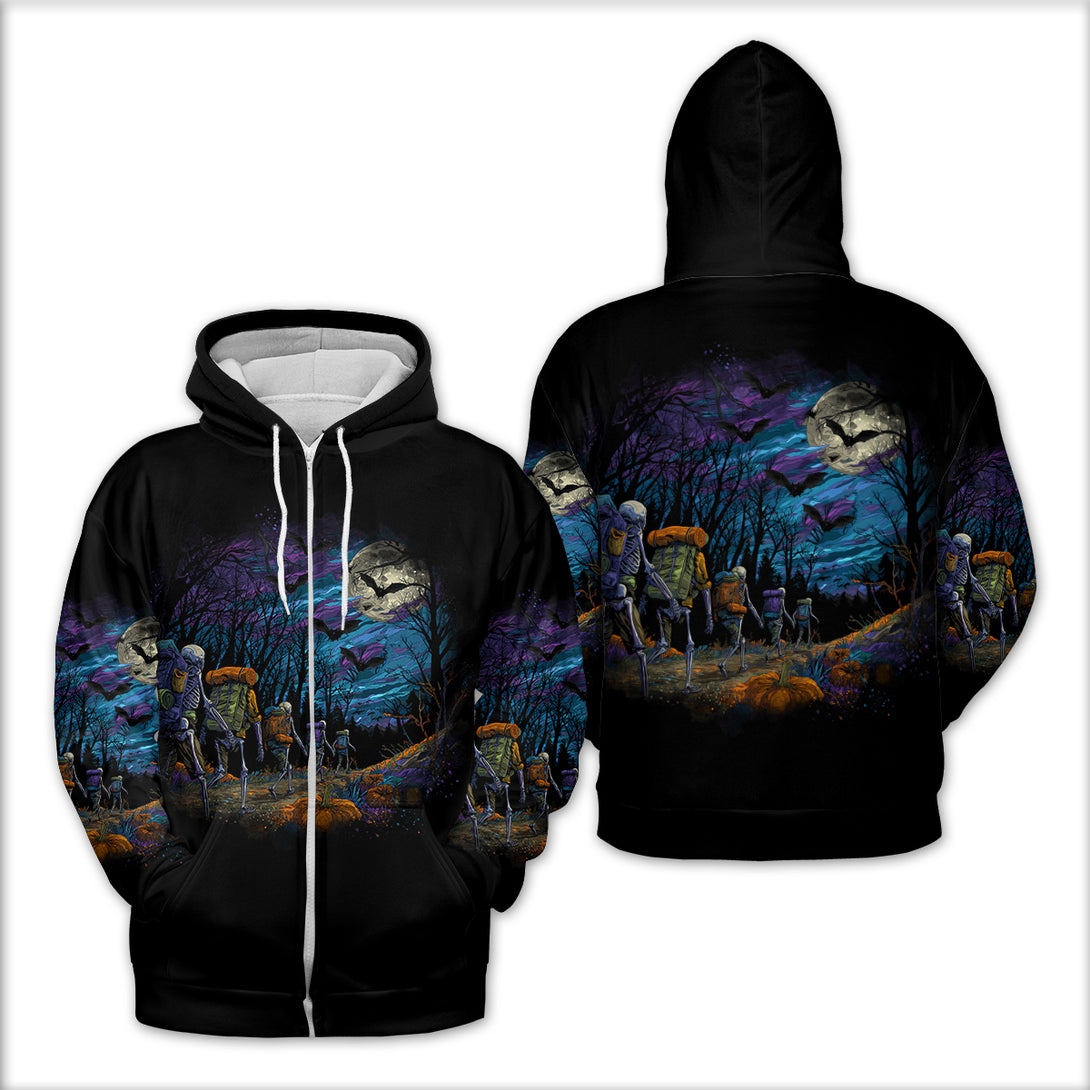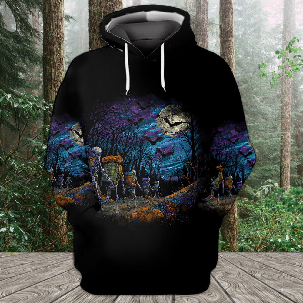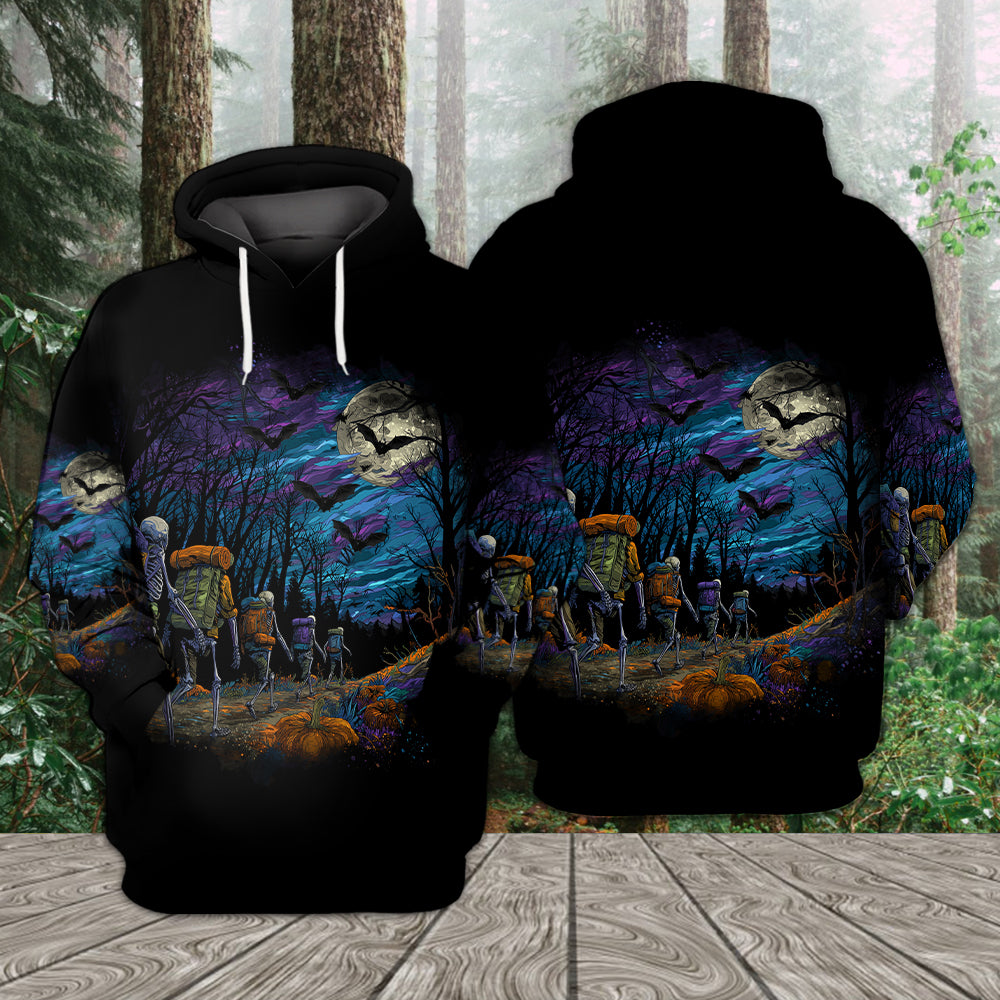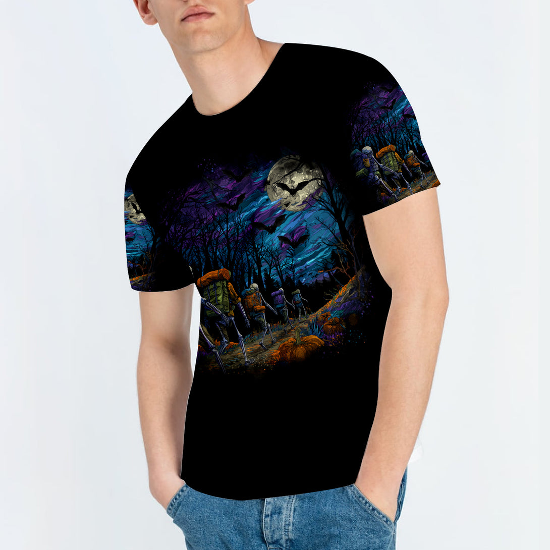 Skeleton Trekking Adventure Night Halloween All Over Print Shirt