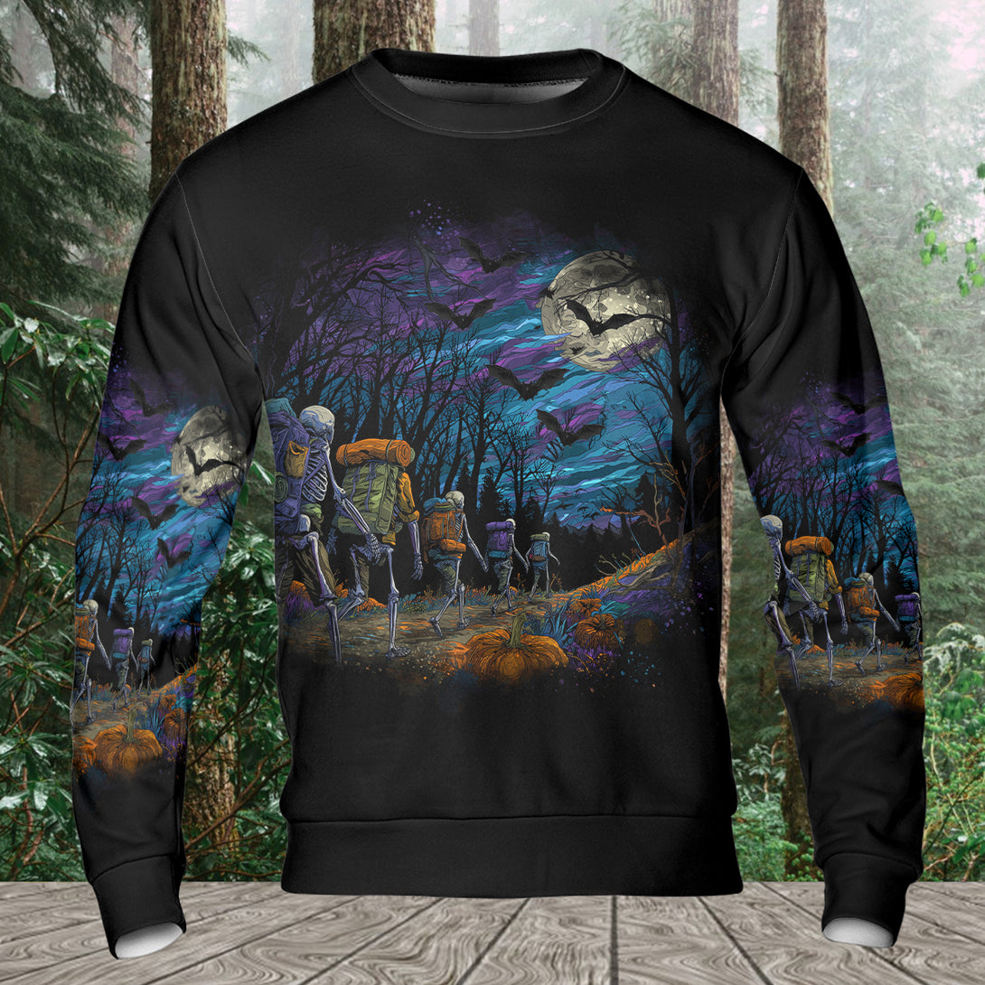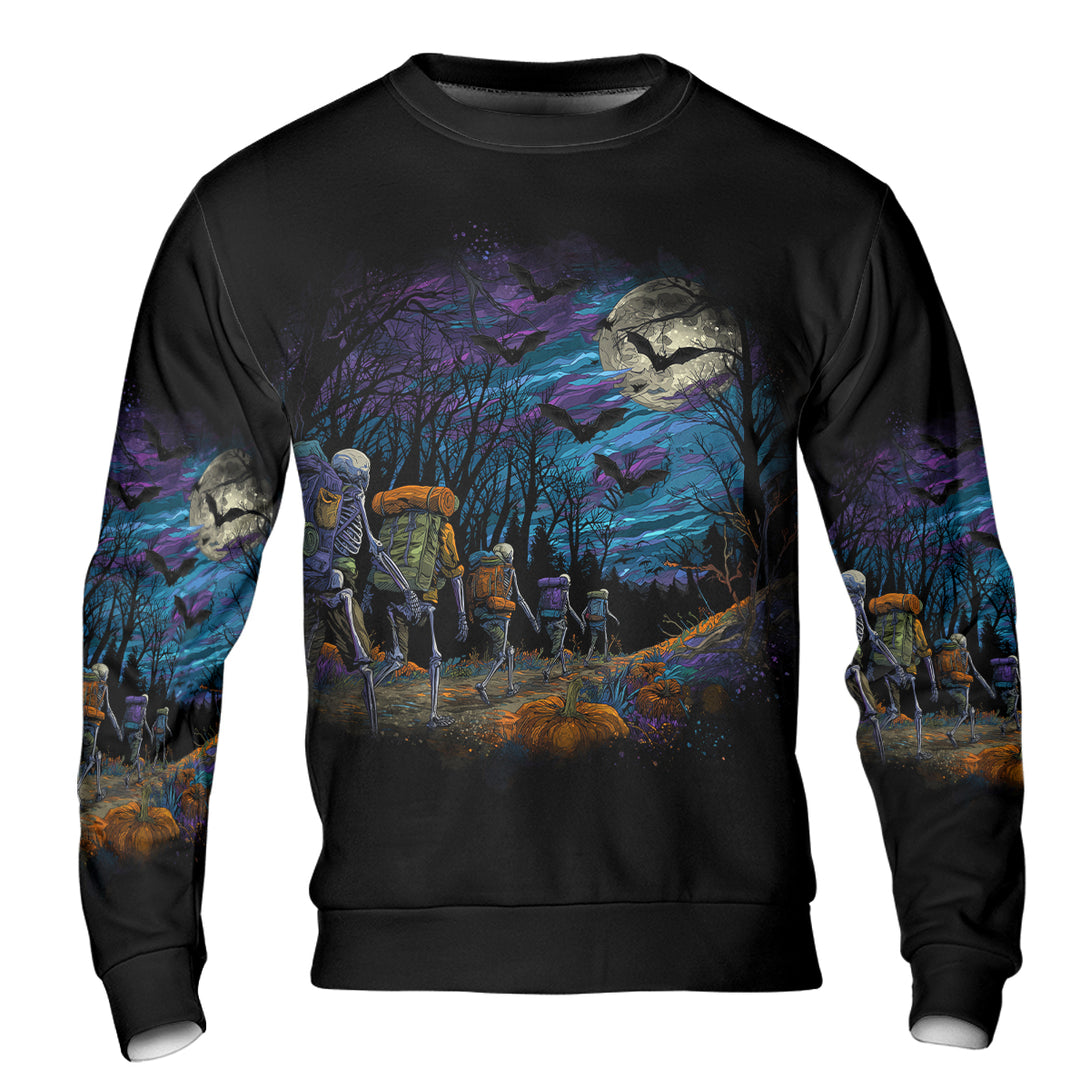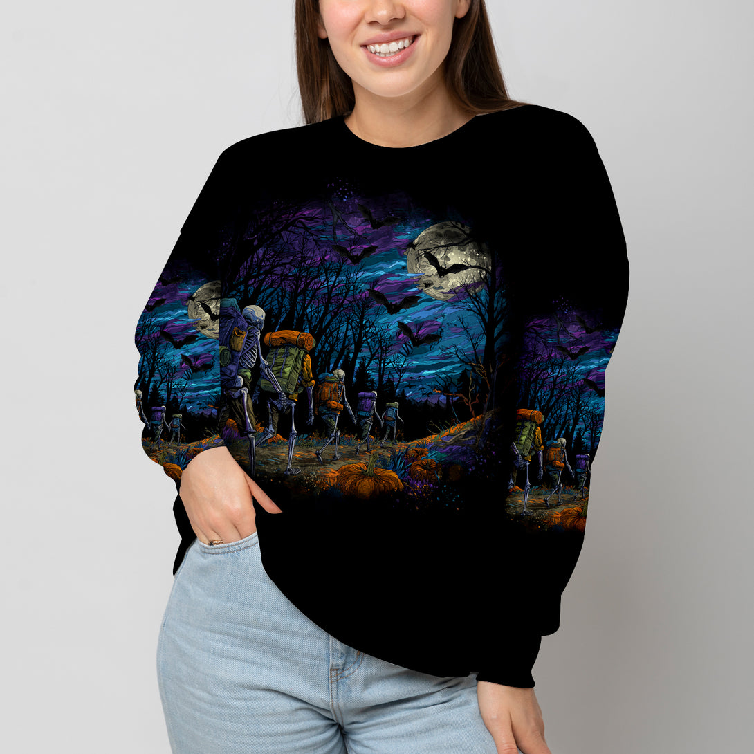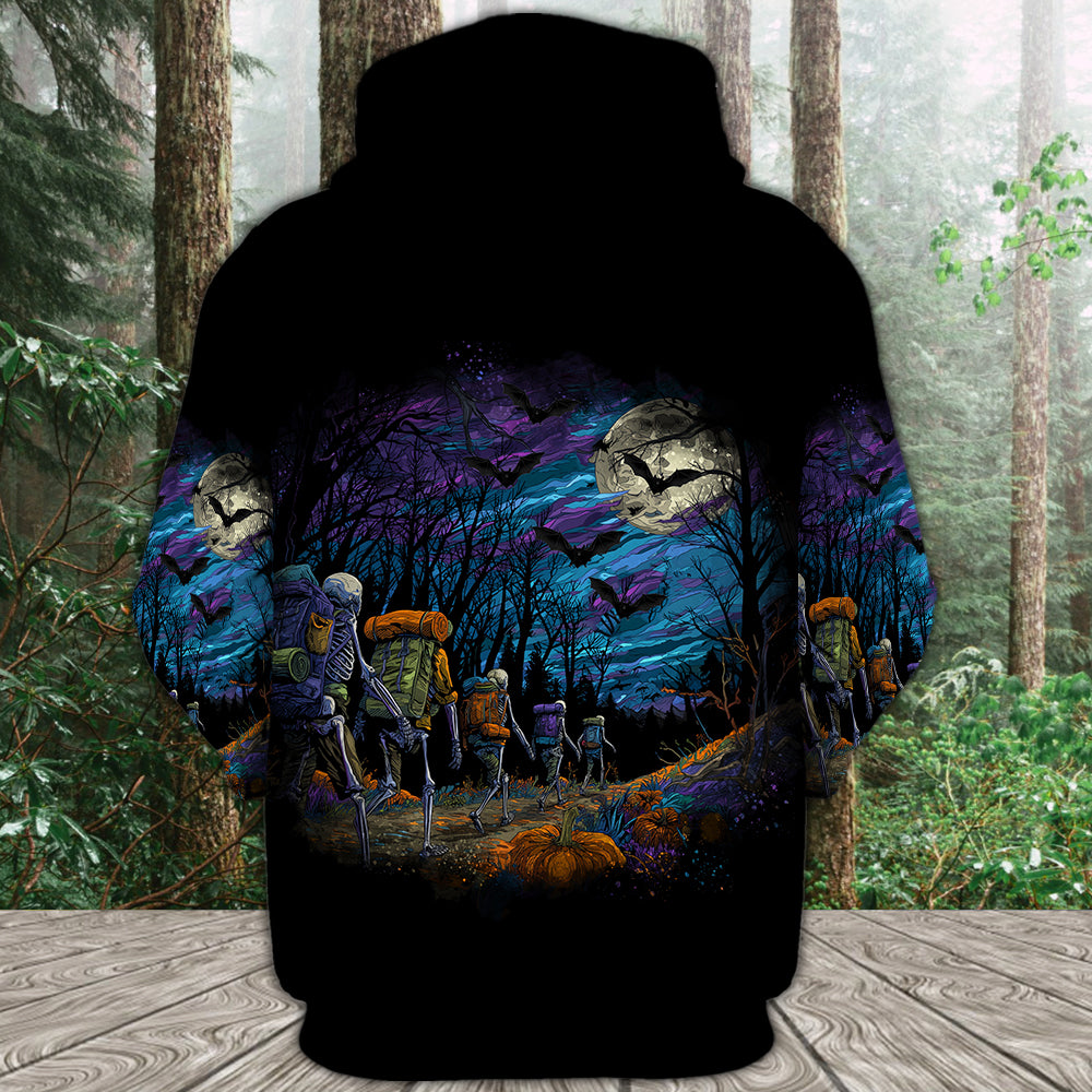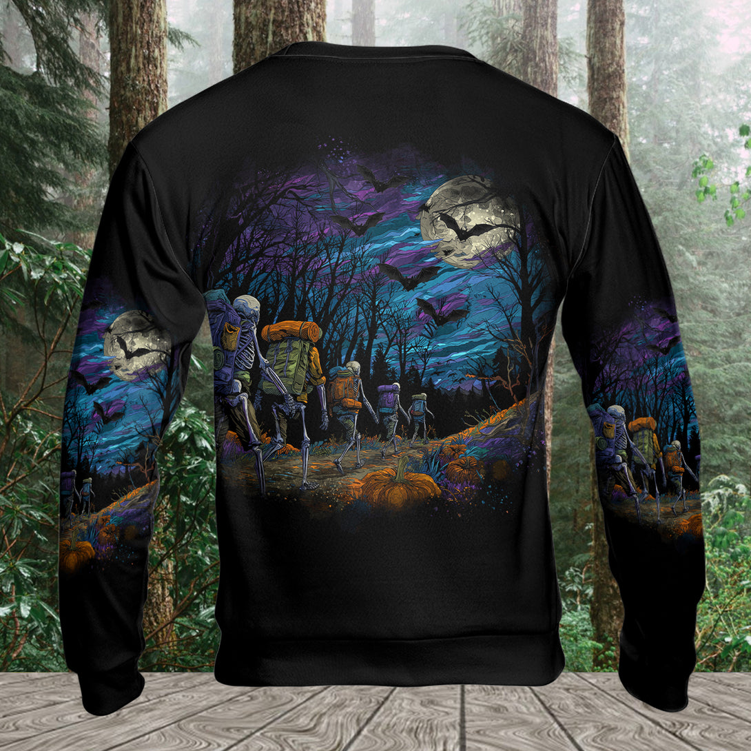 Skeleton Trekking Adventure Night Halloween All Over Print Shirt