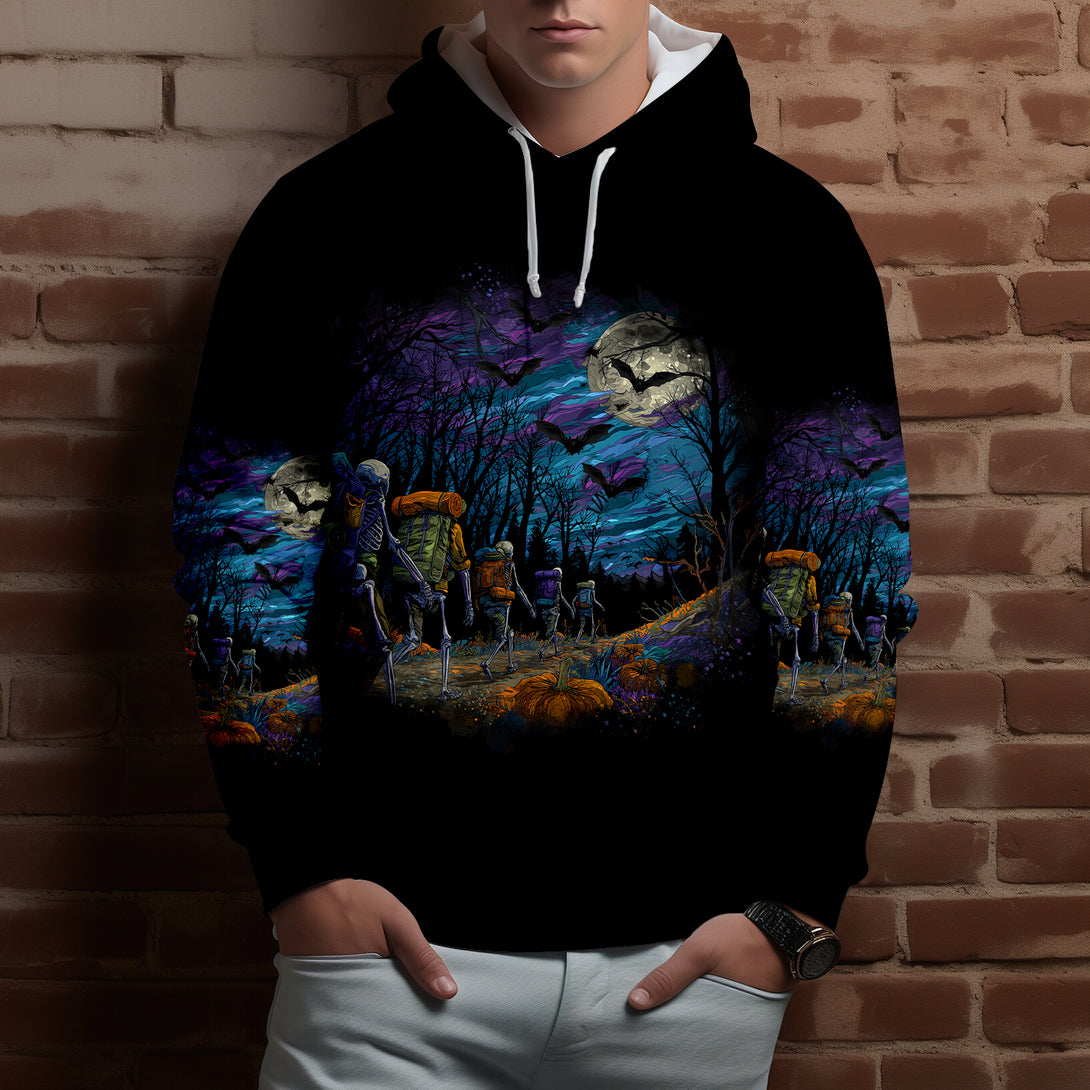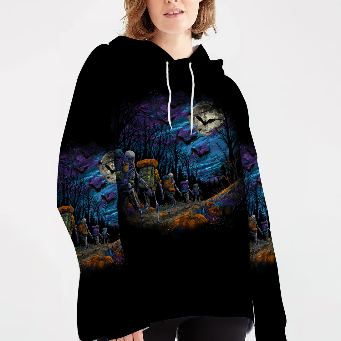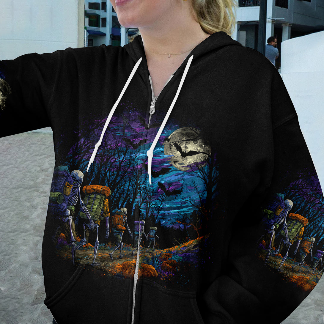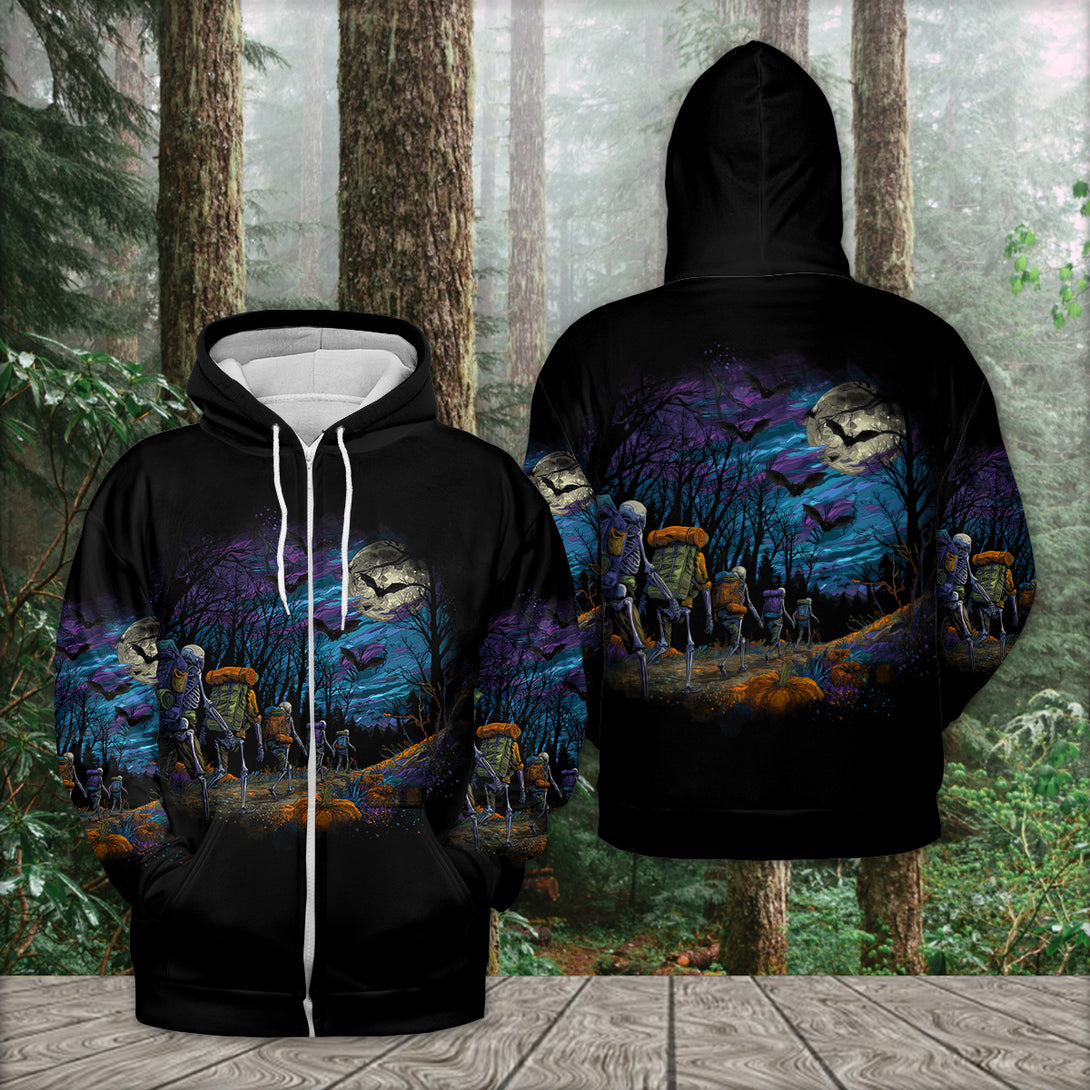 Skeleton Trekking Adventure Night Halloween All Over Print Shirt