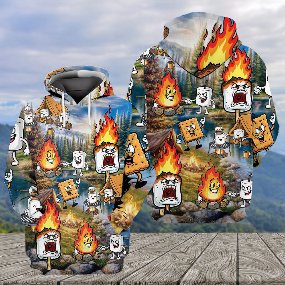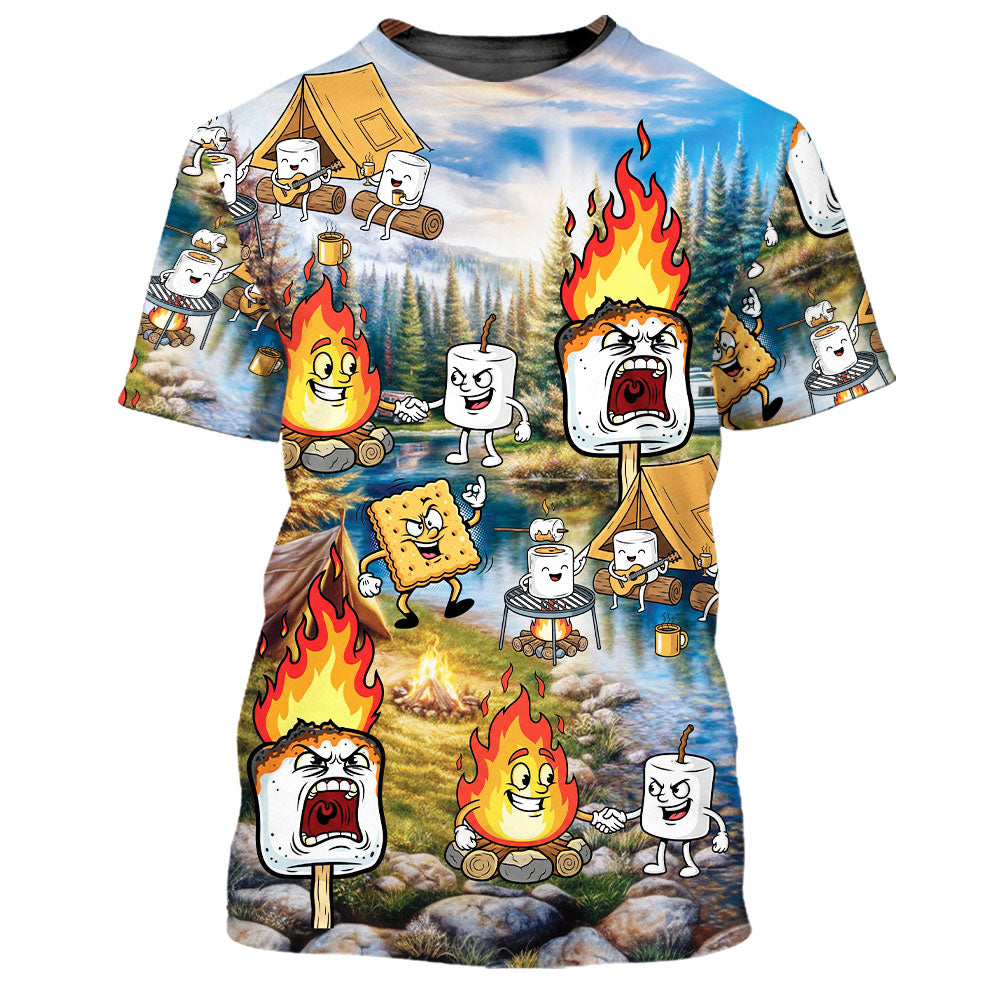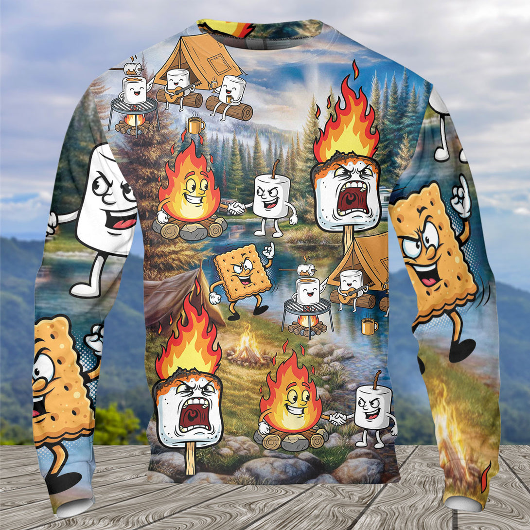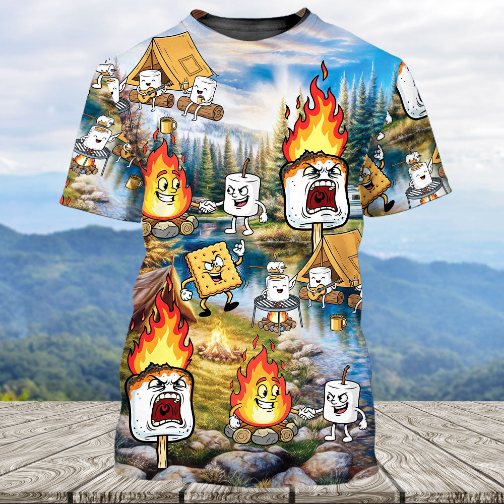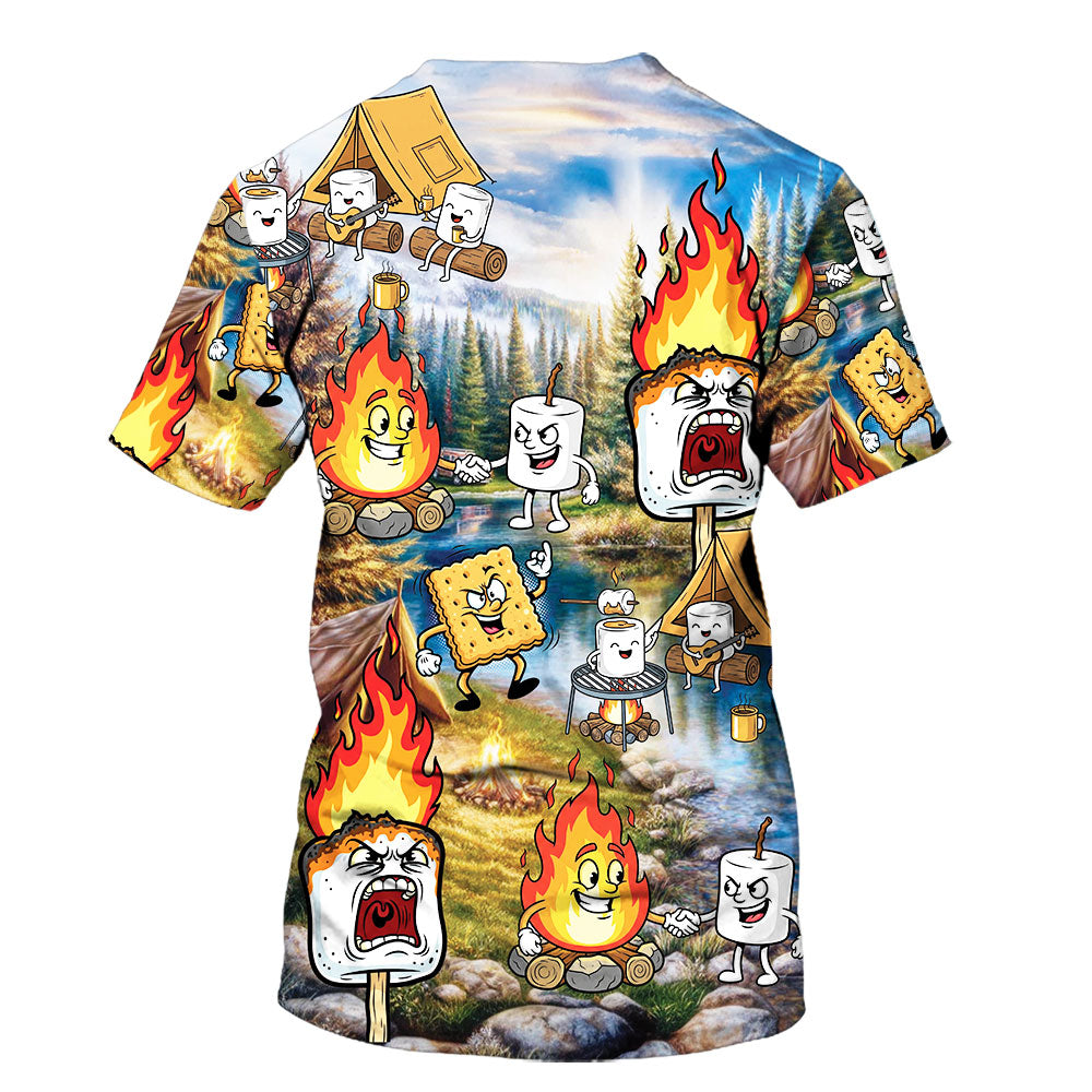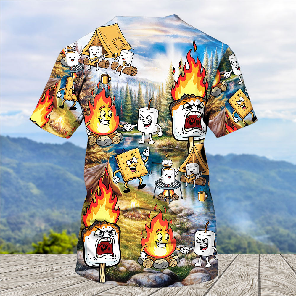 Vintage Camping Burnt Mashmallow All Over Print Shirt
