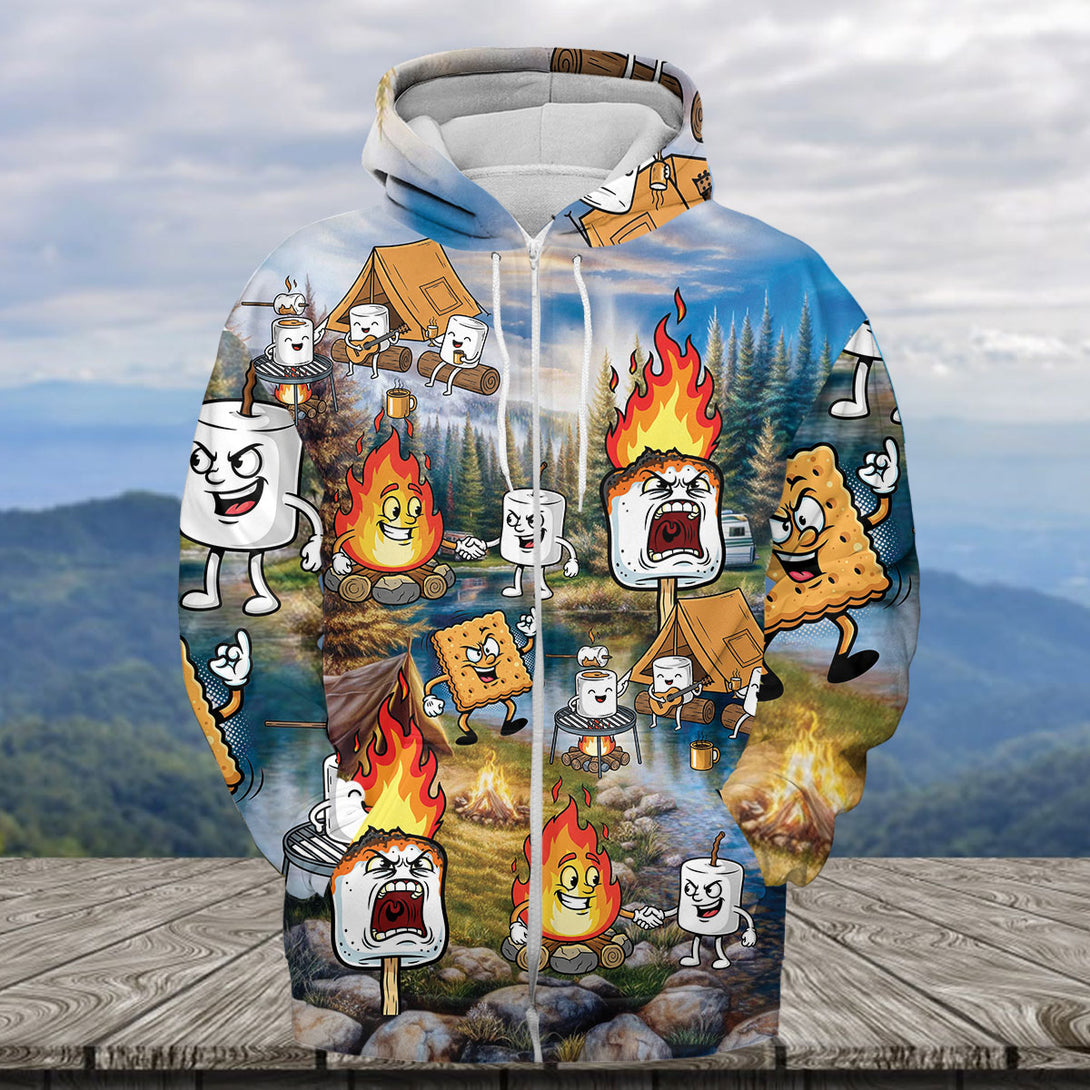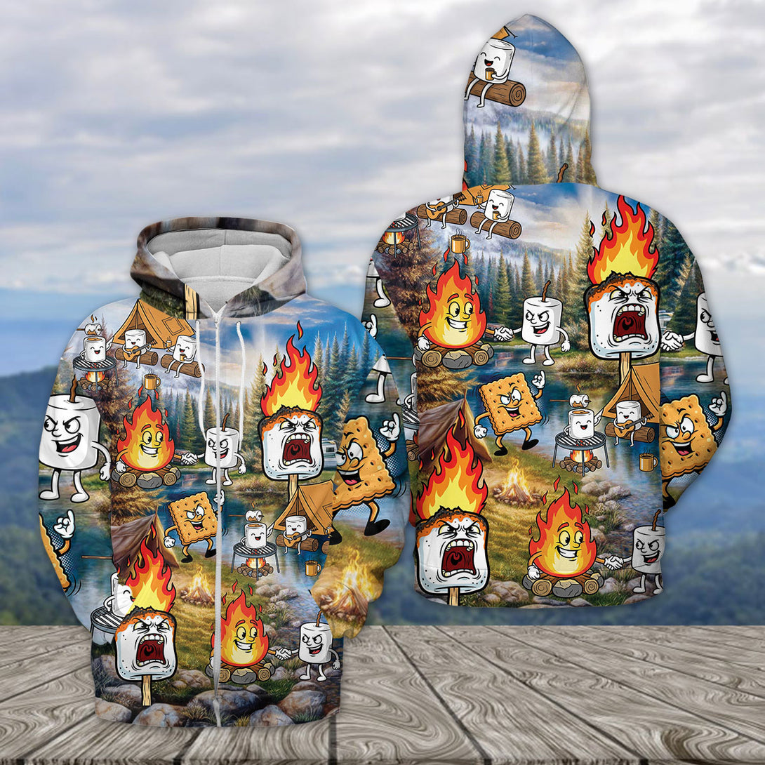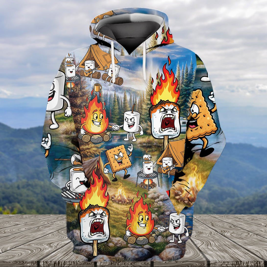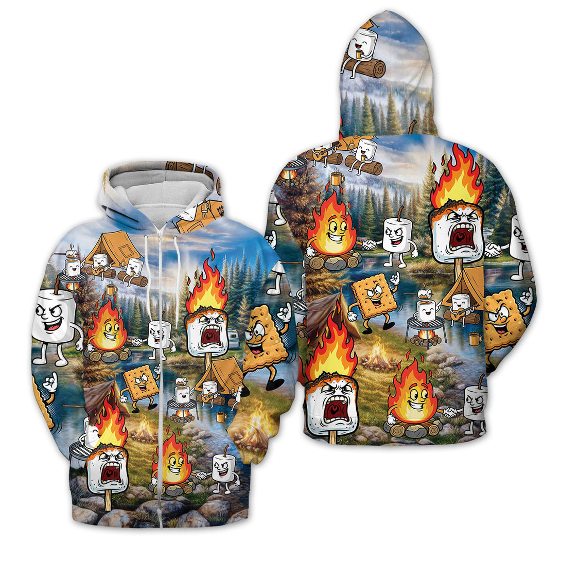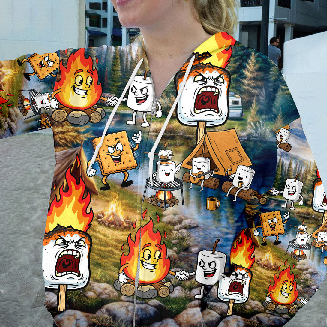 Vintage Camping Burnt Mashmallow All Over Print Shirt